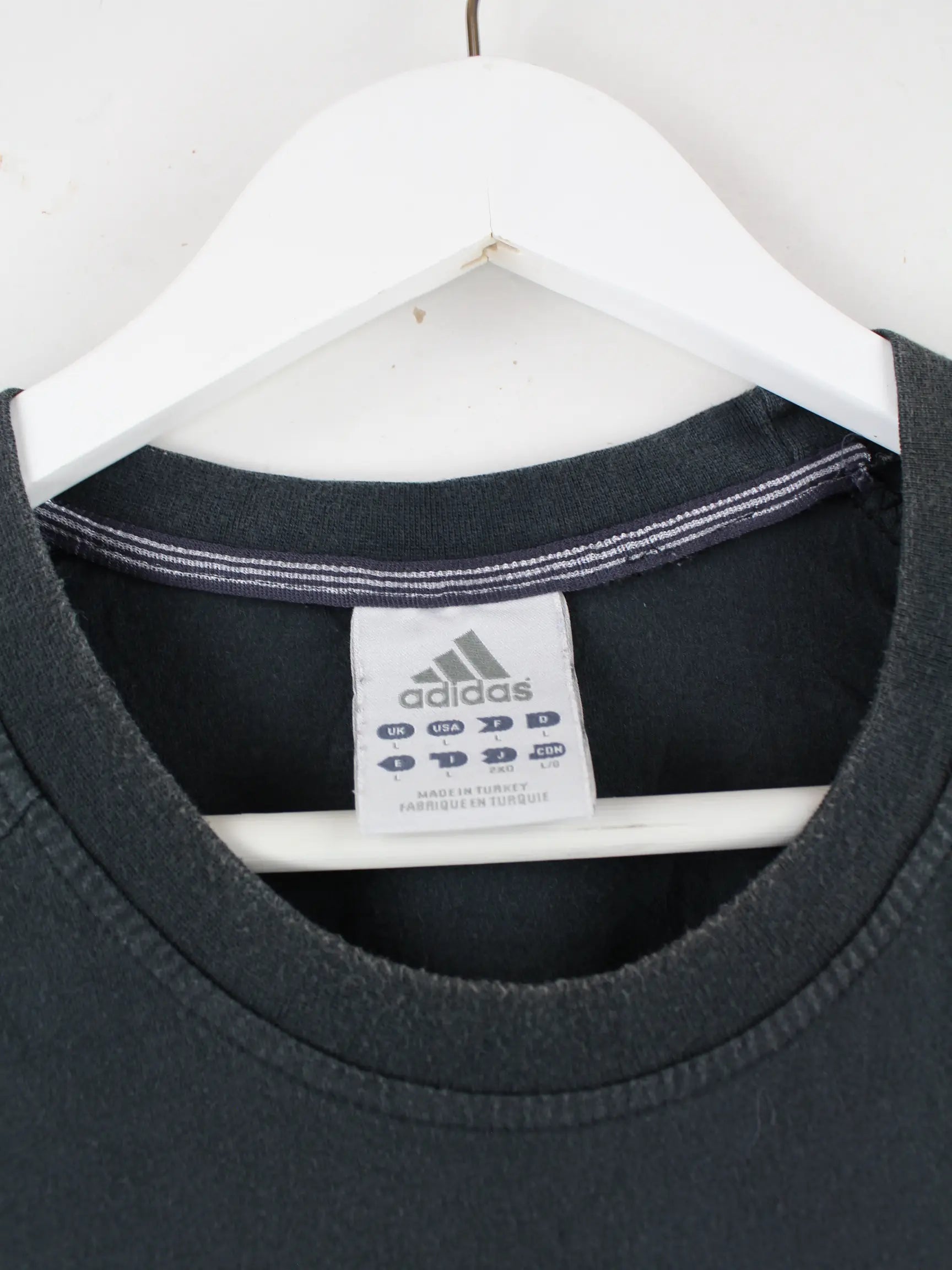 Schwarzes T-Shirt vom Brand Adidas in Größe L. Es ist aus einer Baumwollmischung angefertigt und in gutem Zustand vorrätig. Mit seltenem Performance Print.