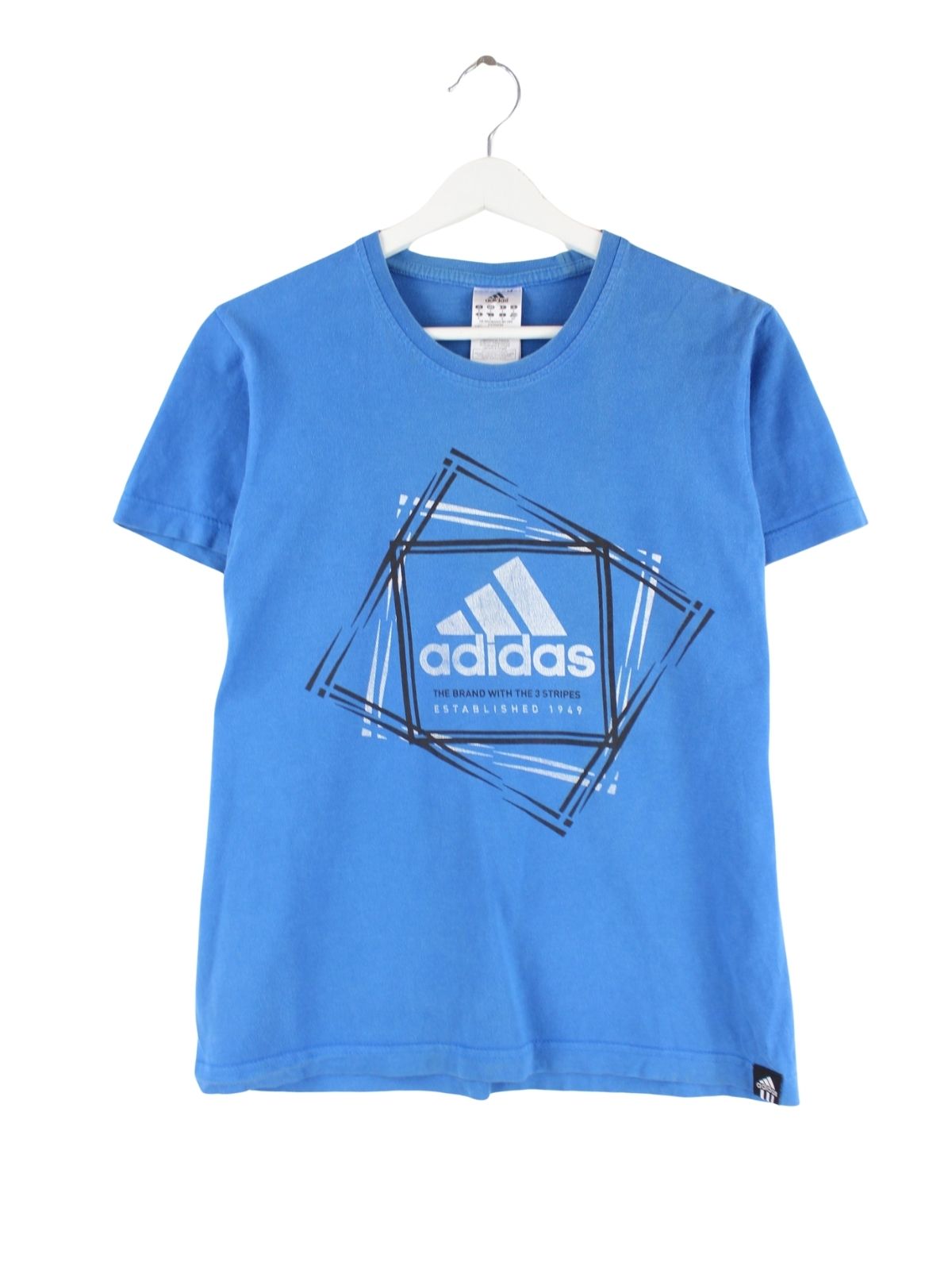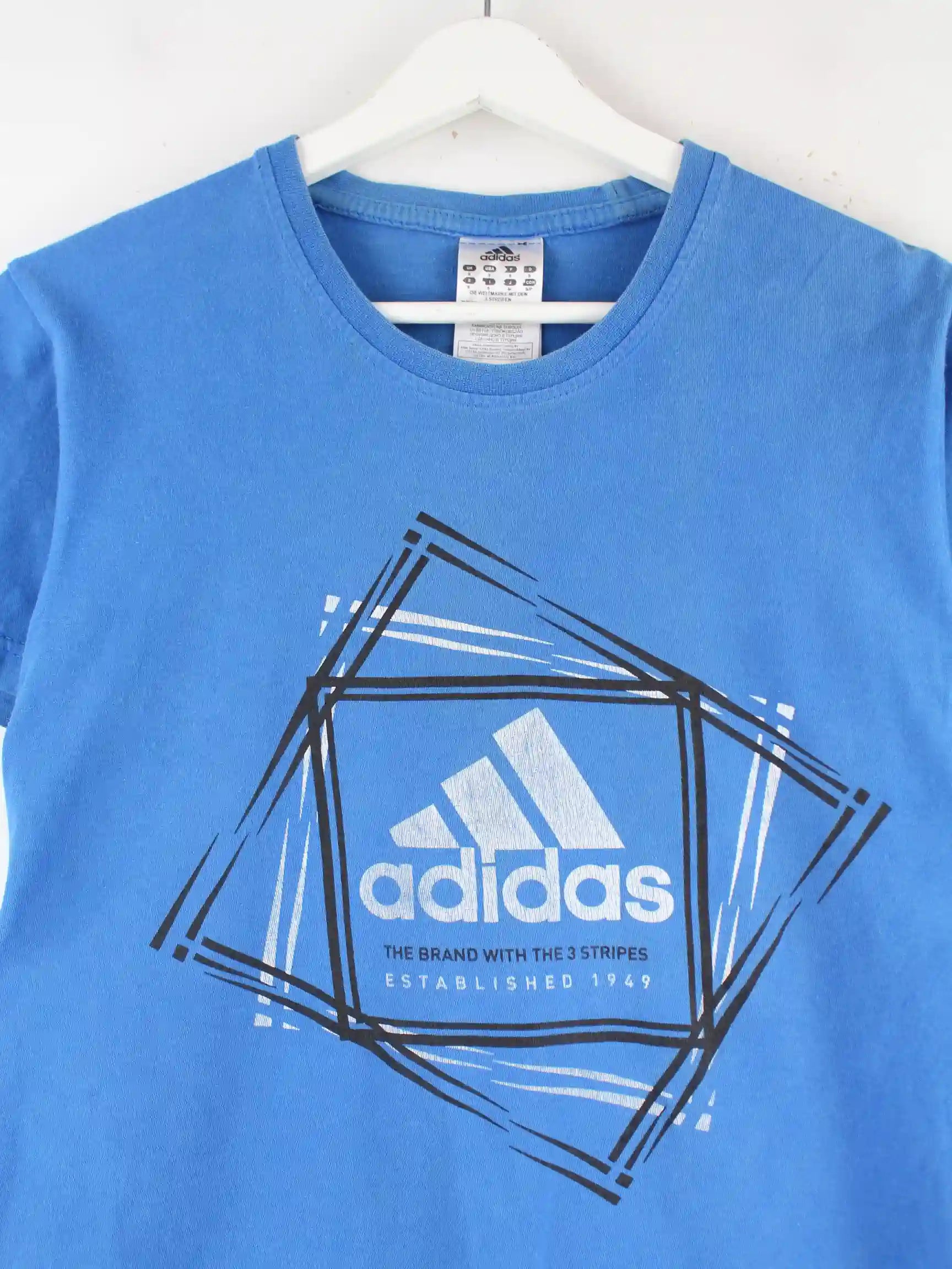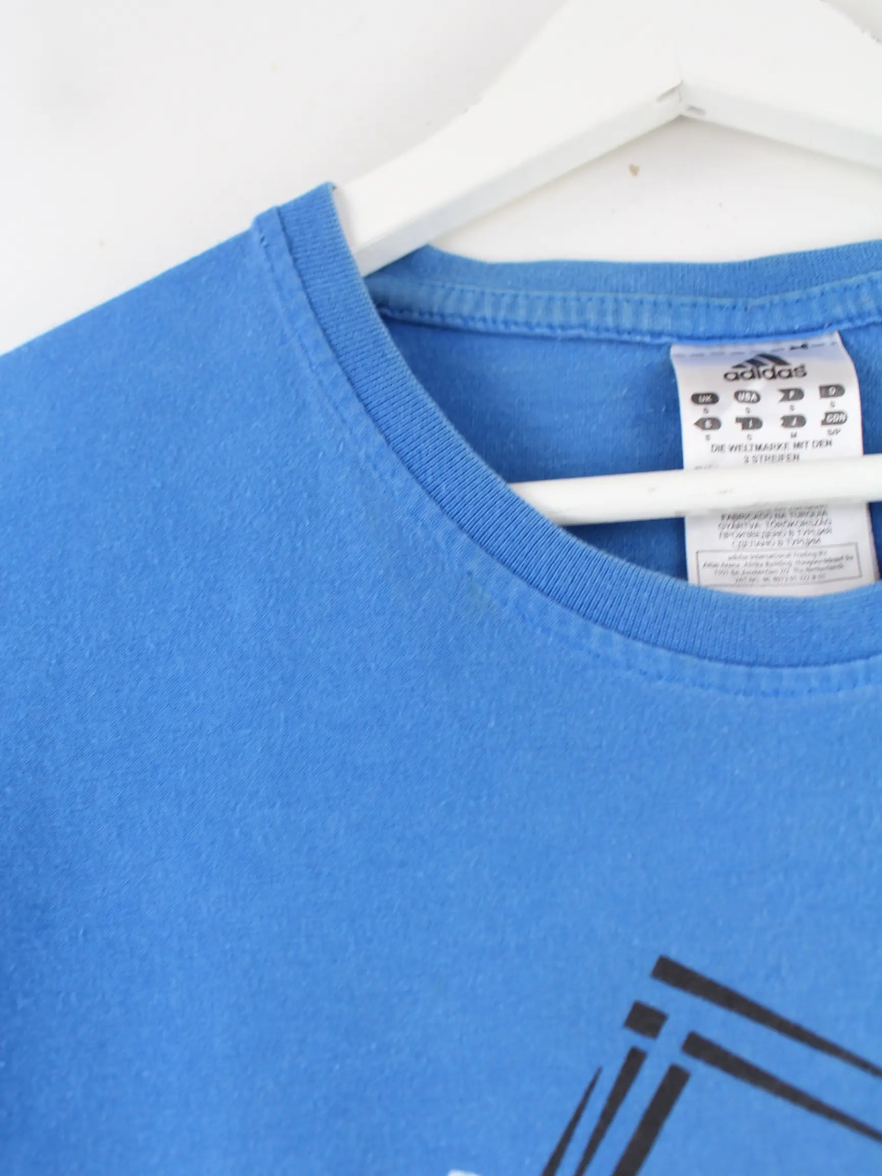 T-Shirt der Brand Adidas in Größe S. Es ist aus Baumwolle hergestellt und in Blau im Angebot. Mit seltenem Print.