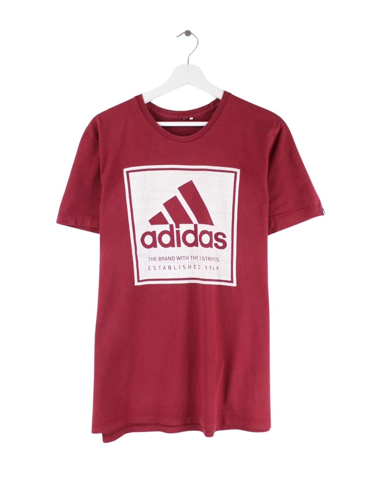 Rotes T-Shirt der Marke Adidas in Größe L. Es ist aus Baumwolle gefertigt und in gutem Zustand in Stock. Mit chiquem Print.