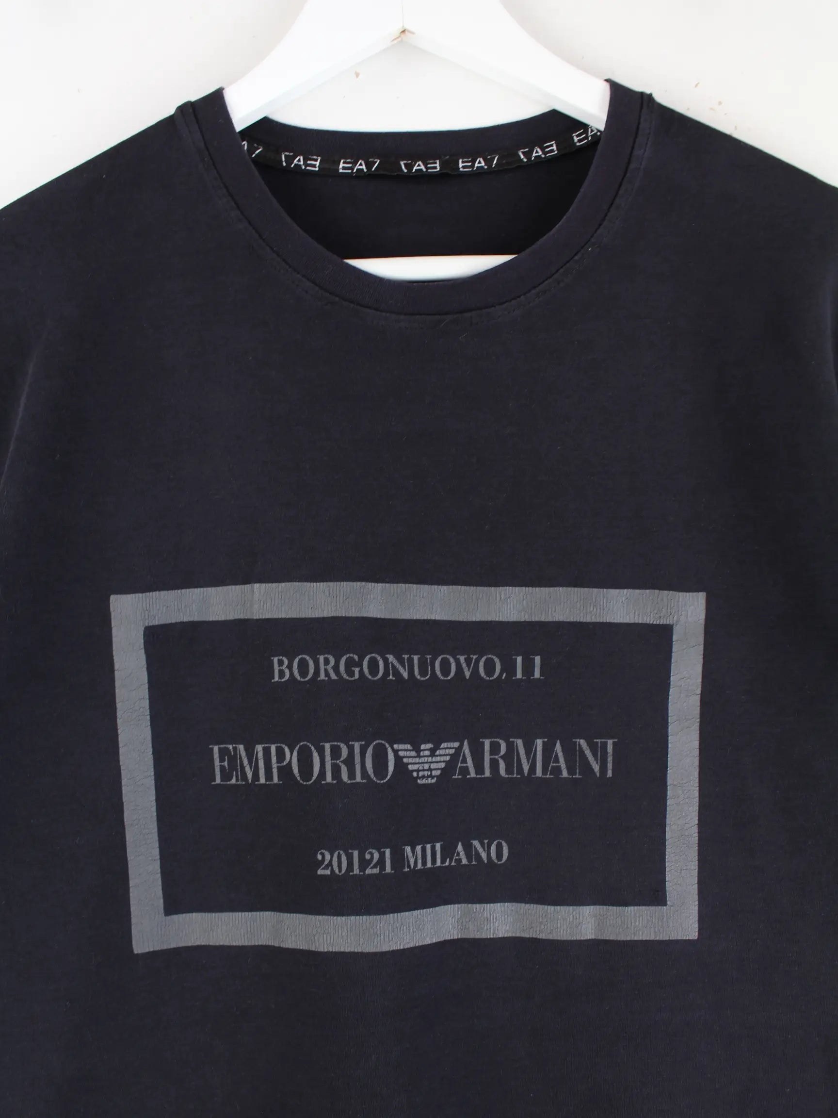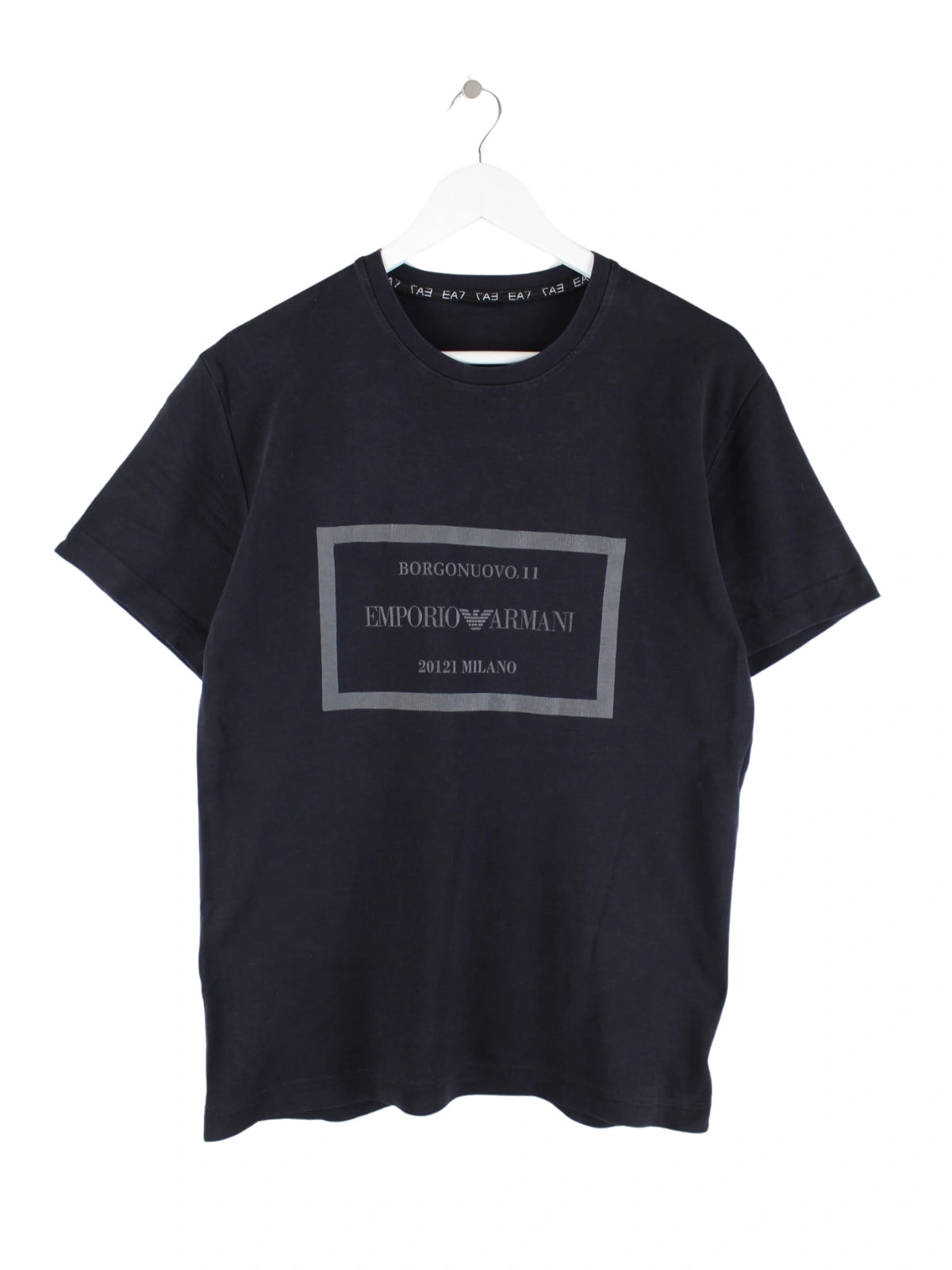 Schwarzes T-Shirt von Armani in Größe L. Es ist aus Baumwolle hergestellt und in sehr gutem Zustand lieferbar. Mit schickem Print.