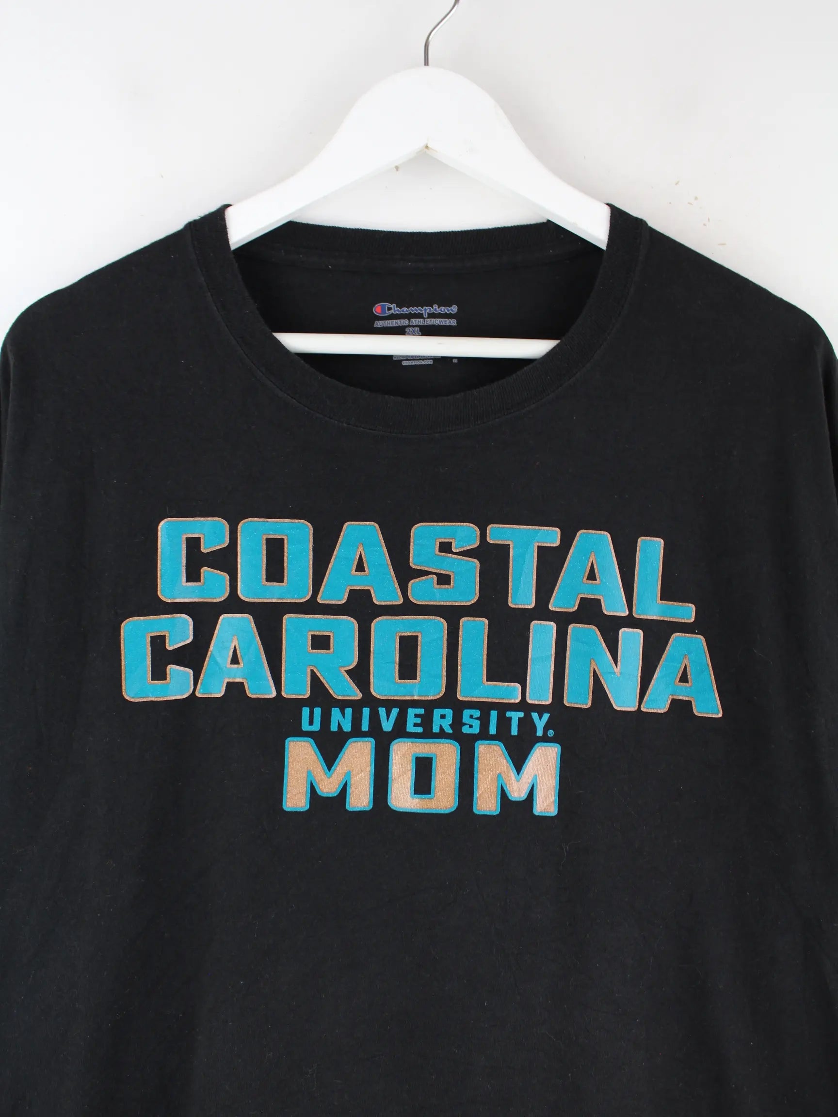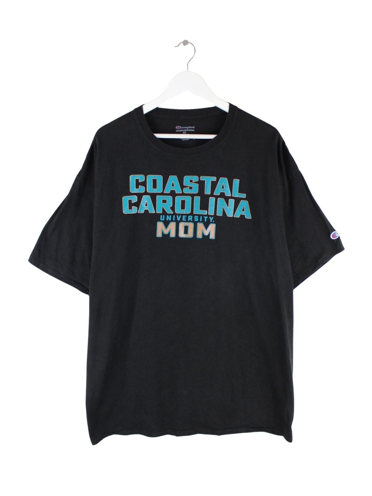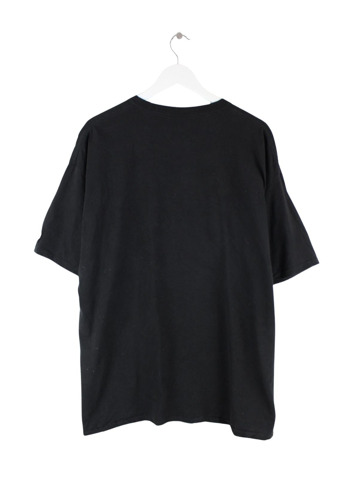 Schwarzes T-Shirt des Labels Champion in Größe XXL. Es ist aus Baumwolle gemacht und in sehr gutem Zustand vorrätig. Mit tollem Caroline Print.