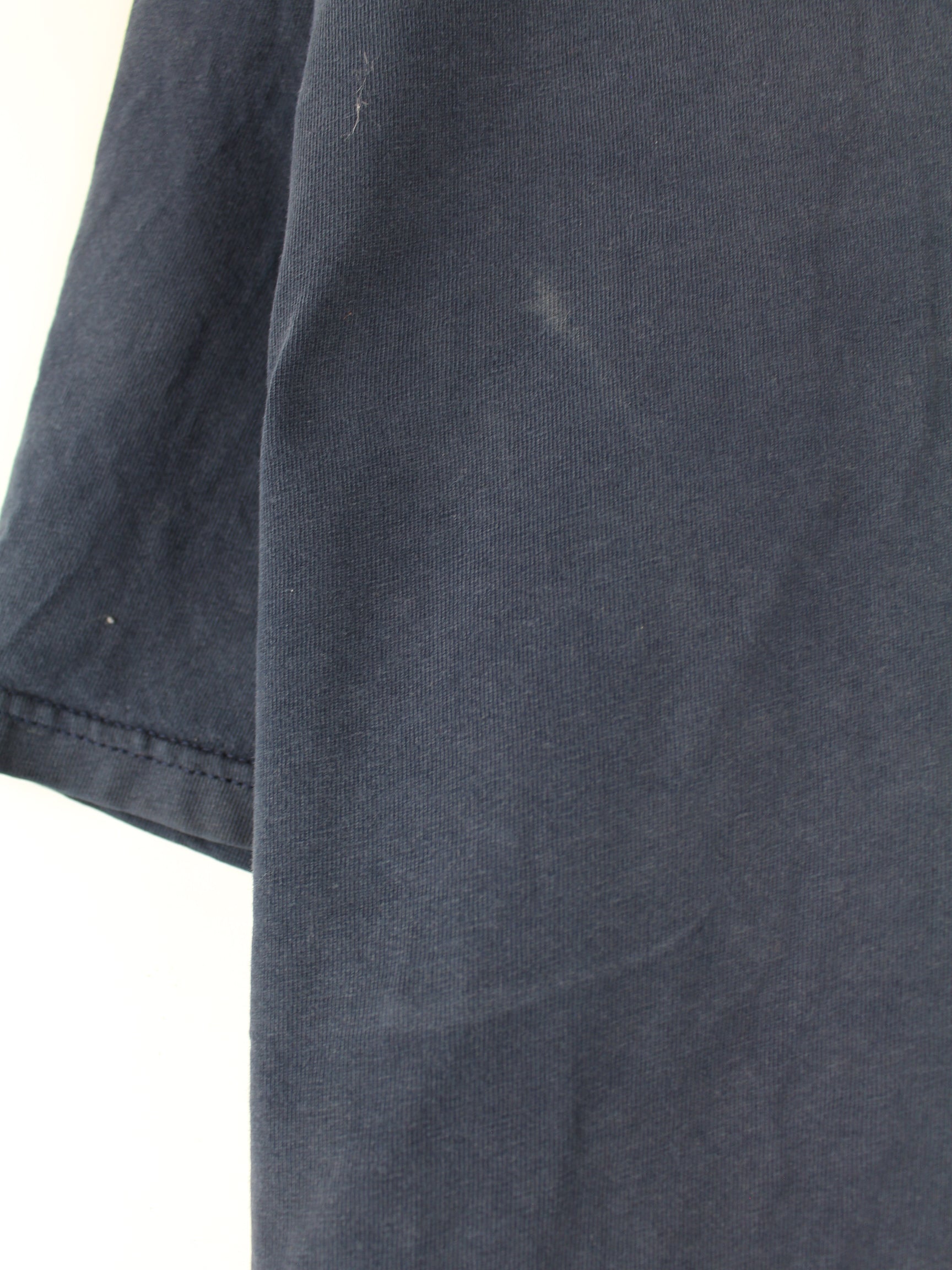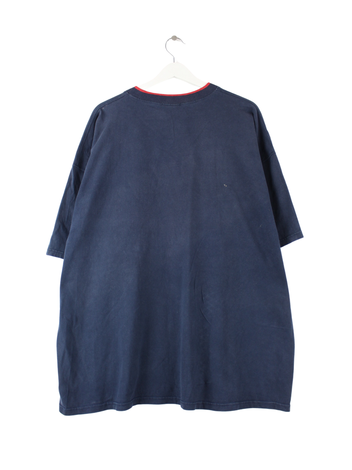 Blue T-shirt with embroidered motifs from the brand Champion in size XXL. It is made of a cotton blend. We would describe the condition as 'fine' (see pictures).