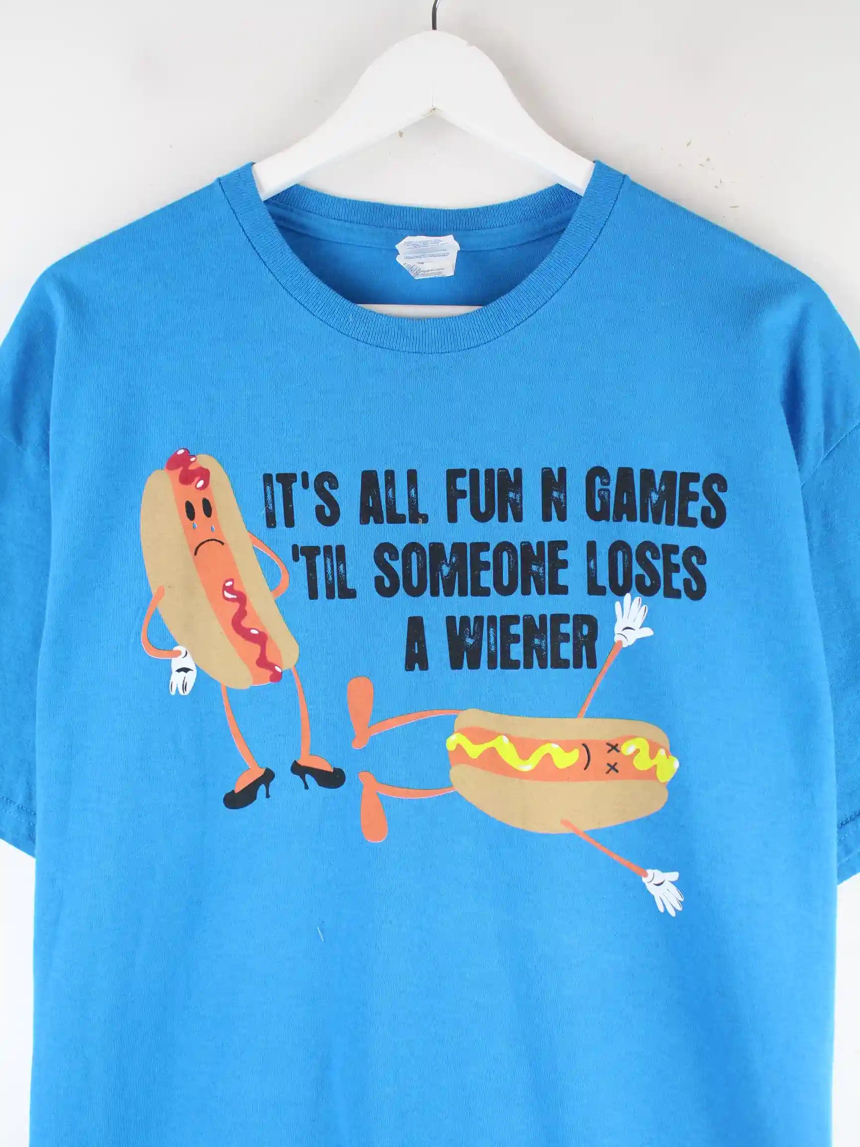 T-Shirt des Labels Delta in Größe L. Es ist aus Baumwolle gemacht und in Blau im Angebot. Mit tollem Wiener Print.
