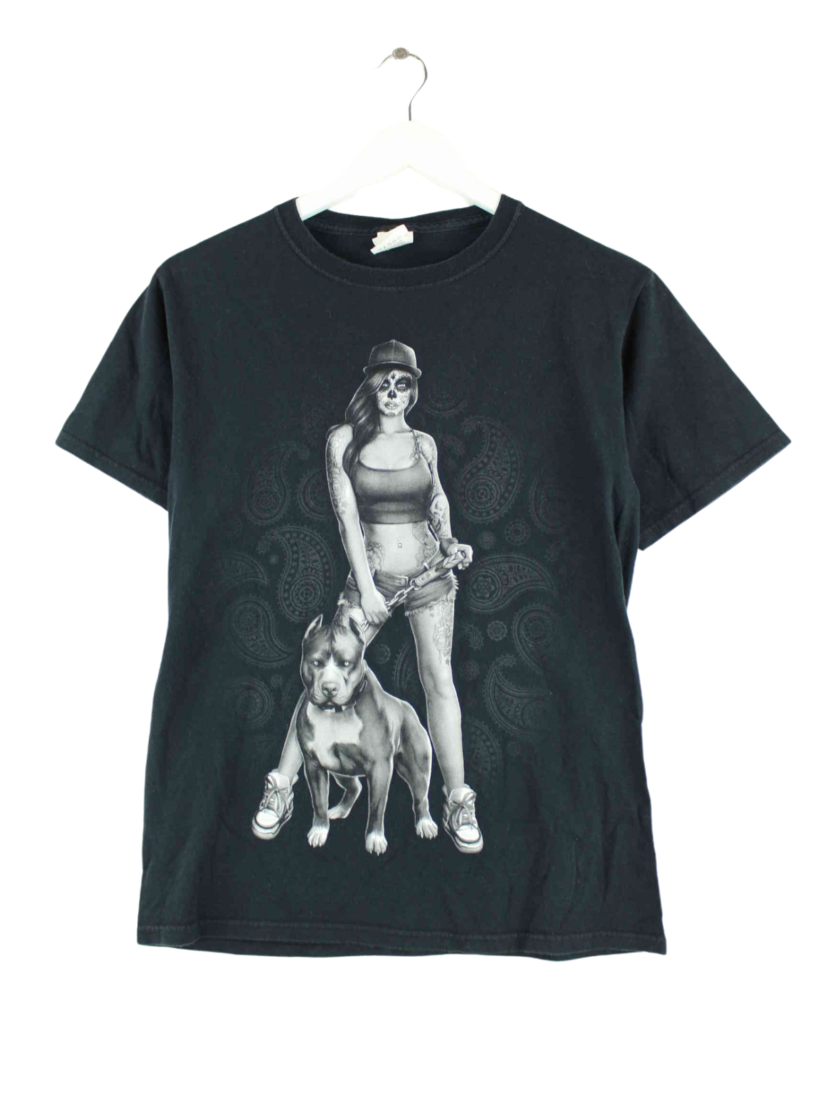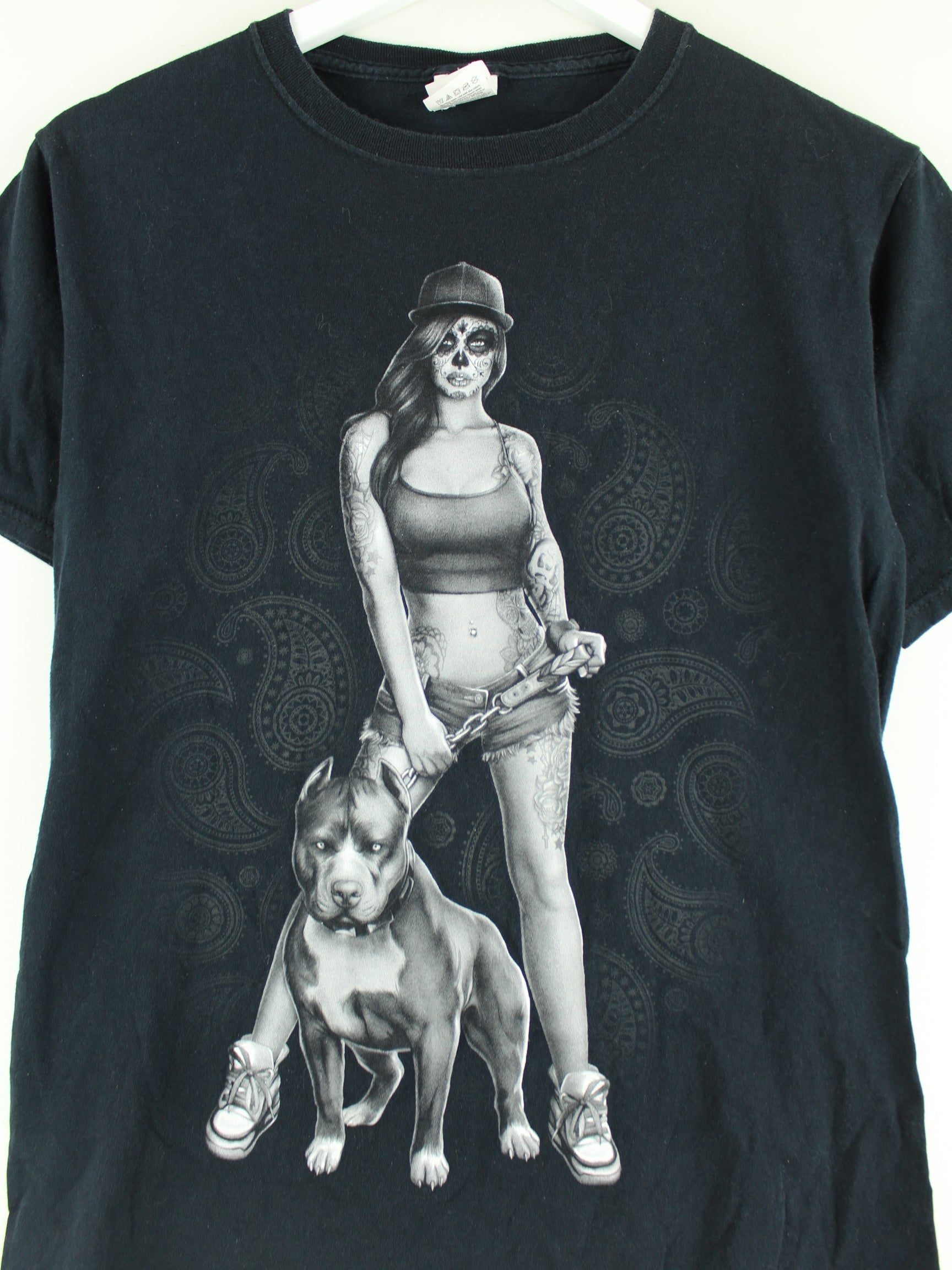 Fruit of the Loom Women's Chicano Pitbull Print T-Shirt Black S