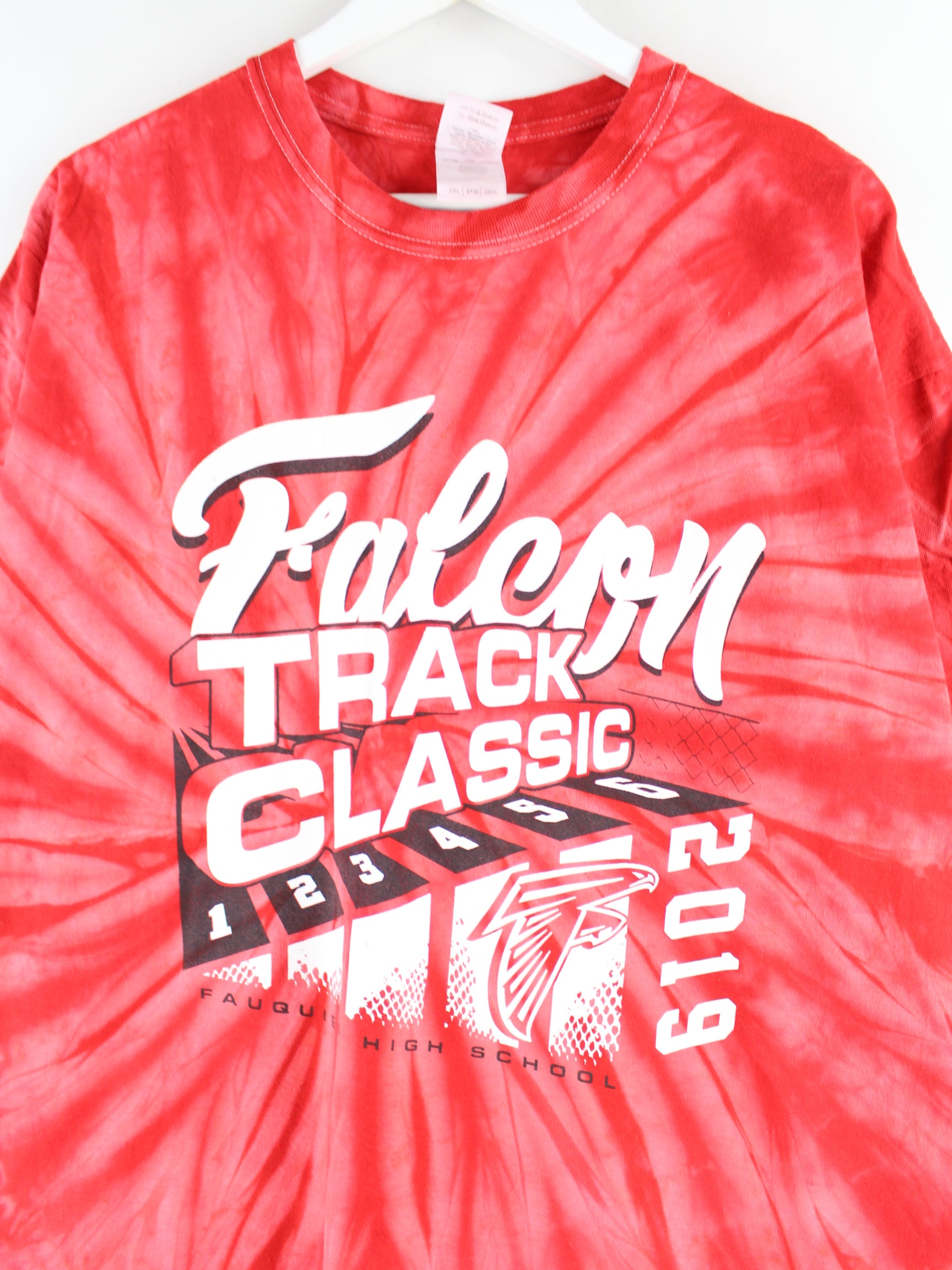 Red T-shirt from the brand Gildan in size XXL. It is made of cotton and is in very good condition. With a chic Falcon print.