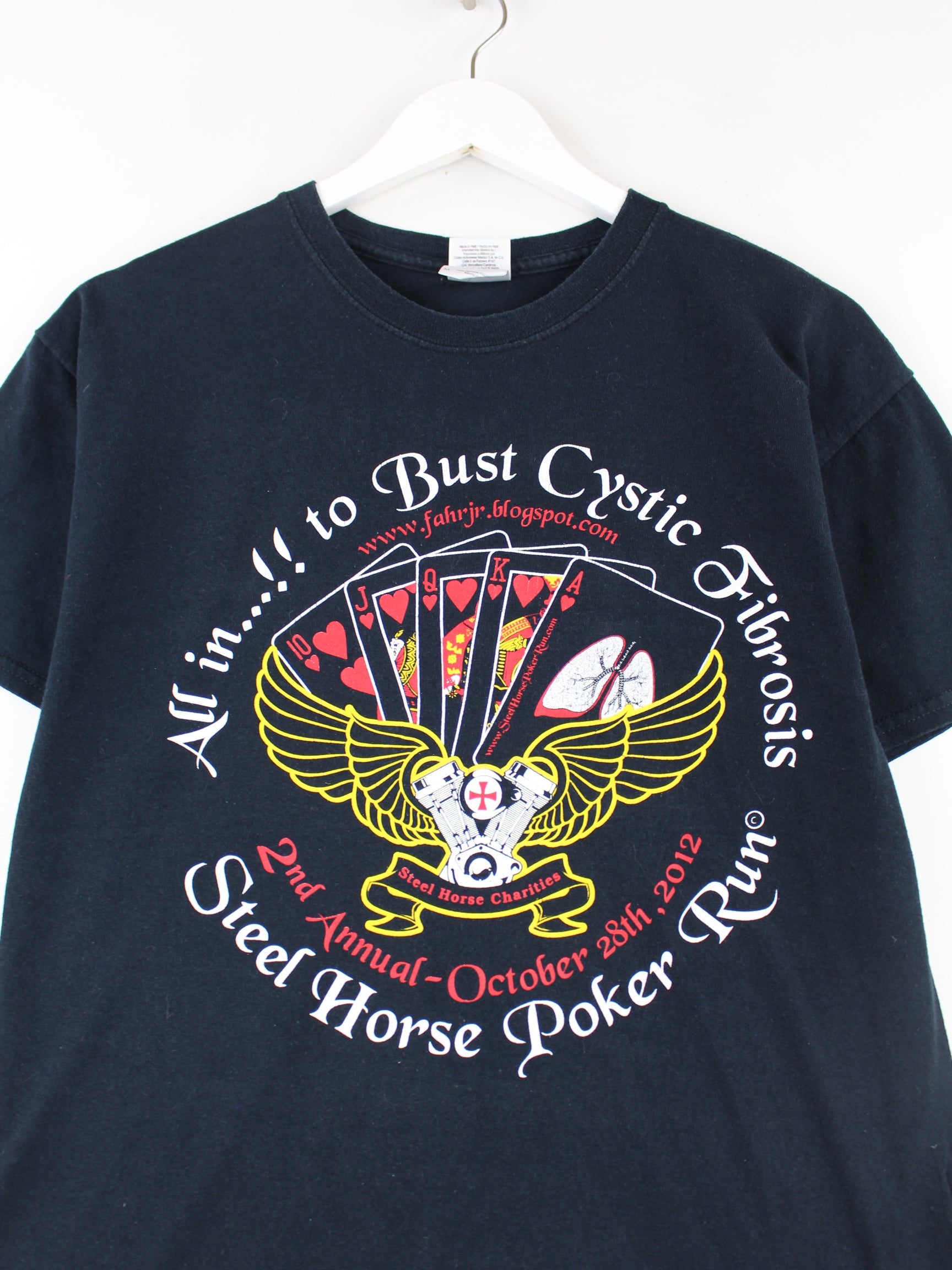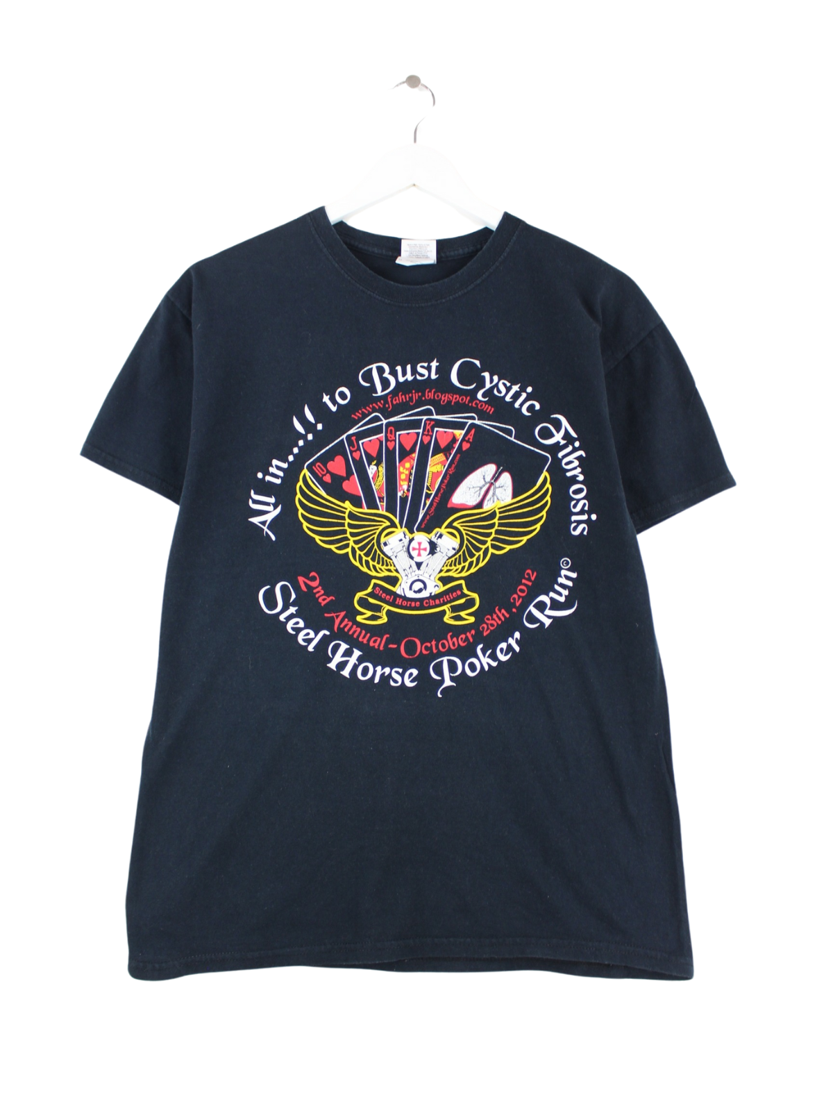T-shirt from the label Gildan in size M. It is made of cotton and comes in black. With a chic poker print.