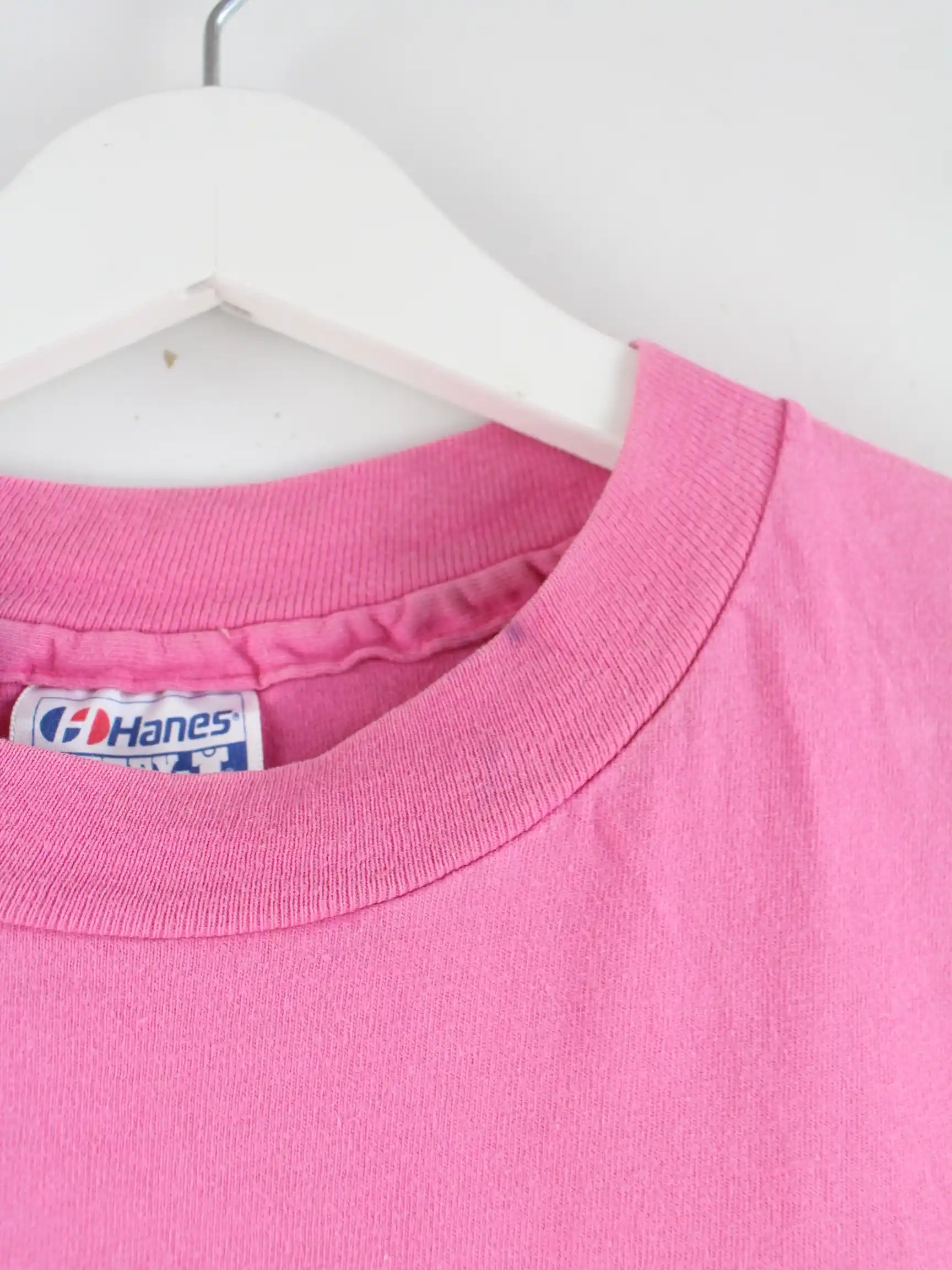 Pinkfarbenes T-Shirt der Marke Hanes aus den 90'ern in Größe XL. Es ist aus Baumwolle produziert. Den Zustand würden wir als 'In Ordnung' bezeichnen (vergl. Bilder).Mit schönem Canyon Print.