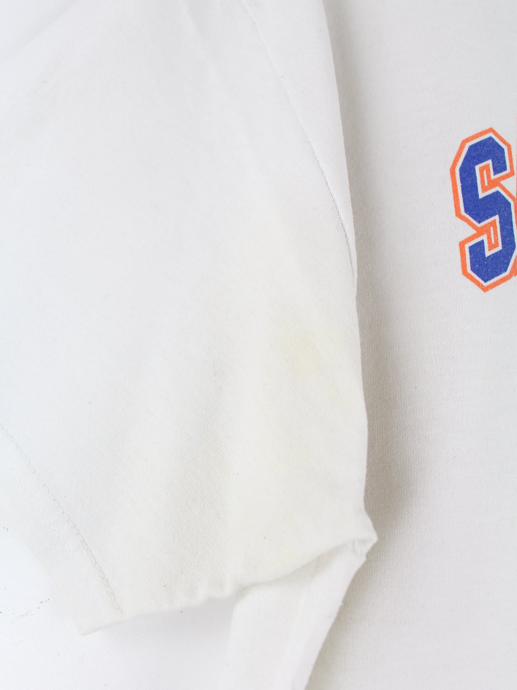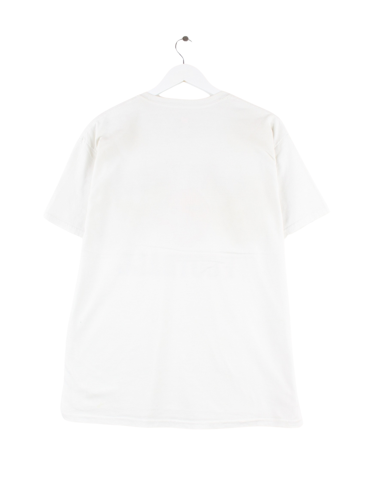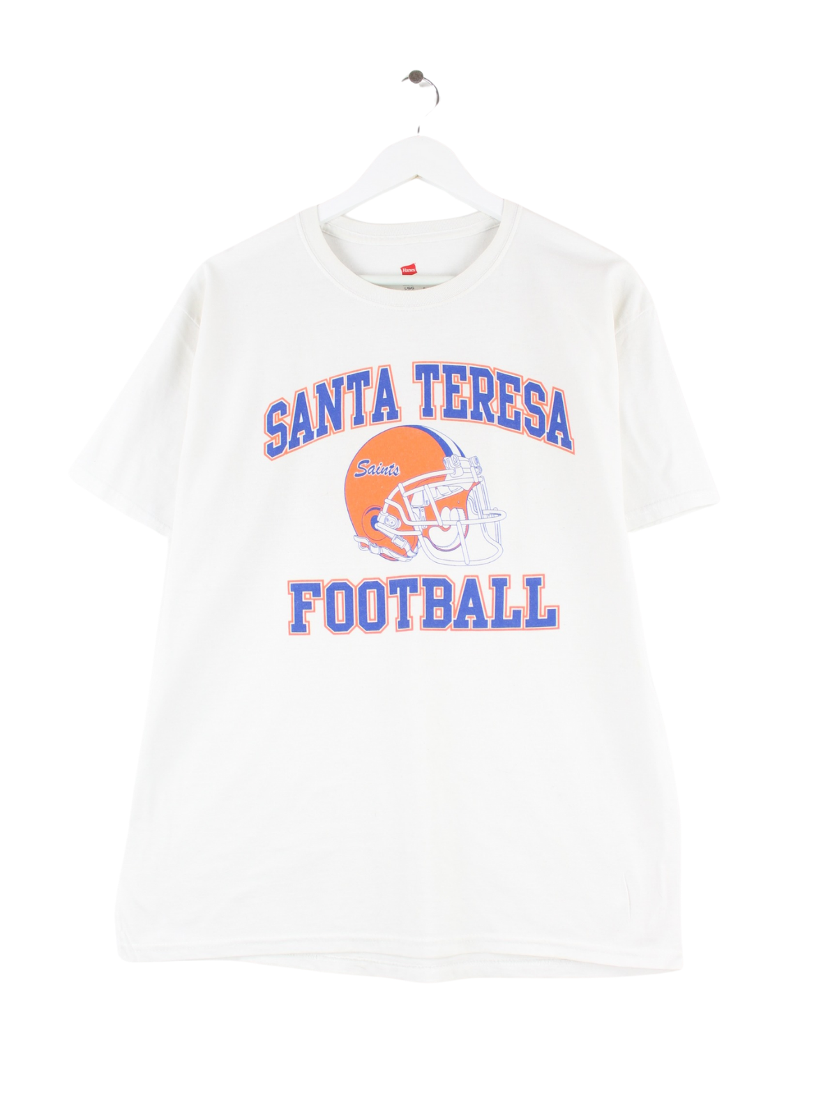 T-shirt from Hanes in size L. It is made of cotton and available in white. With a stylish football print.