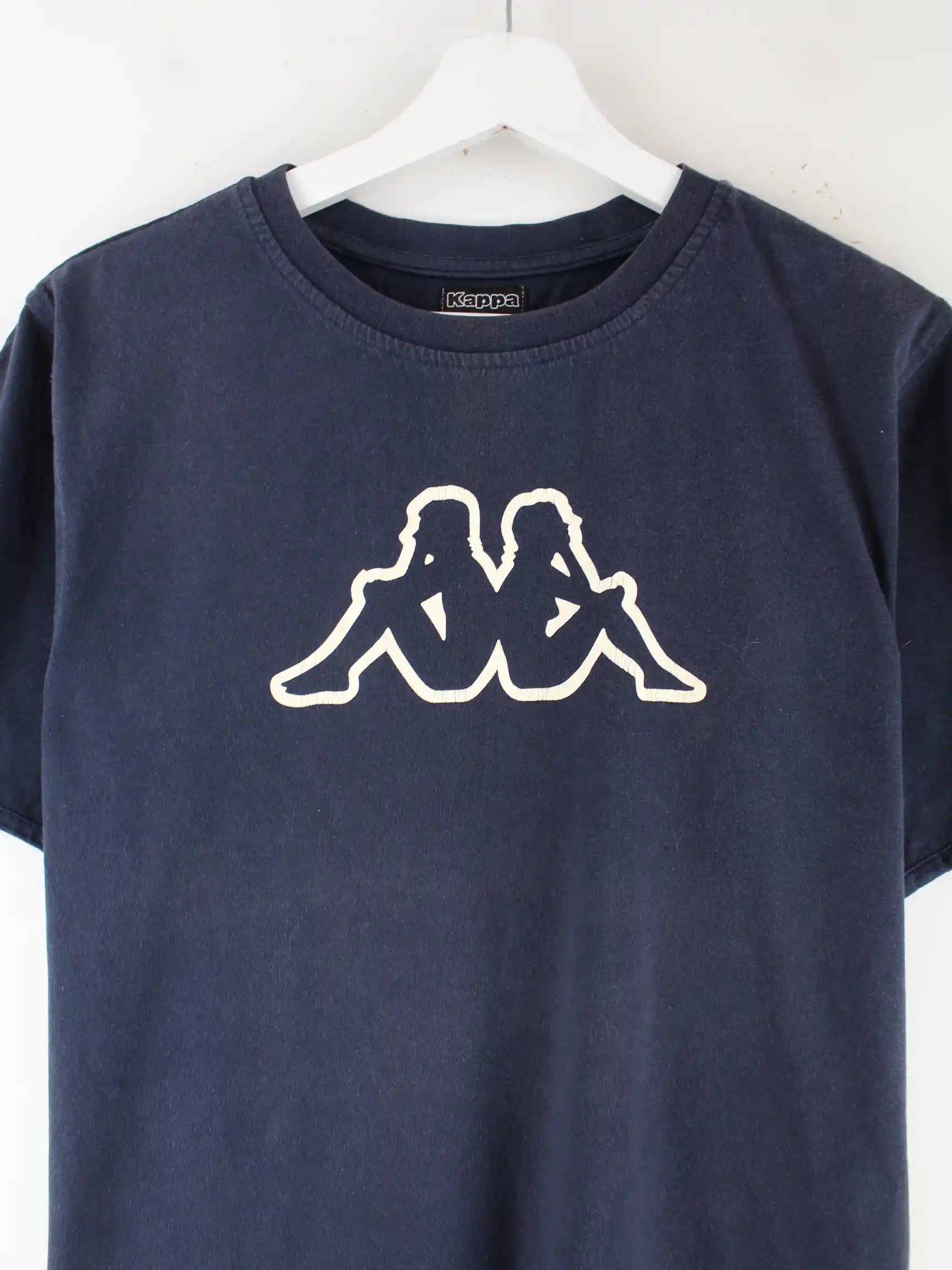Blaues T-Shirt von Kappa in Größe M. Es ist aus einer Baumwollmischung gefertigt und in gutem Zustand zu haben. Mit seltenem 00s Print.
