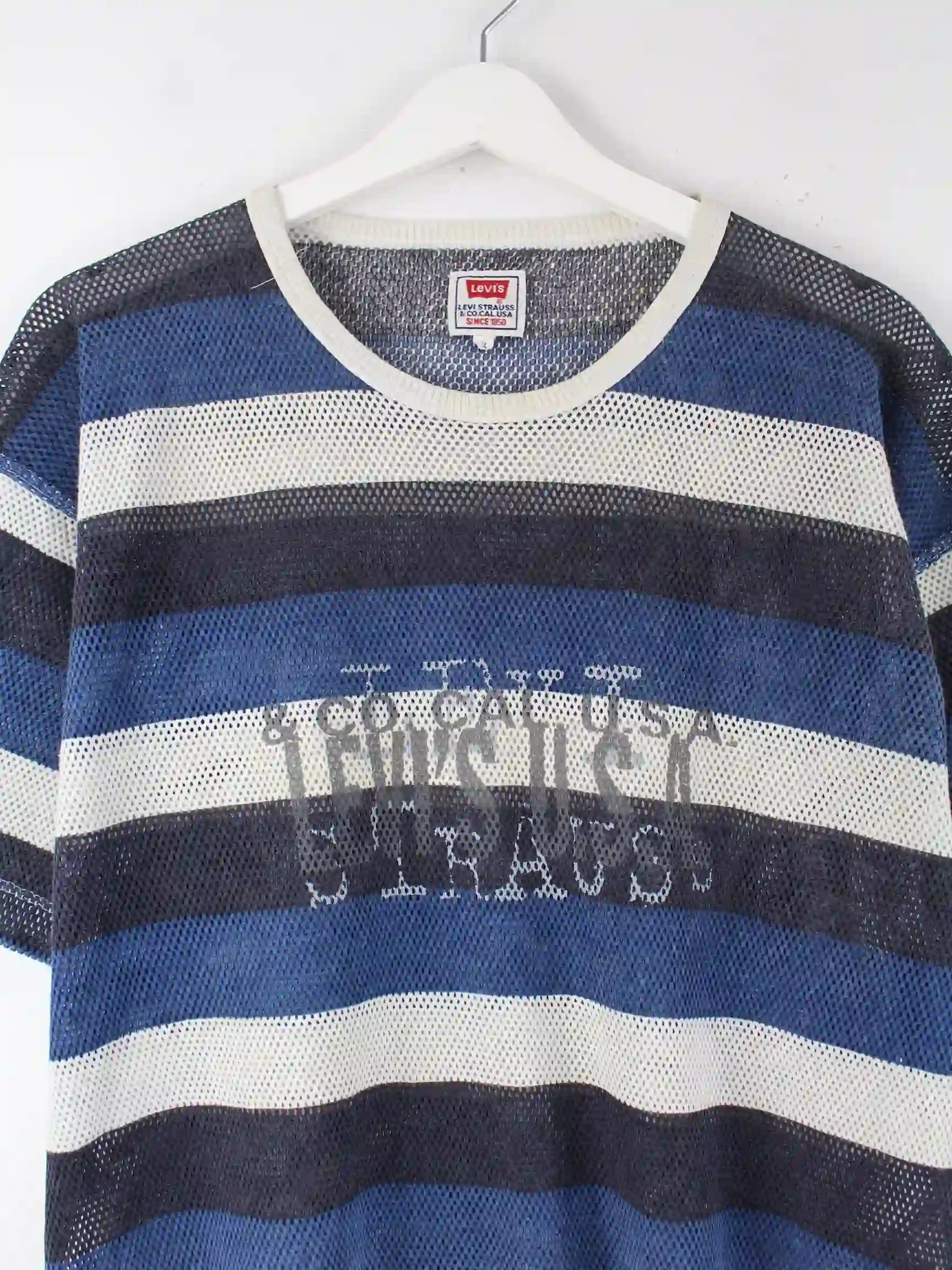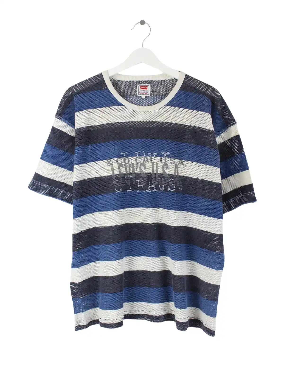 Blaues T-Shirt des Labels Levi's in Größe XL. Es ist aus Synthetik hergestellt und in sehr gutem Zustand in Stock. Mit chiquem 00s Print.