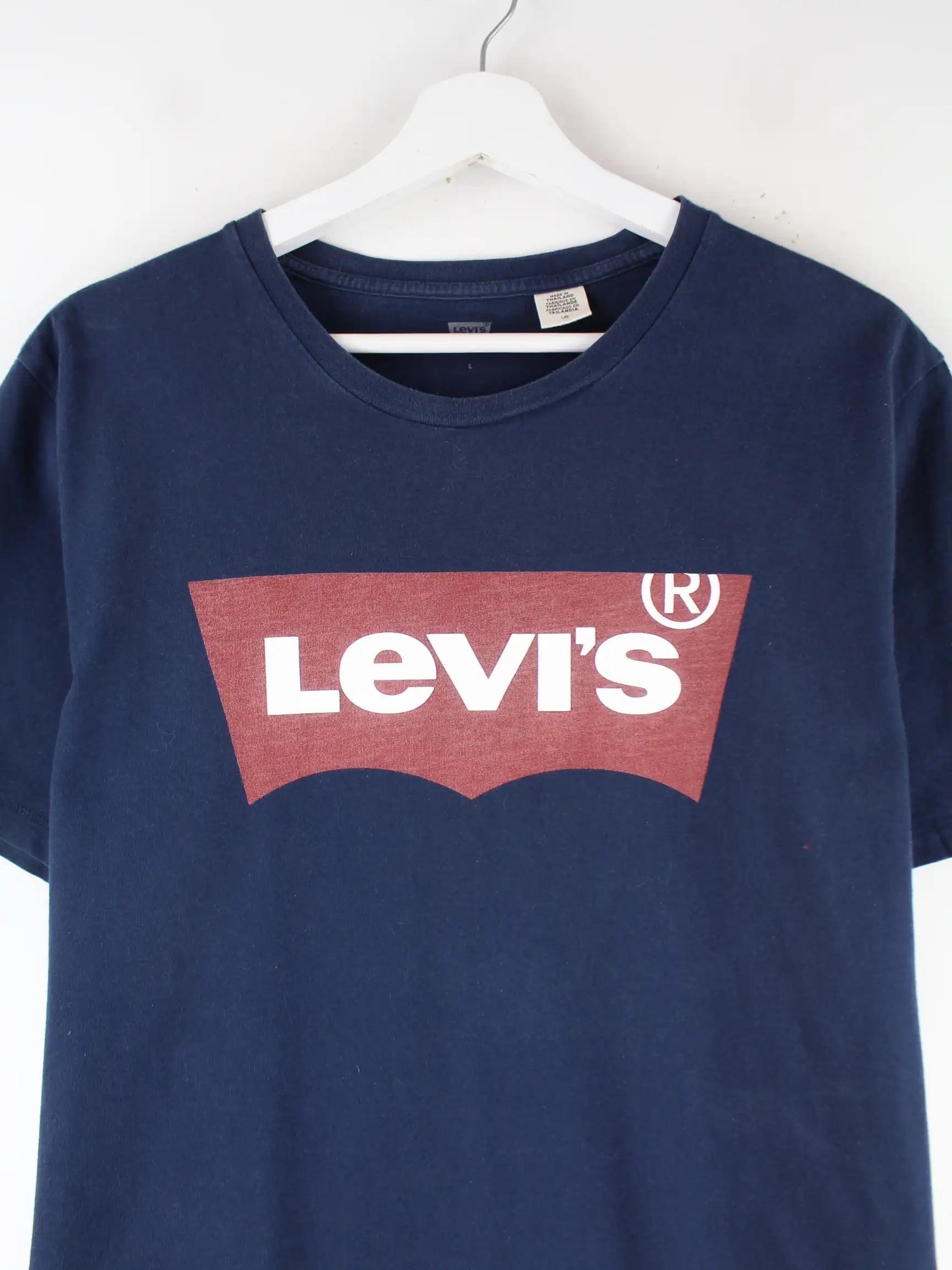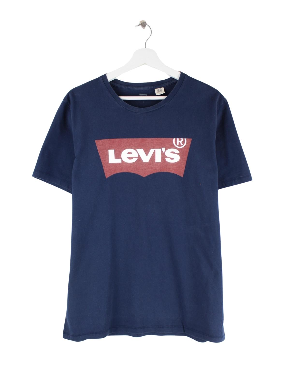 Blaues T-Shirt vom Label Levi's in Größe L. Es ist aus Baumwolle hergestellt und in sehr gutem Zustand zu bekommen. Mit schickem Logo Print.