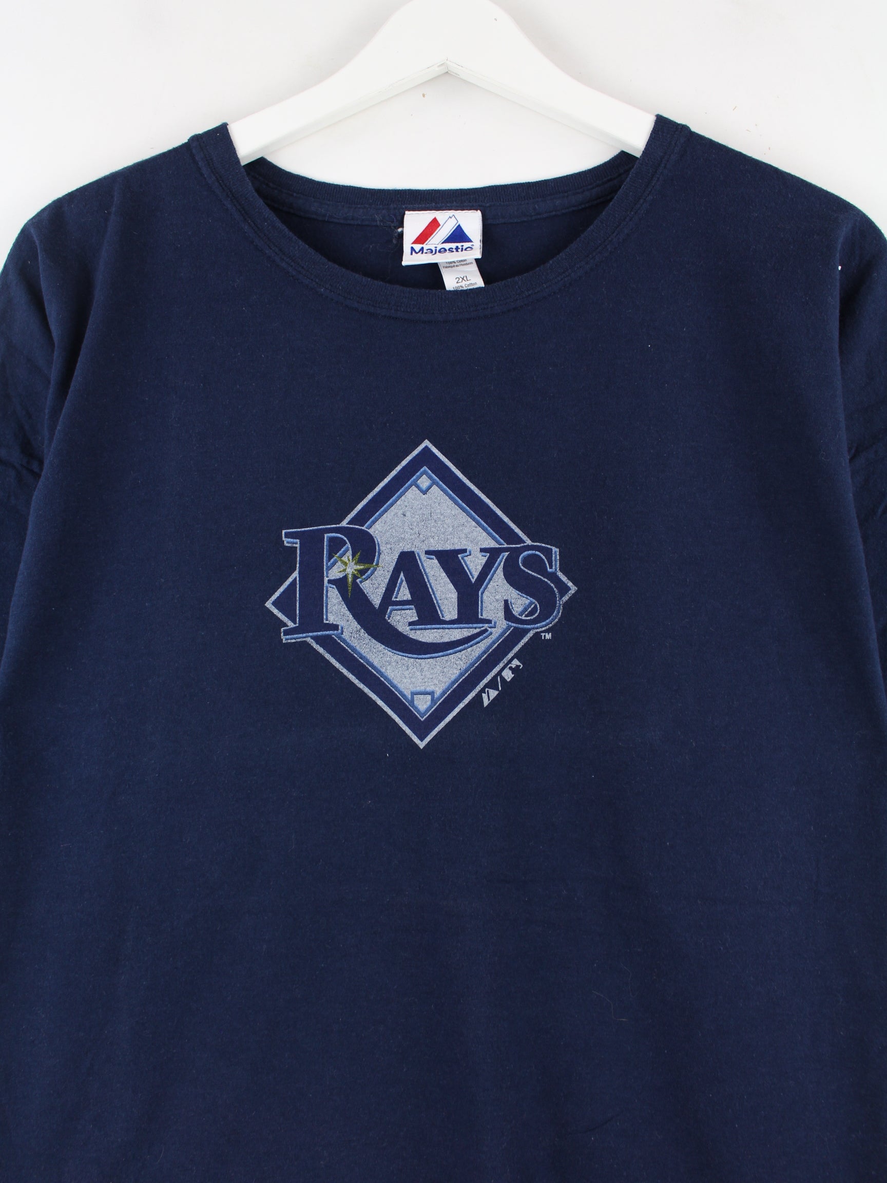 Majestic 00s MLB Tampa Bay Rays Print T-Shirt Blue XXL