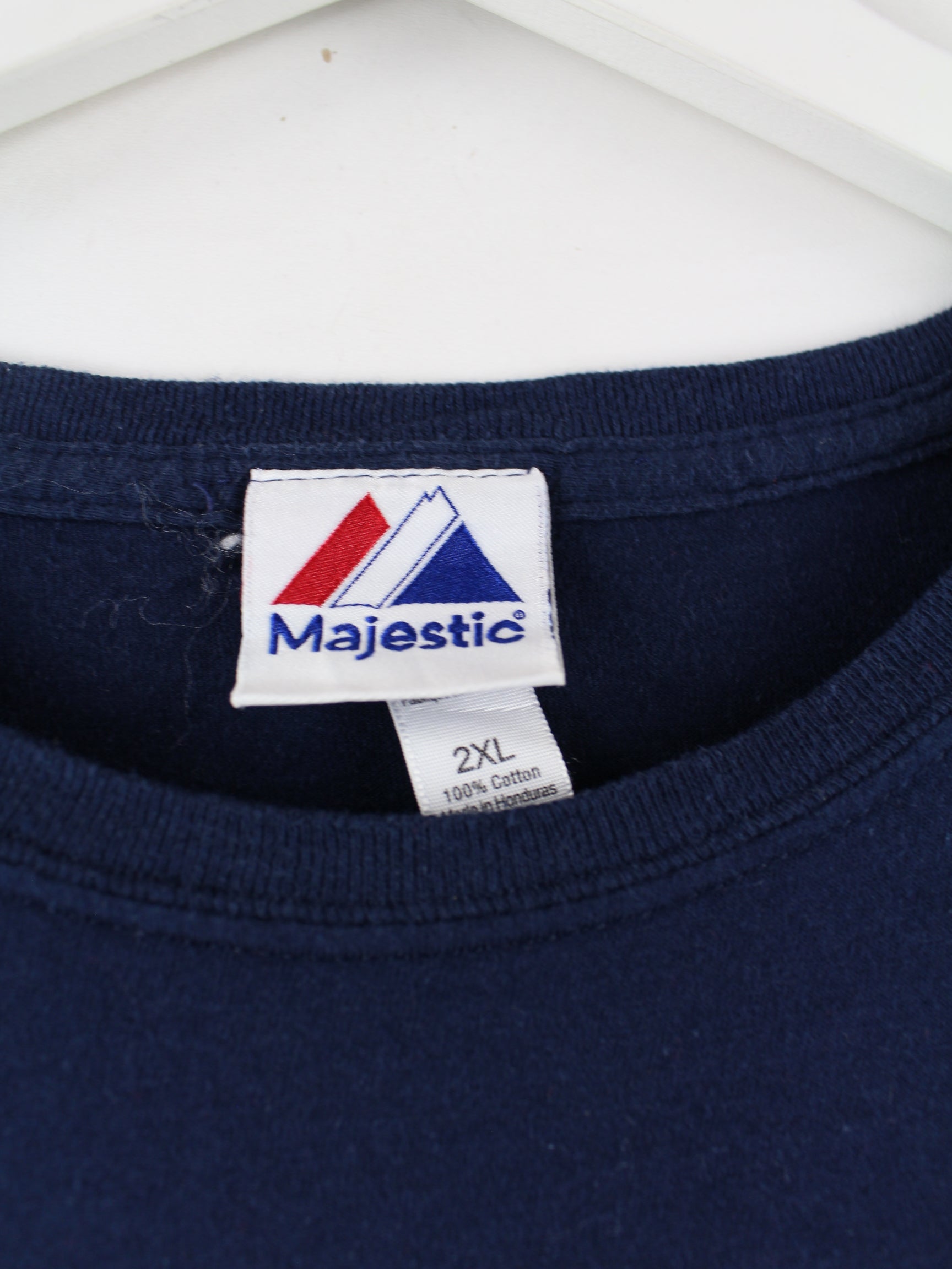 Blue T-shirt from the label Majestic in size XXL. It is made of cotton and is in very good condition. With rare Rays print.