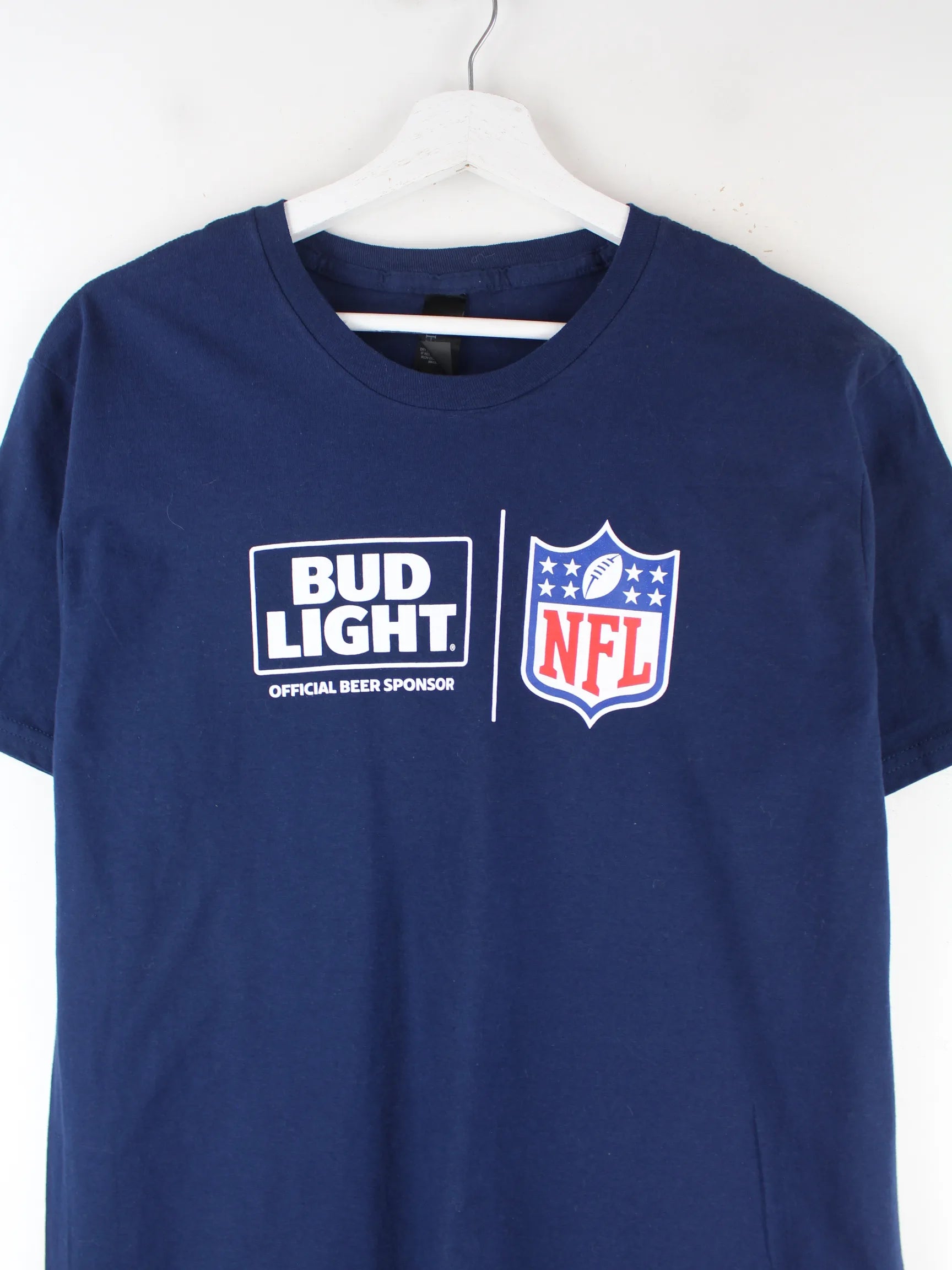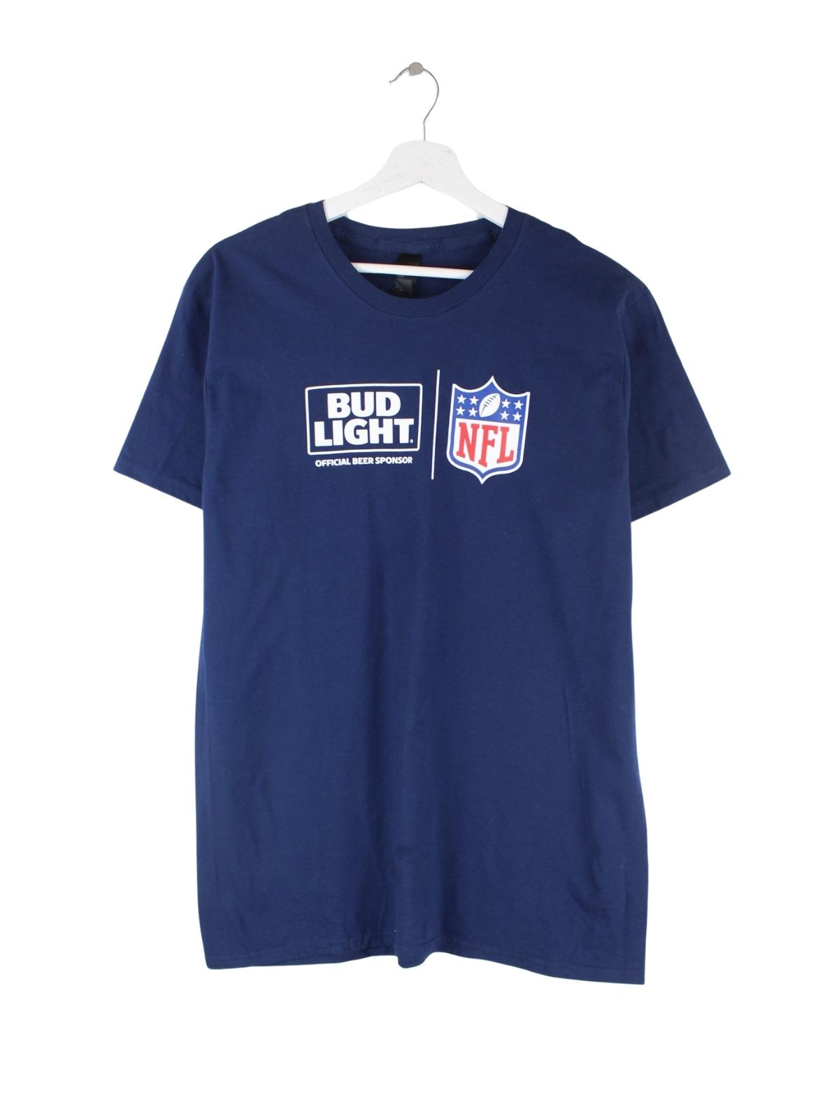 T-Shirt des Labels NFL in Größe L. Es ist aus Baumwolle gefertigt und in Blau im Bestand. Mit schönem Light Print.