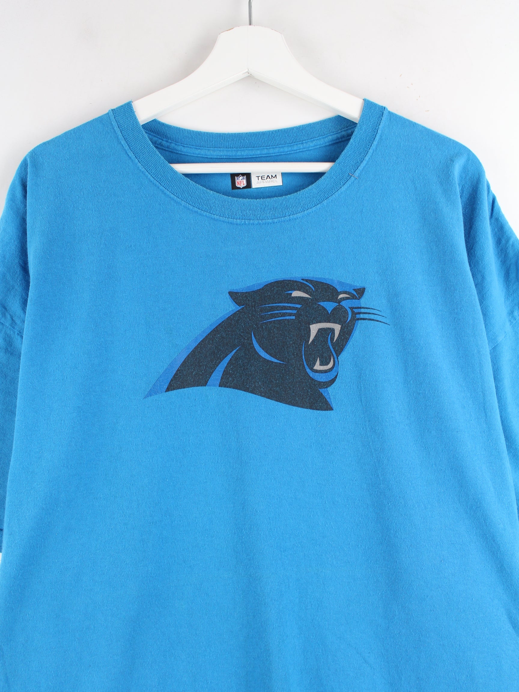 T-Shirt vom Label NFL in Größe 3XL. Es ist aus Baumwolle produziert und in Blau in Stock. Mit seltenem Panthers Print.