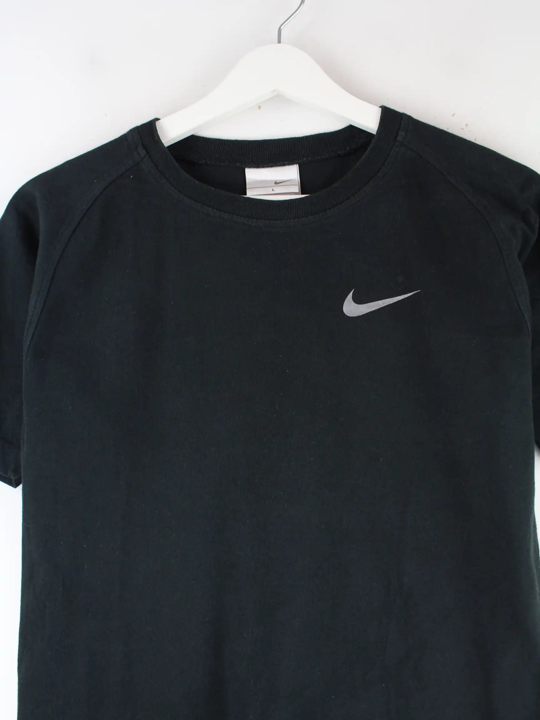 T-Shirt der Brand Nike in Größe S. Es ist aus einer Baumwollmischung angefertigt und in Schwarz auf Lager.