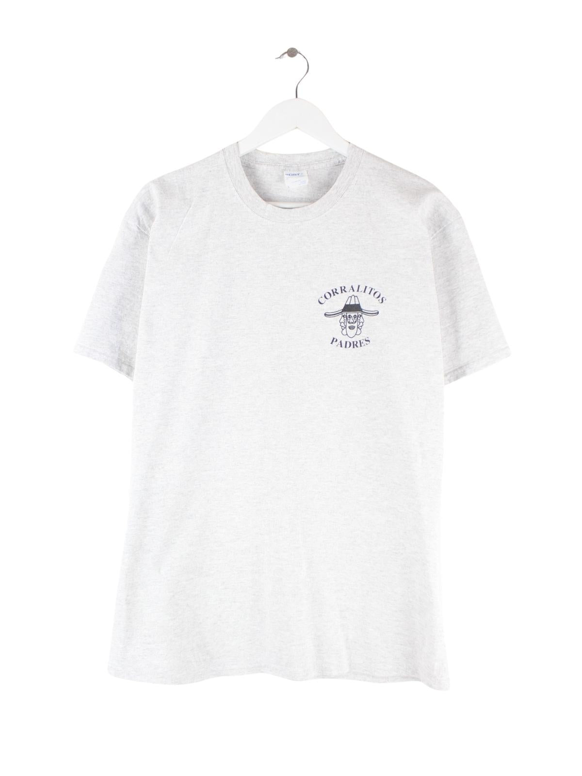 Graues T-Shirt von Port & Company in Größe L. Es ist aus Baumwolle produziert und in sehr gutem Zustand bei uns vorrätig. Mit schickem Lumberjack Print.