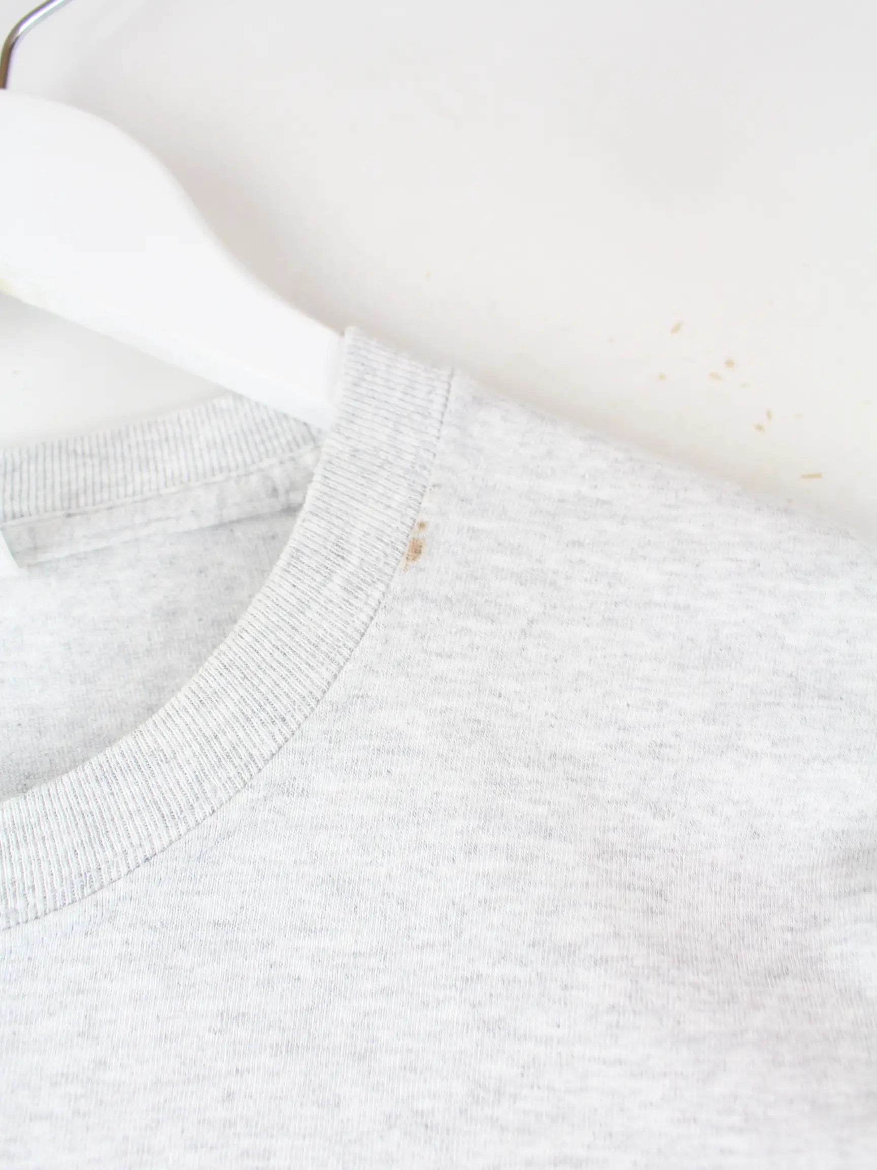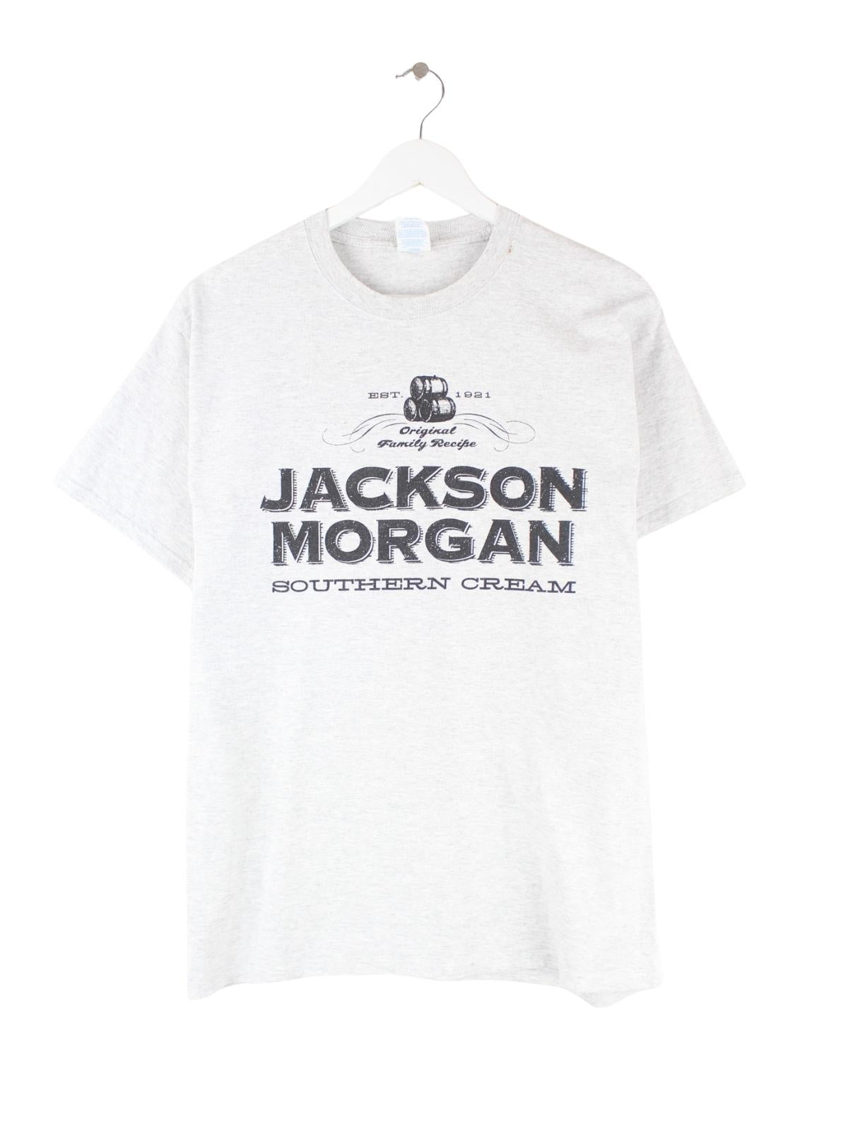 Graues T-Shirt der Marke Port & Company in Größe M. Es ist aus Baumwolle produziert und in gutem Zustand lieferbar. Mit schönem Print.