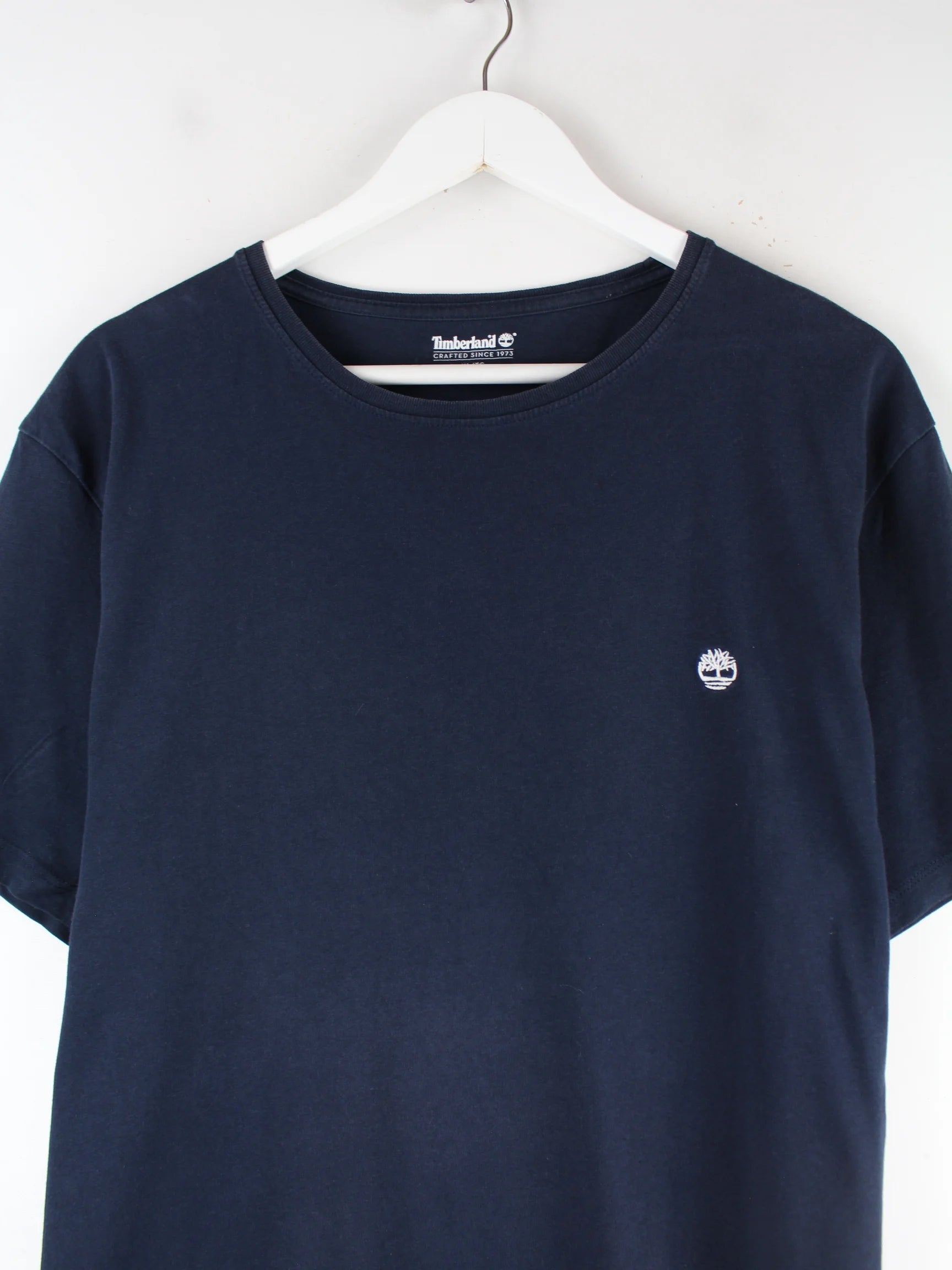 T-Shirt vom Label Timberland in Größe XL. Es ist aus Baumwolle produziert und in Blau lieferbar.