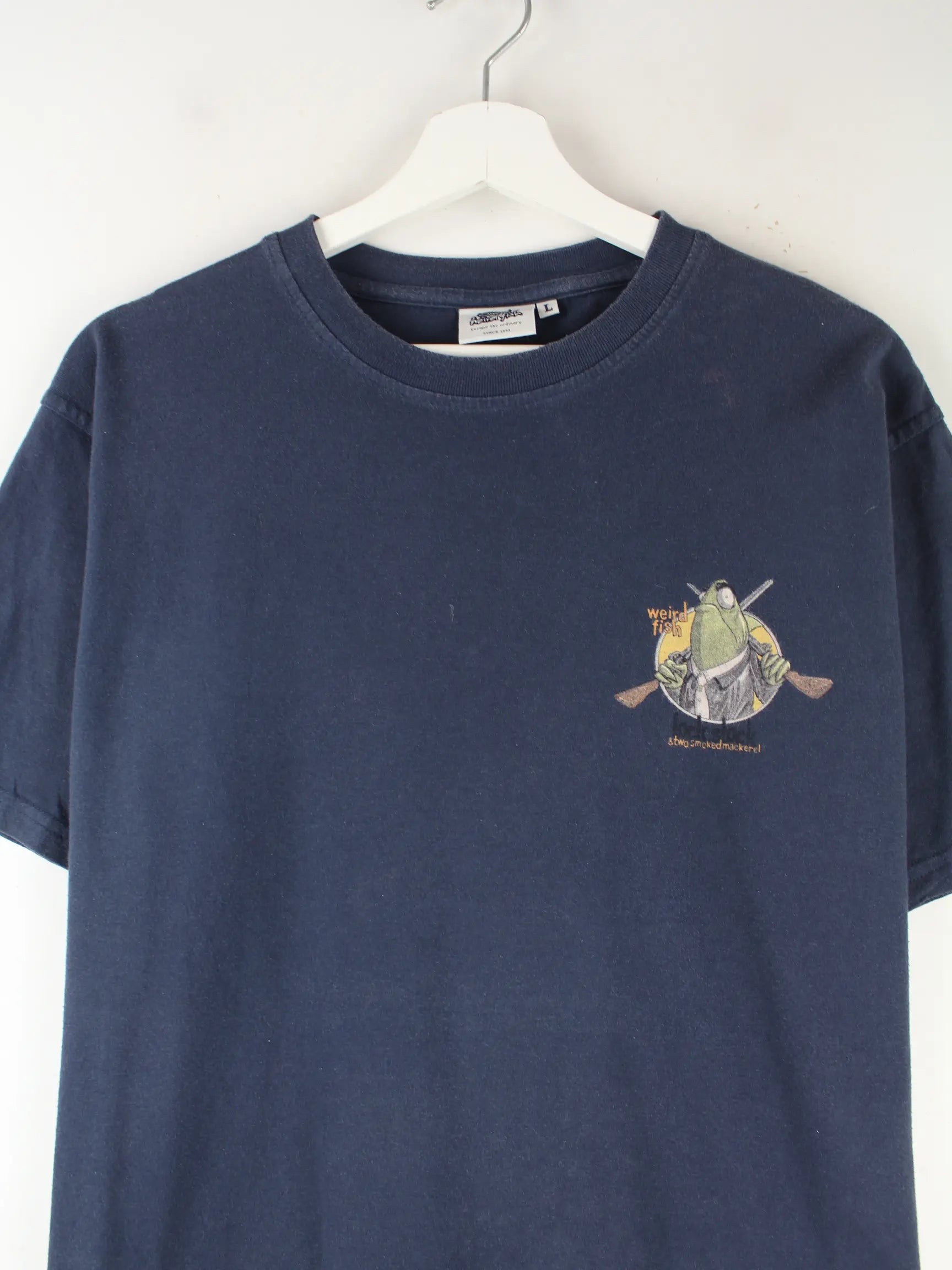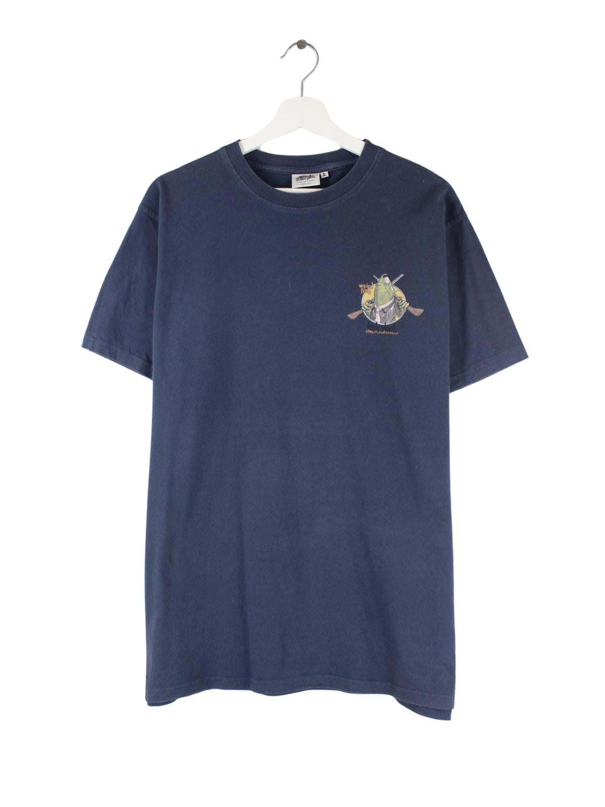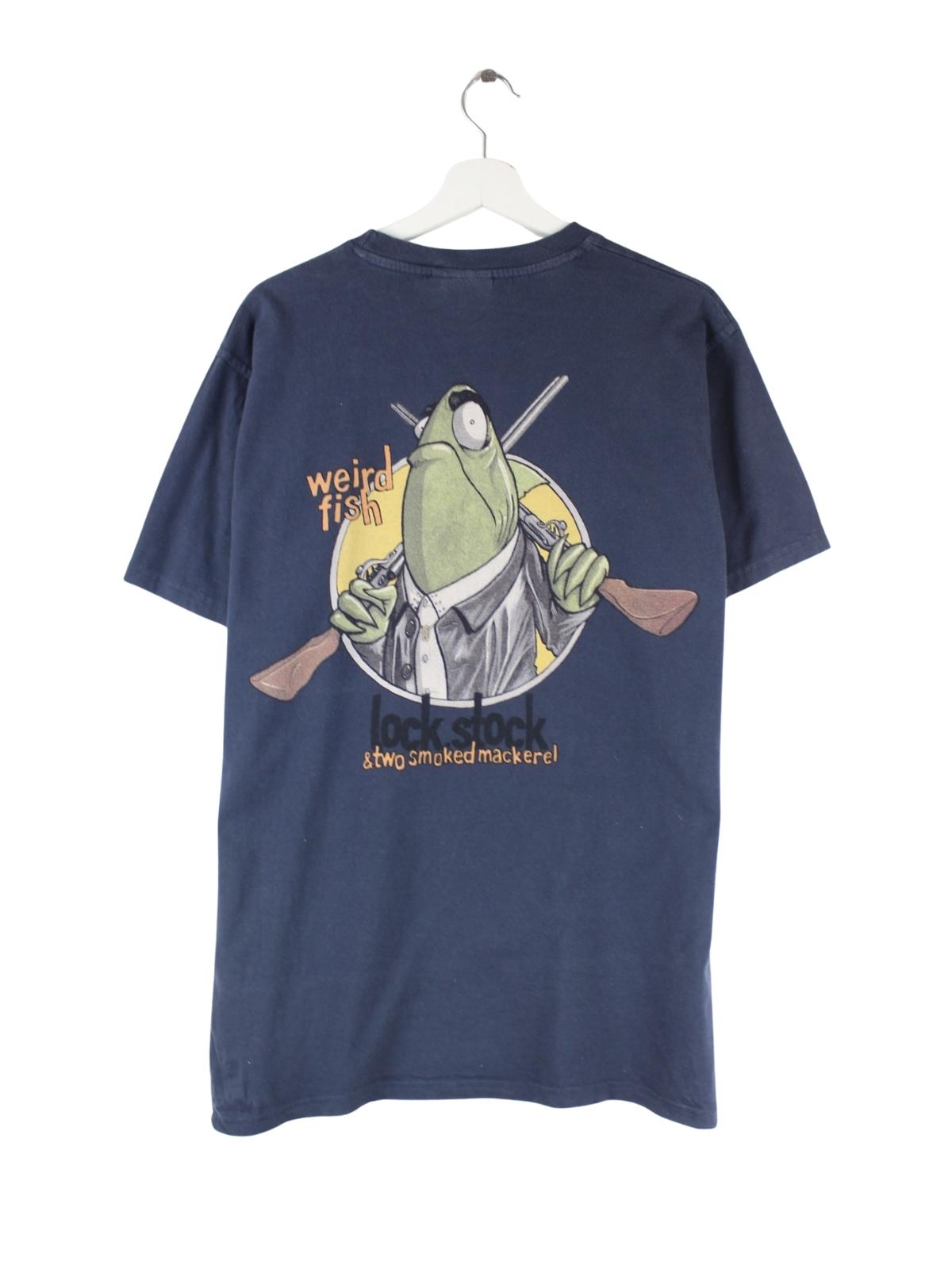 Blaues T-Shirt der Brand Weird Fish in Größe L. Es ist aus Baumwolle angefertigt und in gutem Zustand vorrätig. Mit schickem 00s Print.