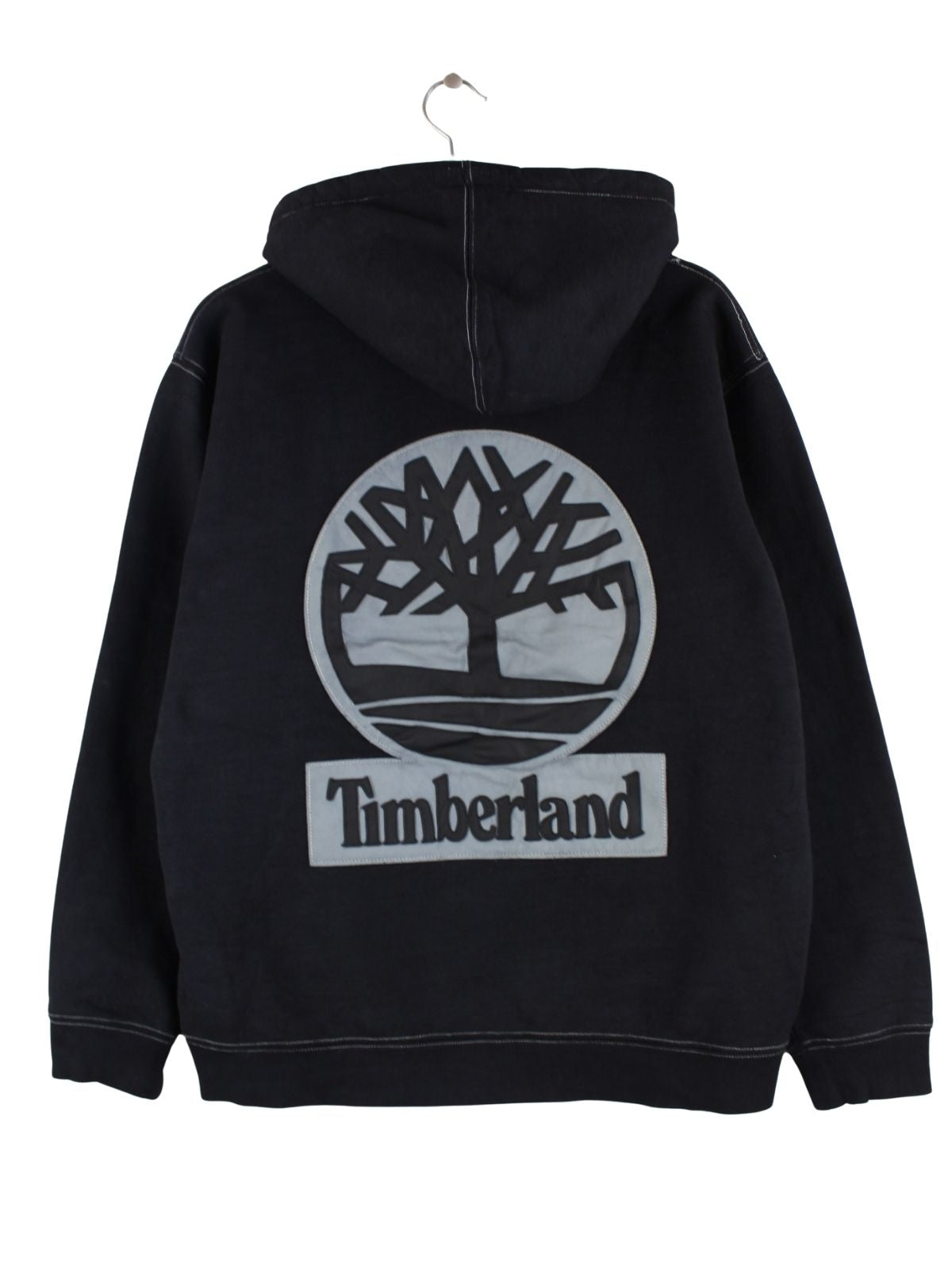 Schwarzer Hoodie vom Label Timberland in Größe L. Er ist aus einer Baumwollmischung und in gutem Zustand bei uns vorrätig.