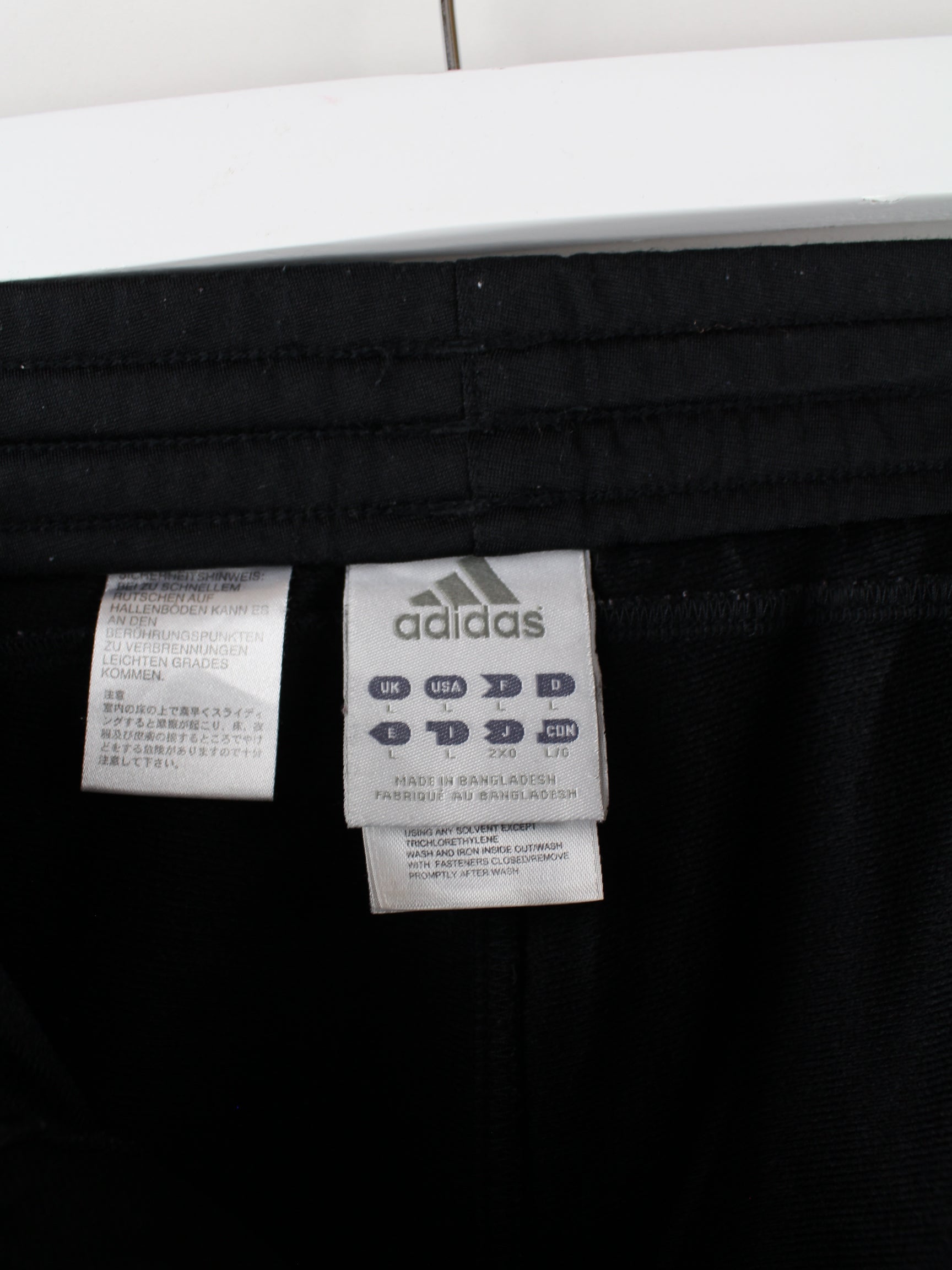 Track Pants von Adidas in Größe L. Sie sind aus Synthetik gemacht und in Schwarz vorrätig.
