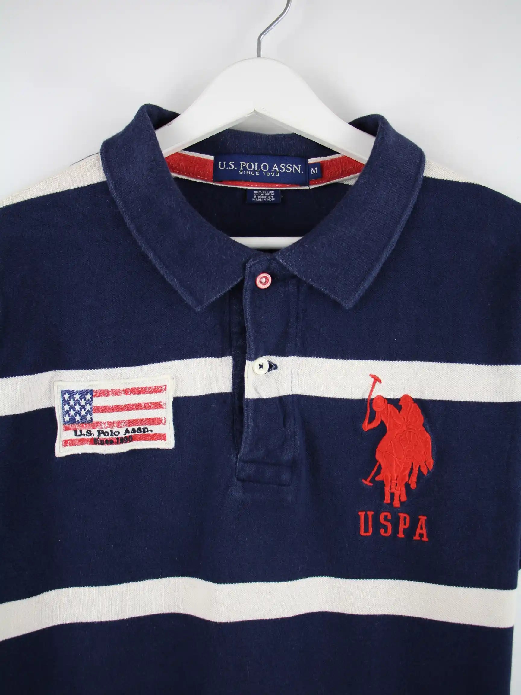 Blaues Poloshirt des Labels U.S. Polo ASSN. in Größe M. Es ist aus Baumwolle gefertigt und in gutem Zustand im Angebot.