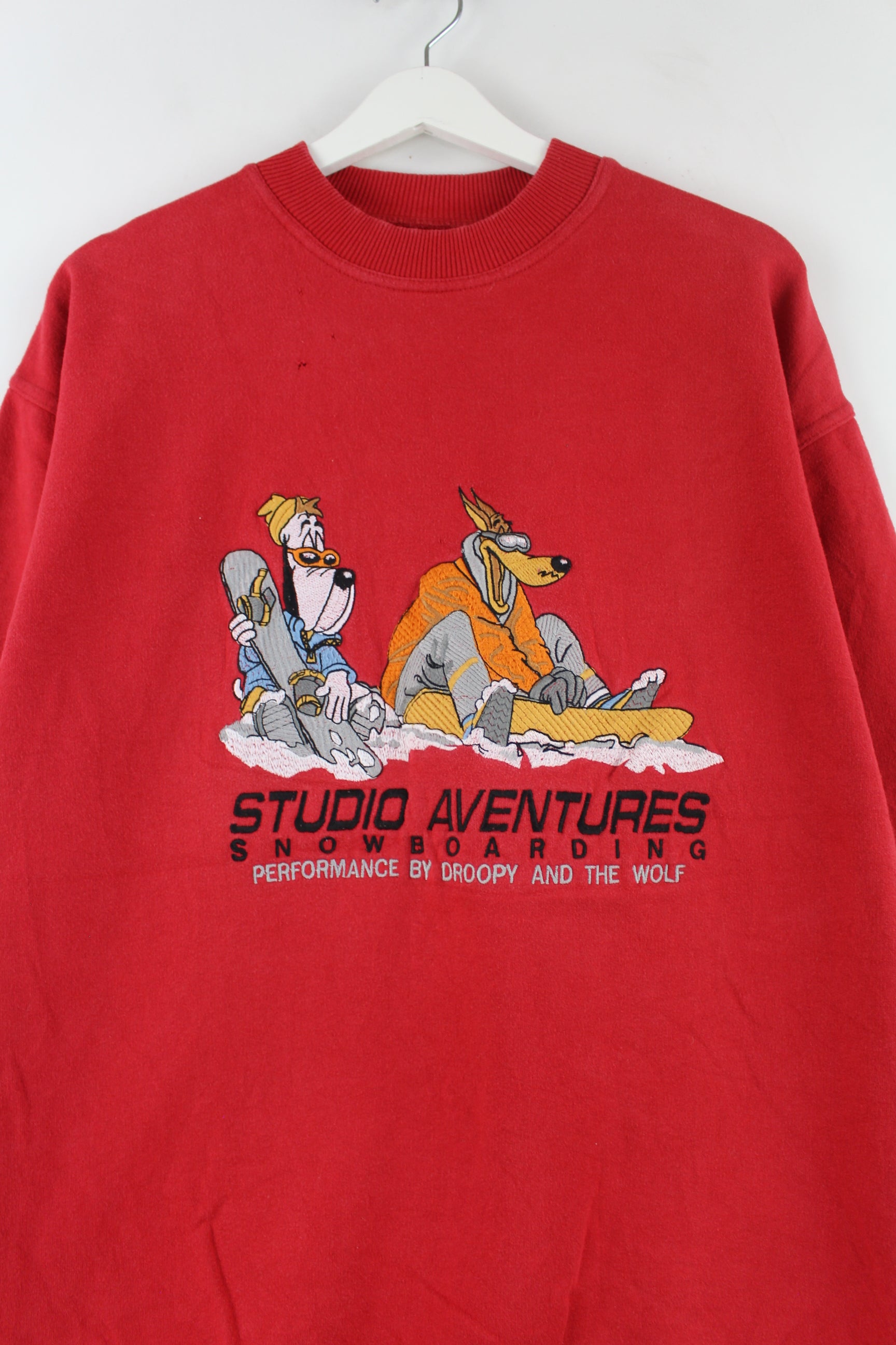 Vintage 90s Droopy Embroidered Sweater Red L