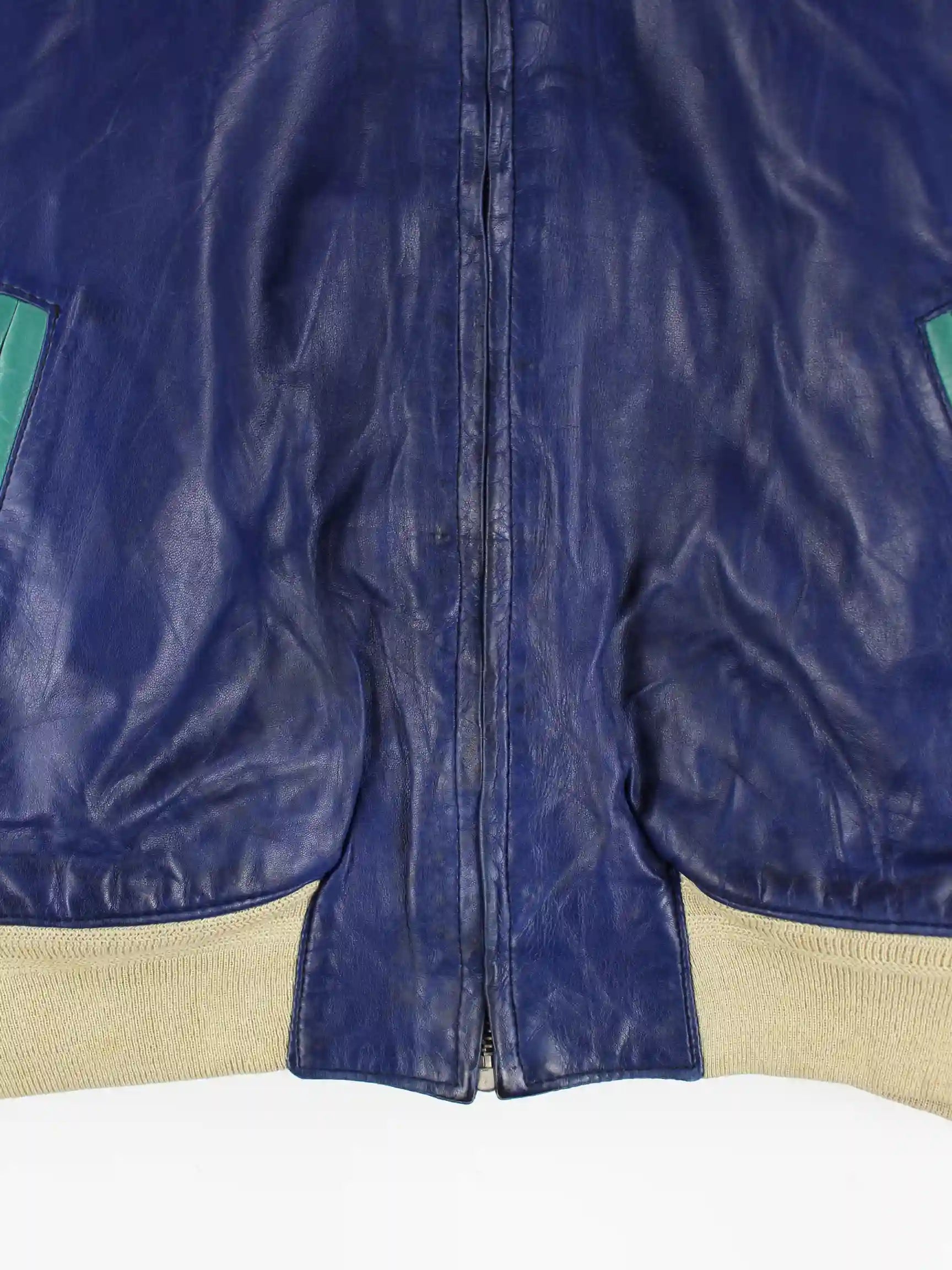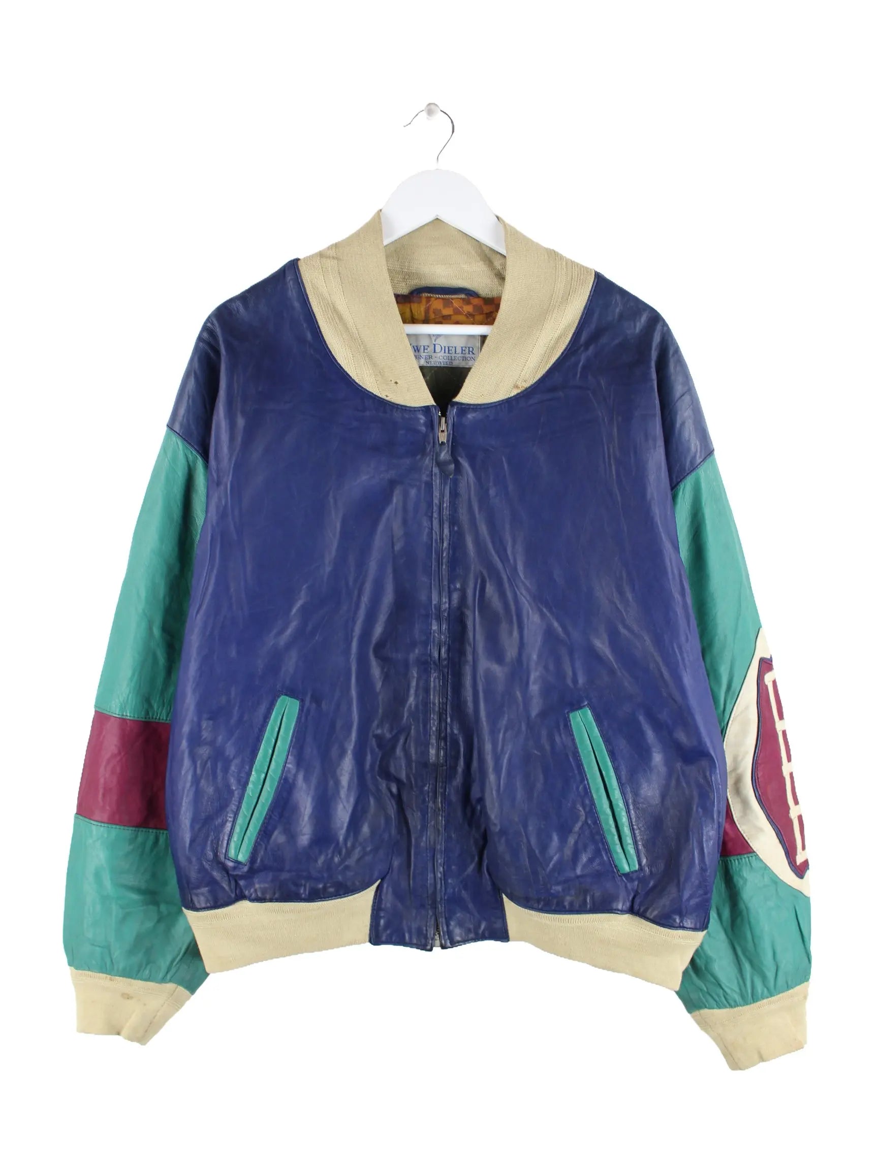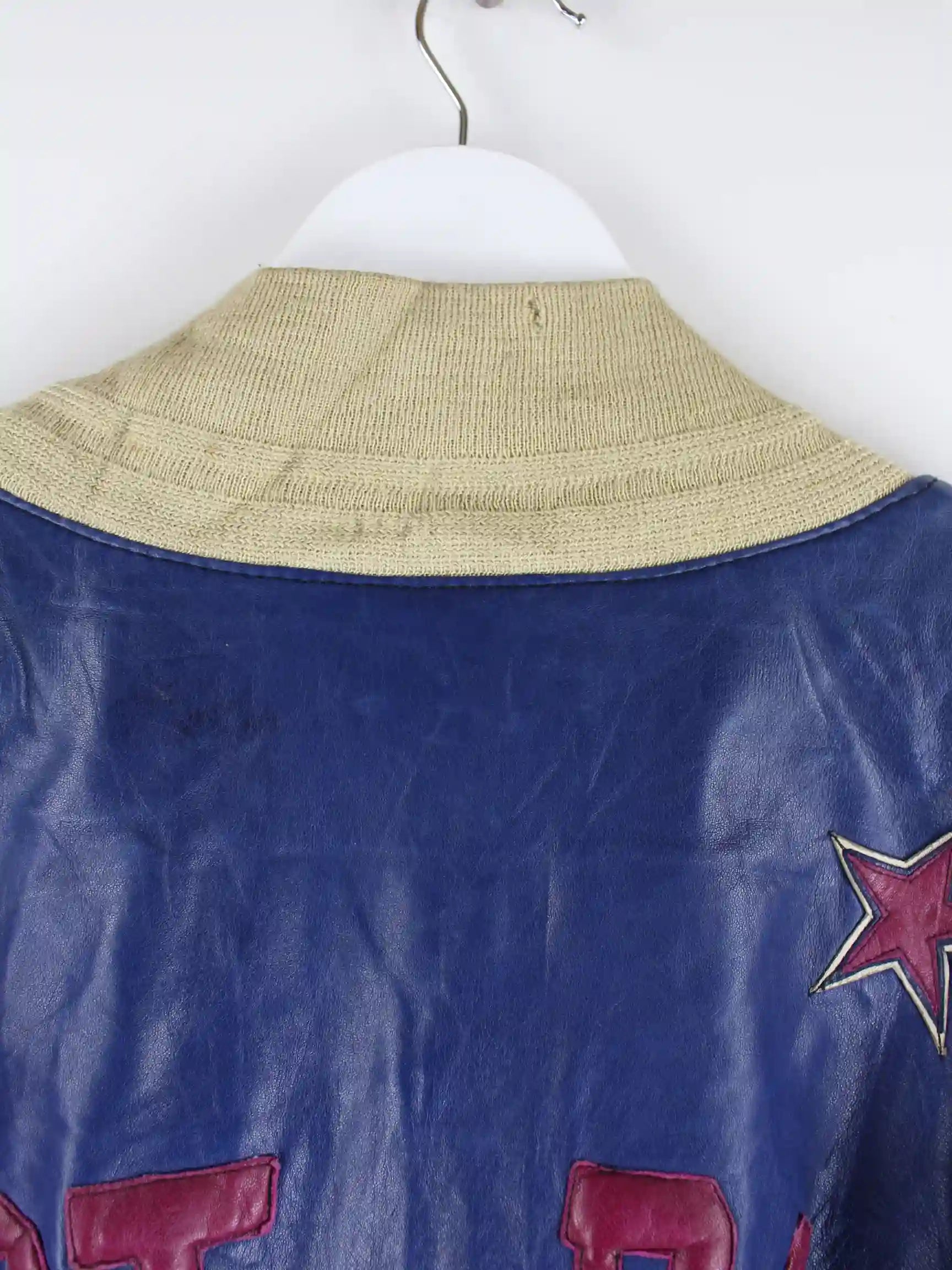 Vintage 70s Uwe Dieler Football Leder Varsity Jacke Blau M