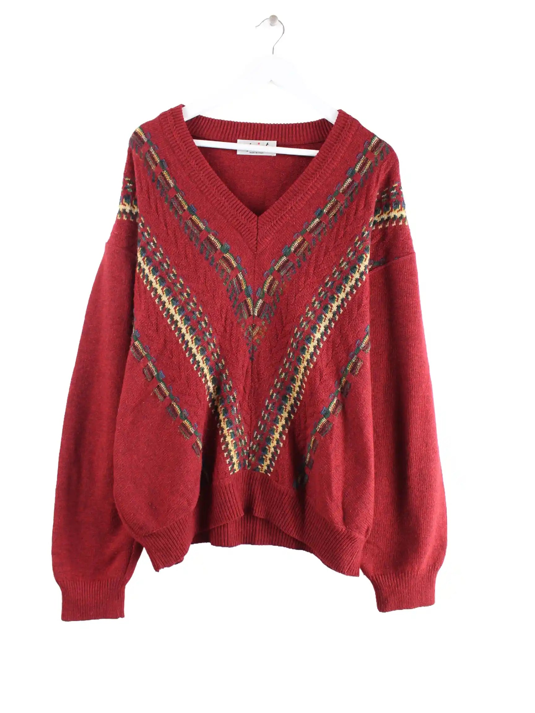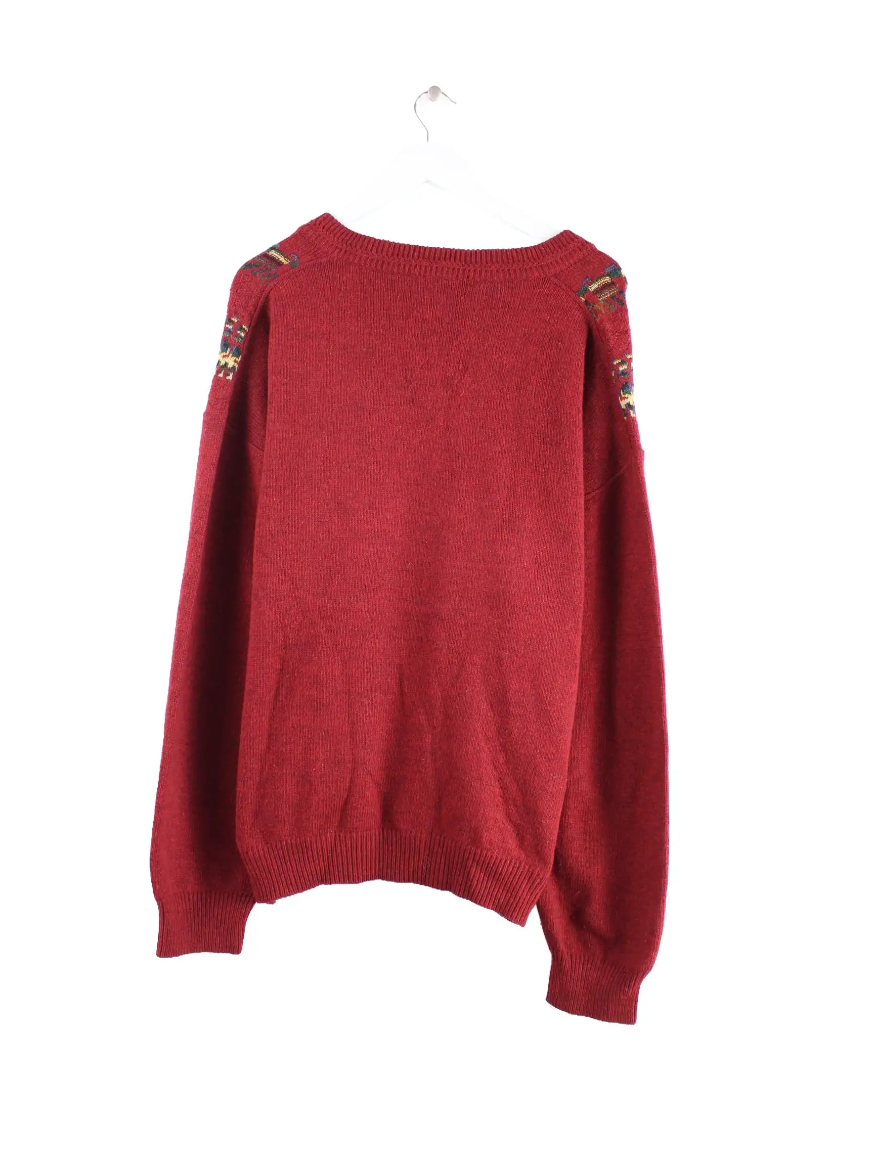 Vintage 90s V-Neck Strick Pullover Rot L