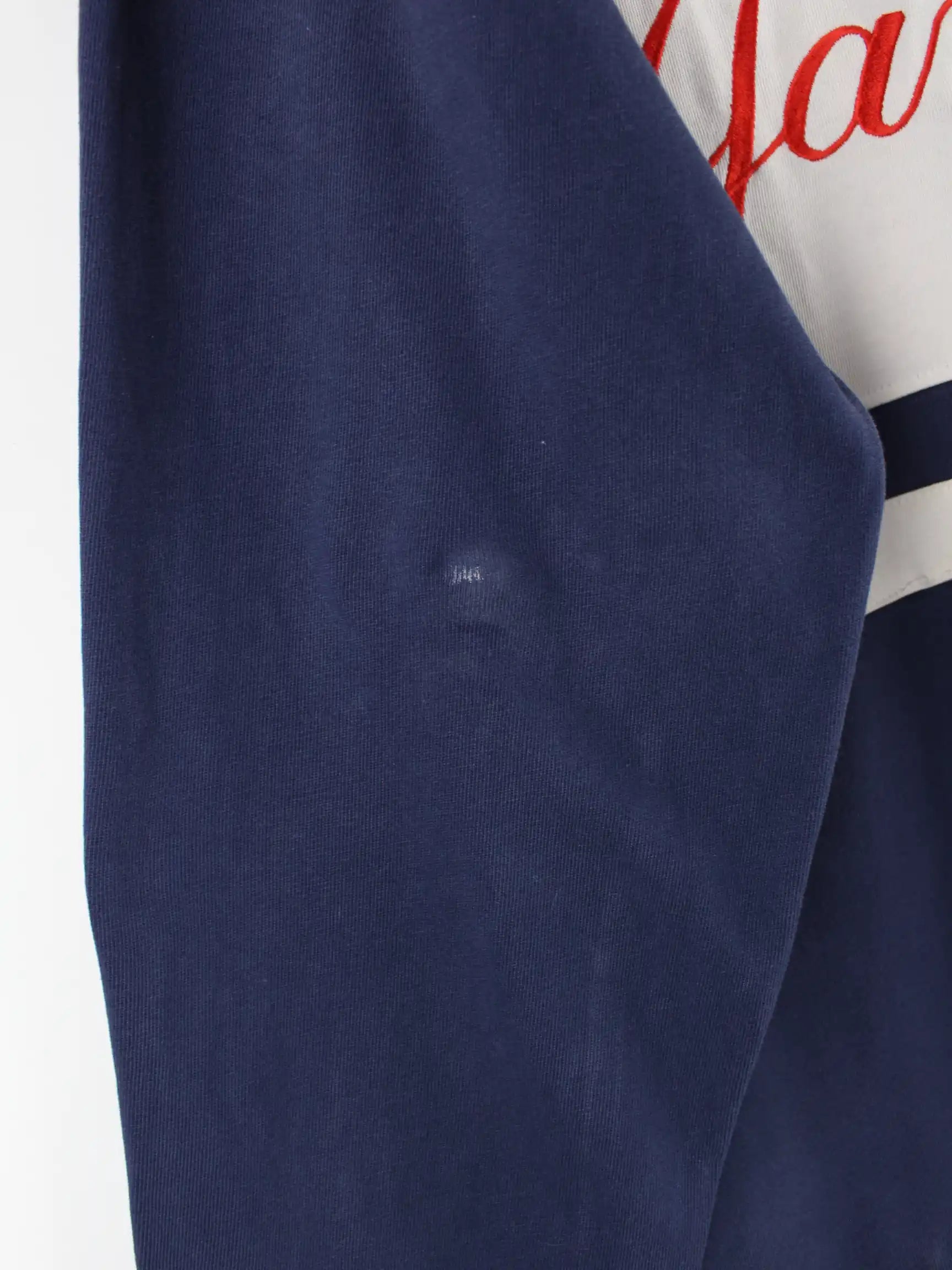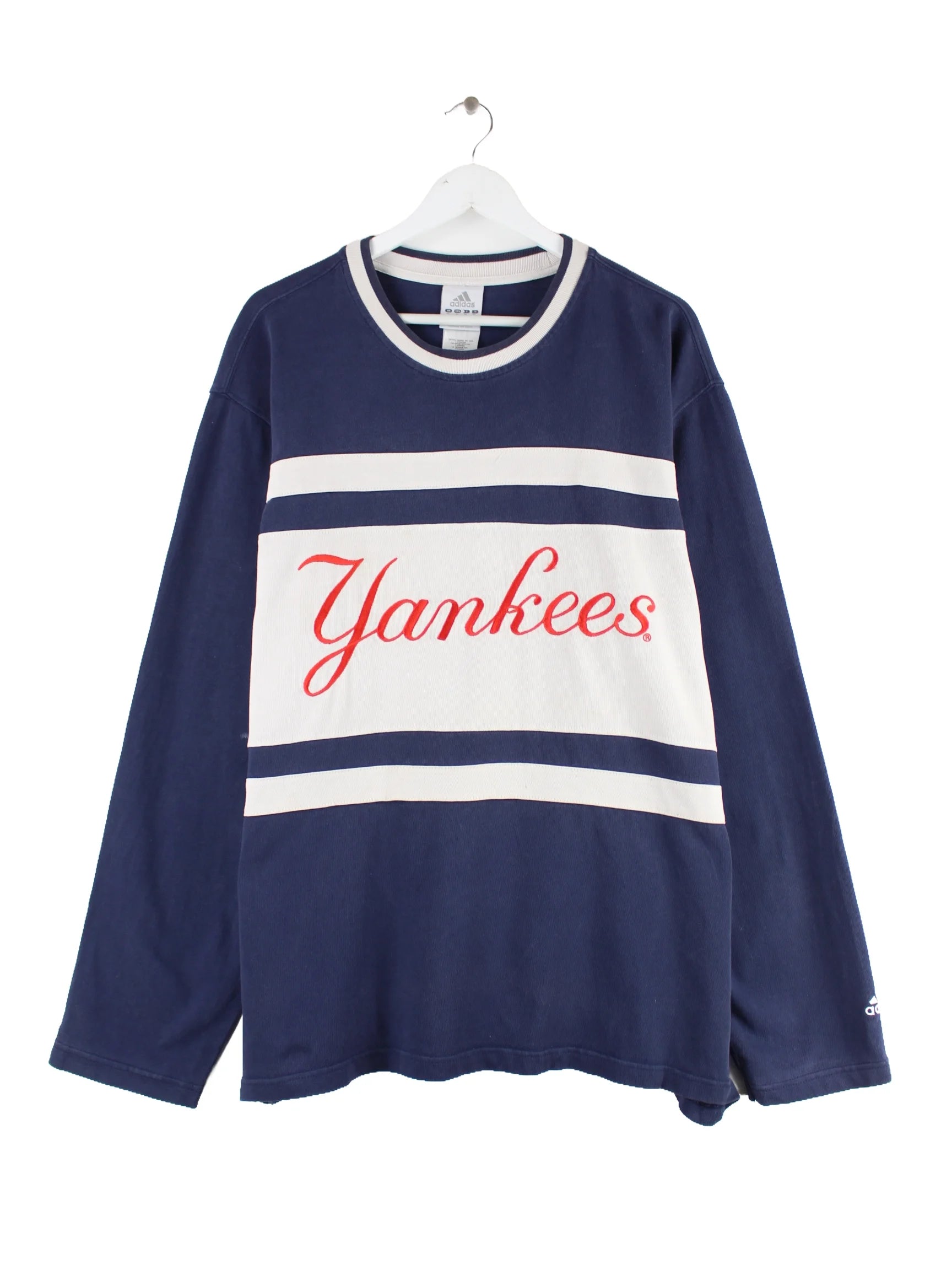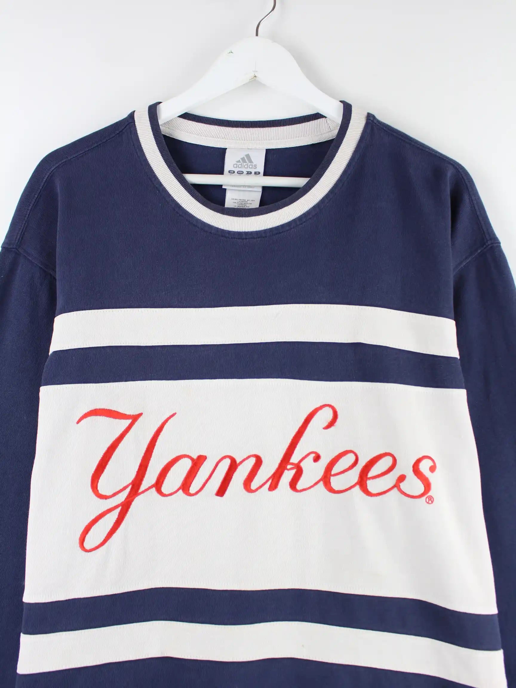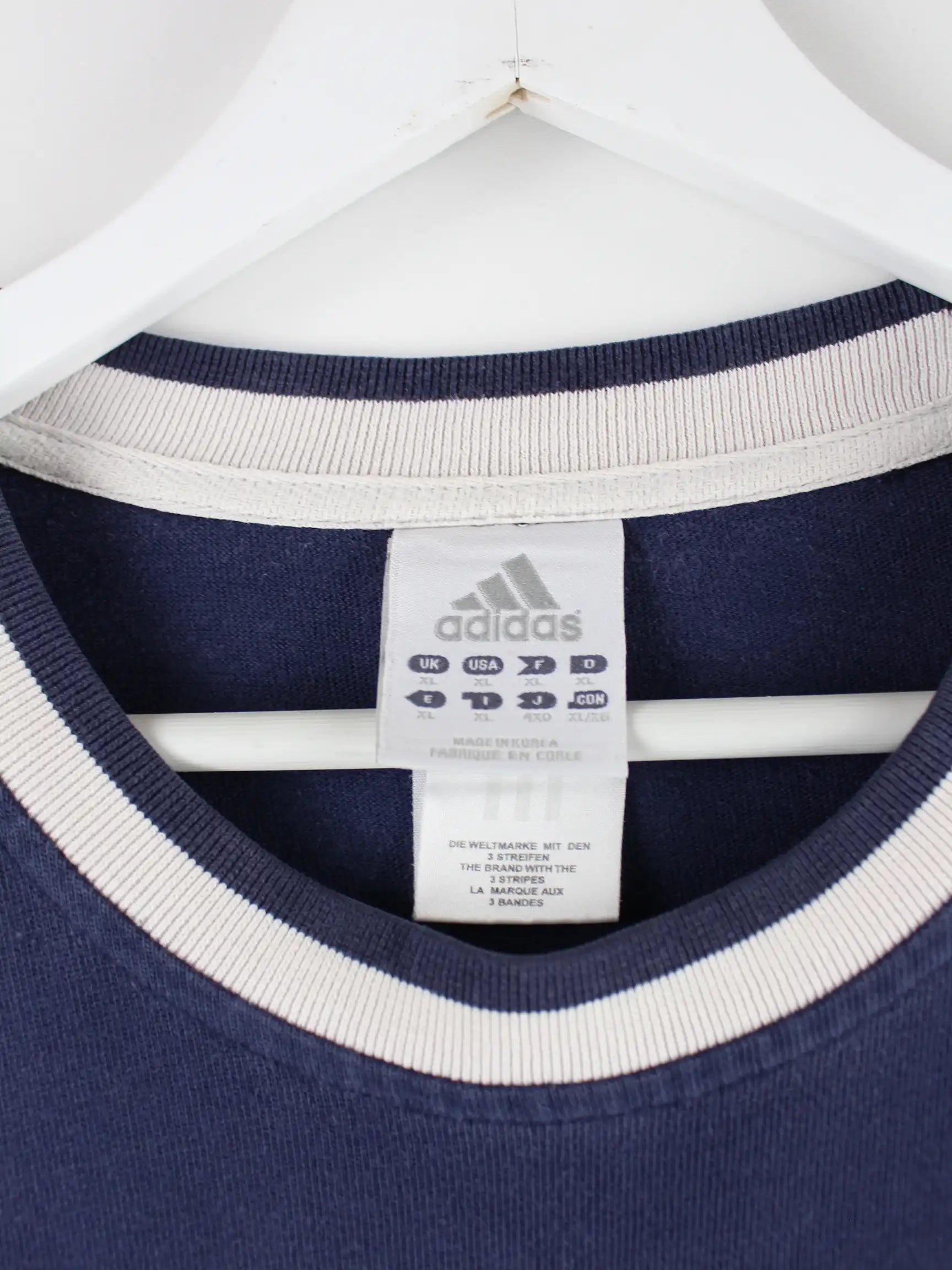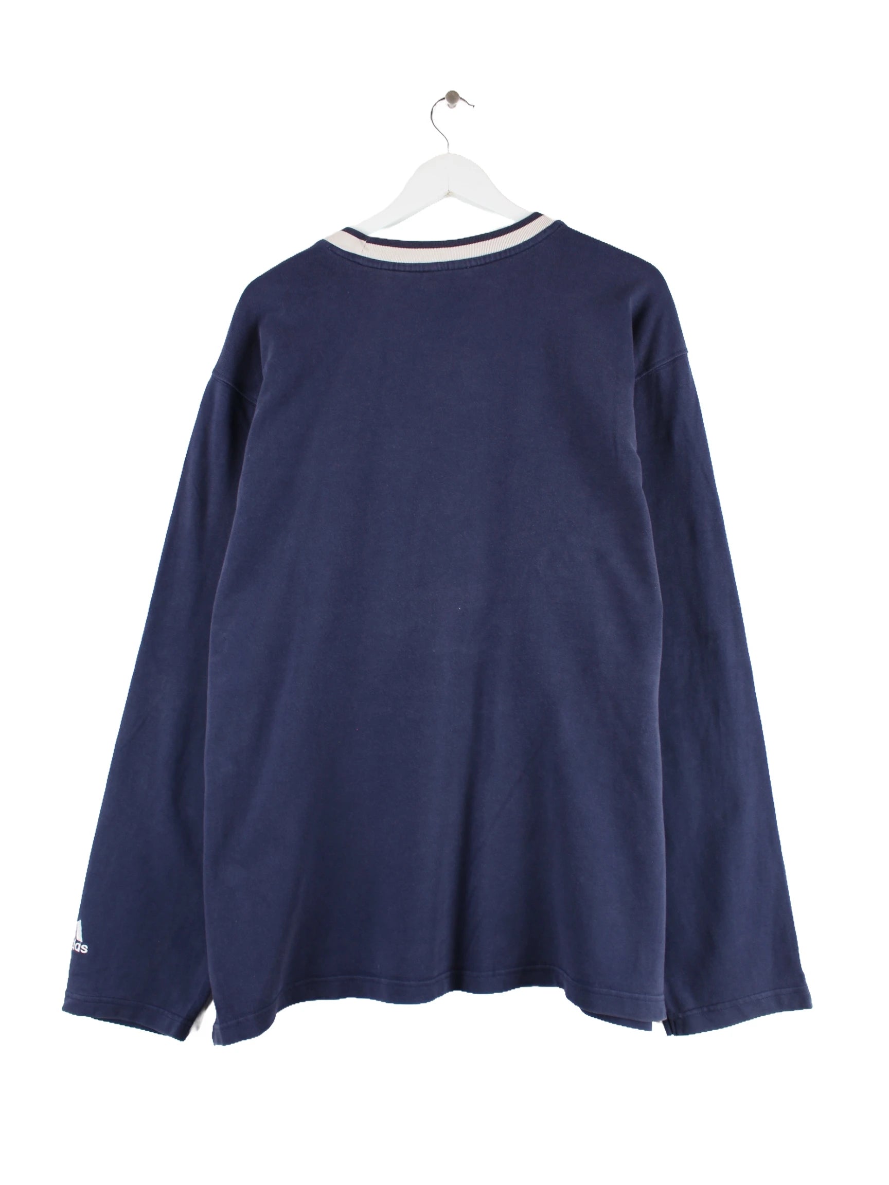 Blauer Sweater des Labels Adidas in Größe XL. Er ist aus einer Baumwollmischung produziert und in gutem Zustand bei uns zu bekommen.