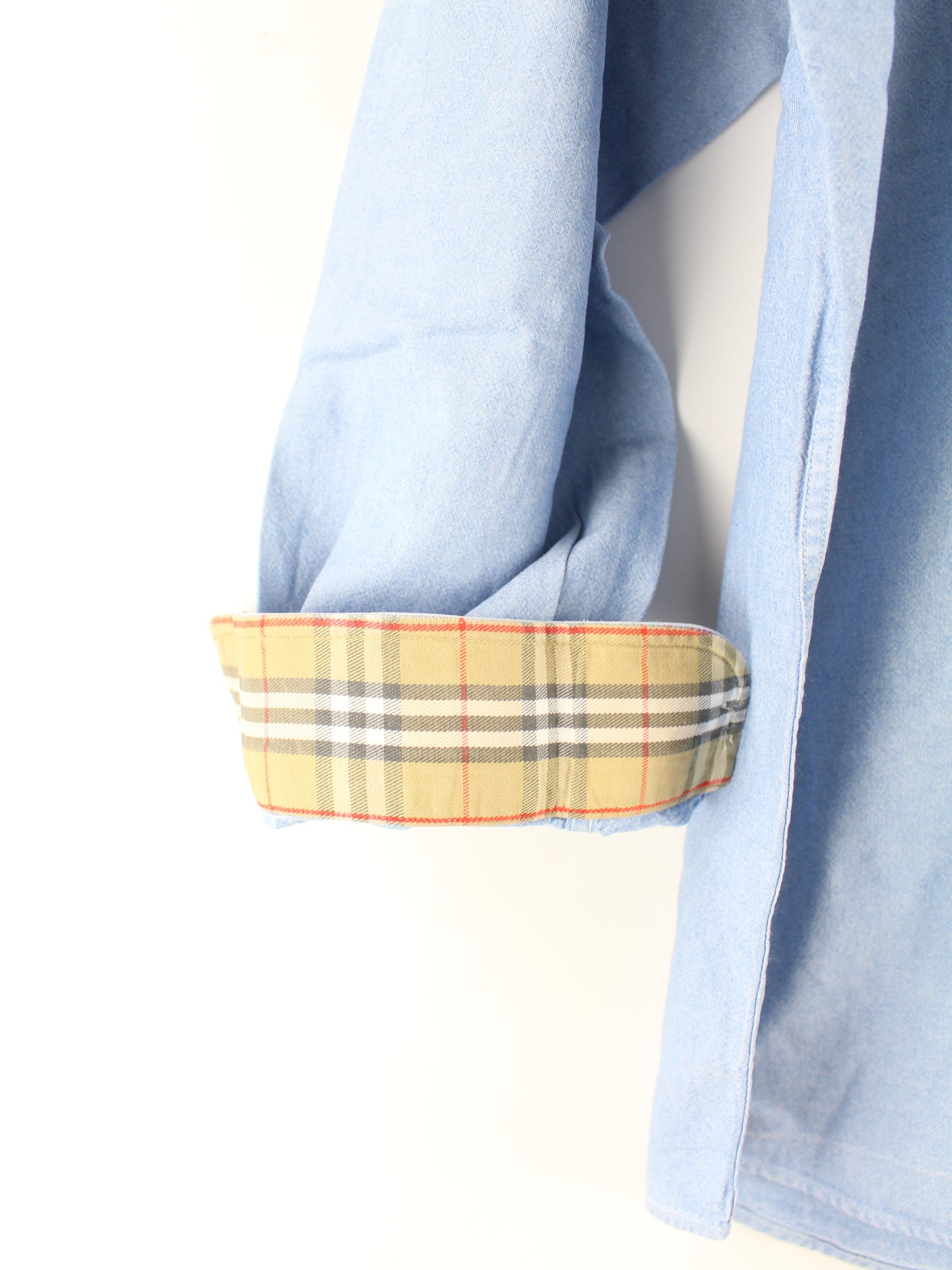 Burberry 90s Vintage Nova Check Jeans Shirt Blue XL