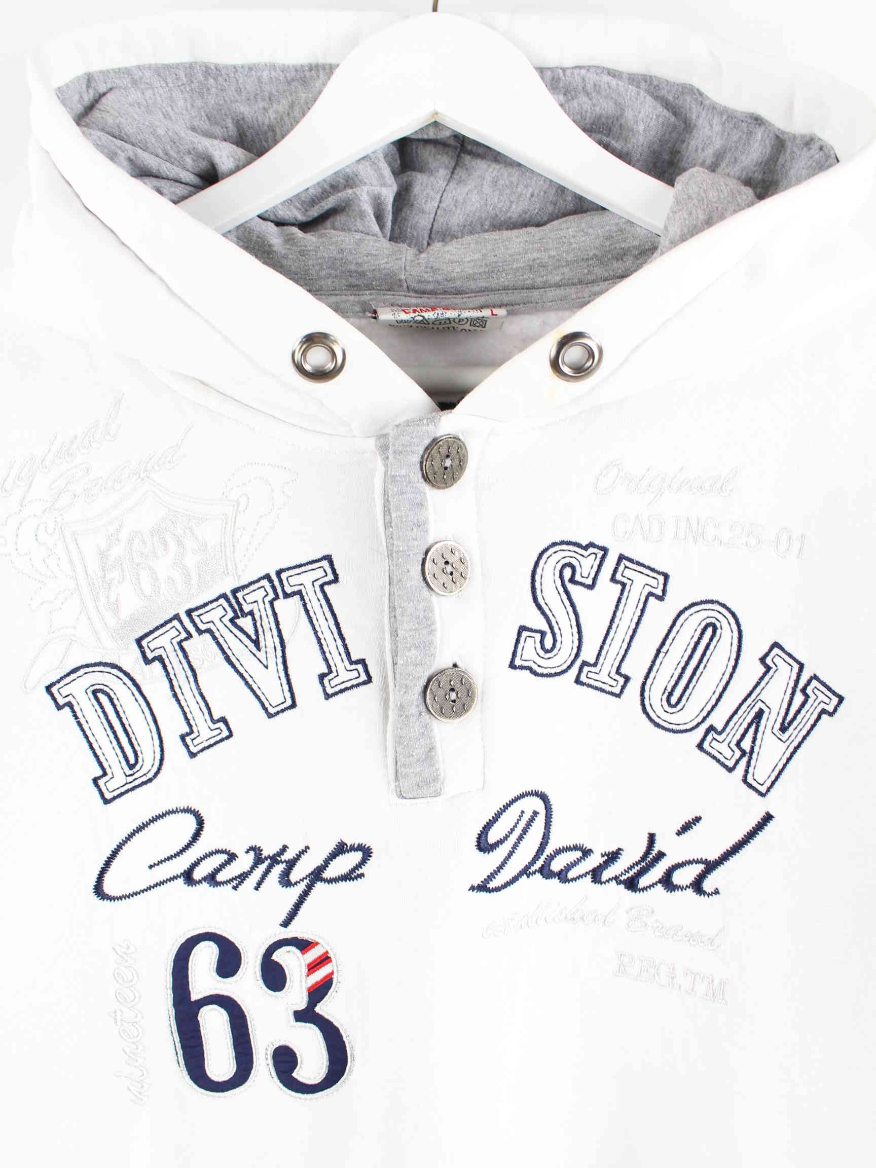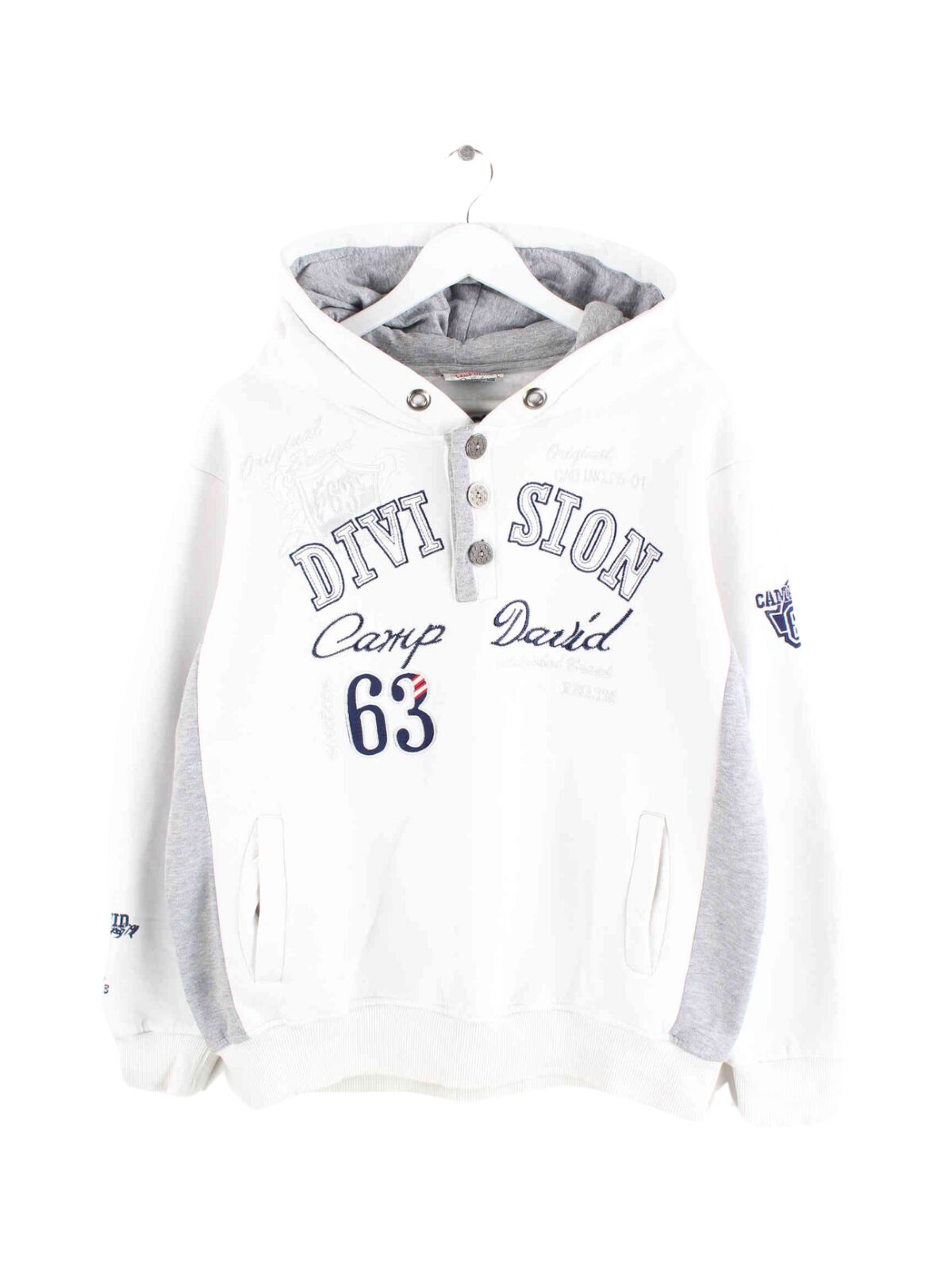 White hoodie with embroidery from Camp David from the early 2000s in size M. It is made of a cotton blend and is on offer in good condition.