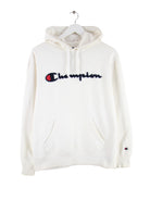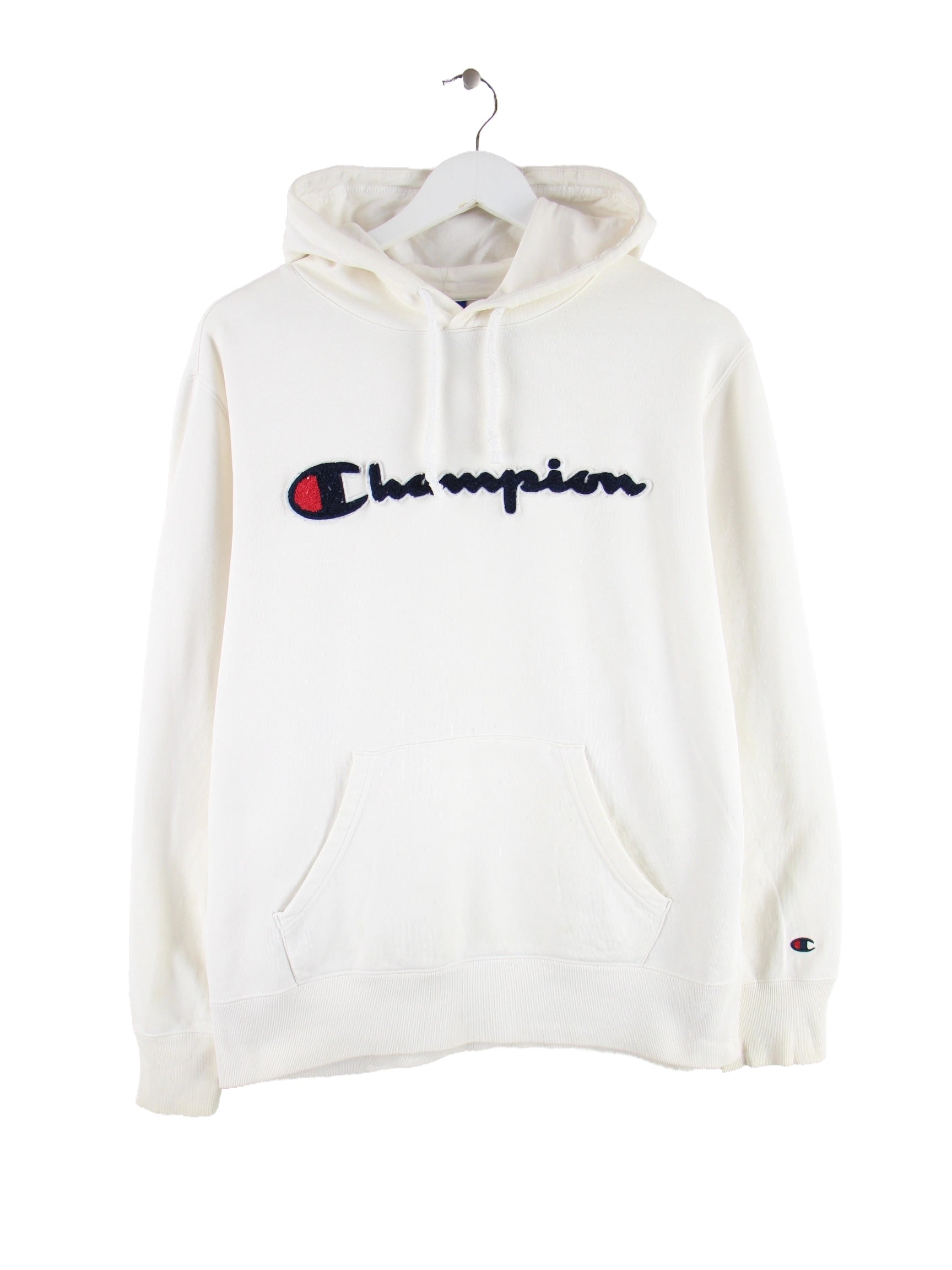 Weißer Hoodie aus dem Hause Champion in Größe M. Er ist aus einer Baumwollmischung angefertigt und in gutem Zustand zu bekommen.