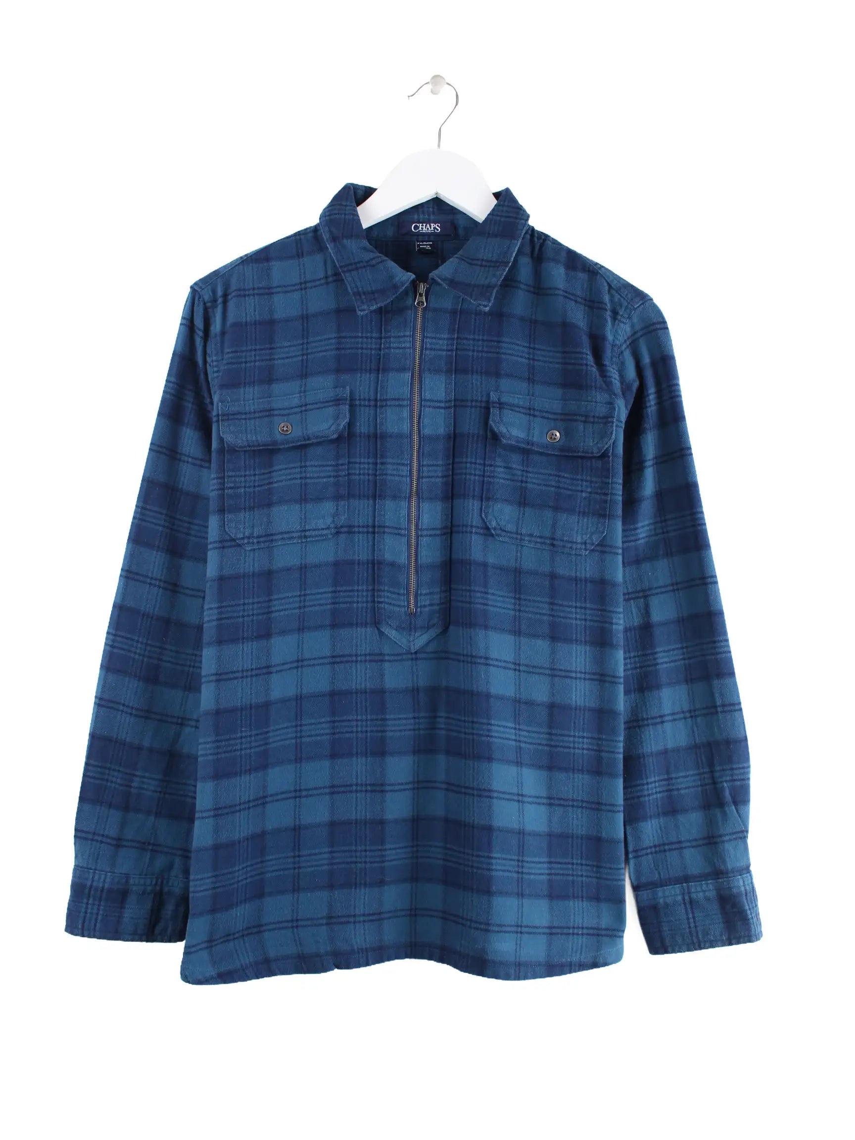 Chaps by Ralph Lauren Damen Half Zip Flanell Hemd Blau XL