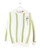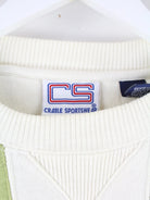 Sweater aus dem Hause Crable Sportswear mit Stickereien in Größe L aus den 90'ern. Er ist aus einer Baumwollmischung angefertigt und in Beige zu bekommen.