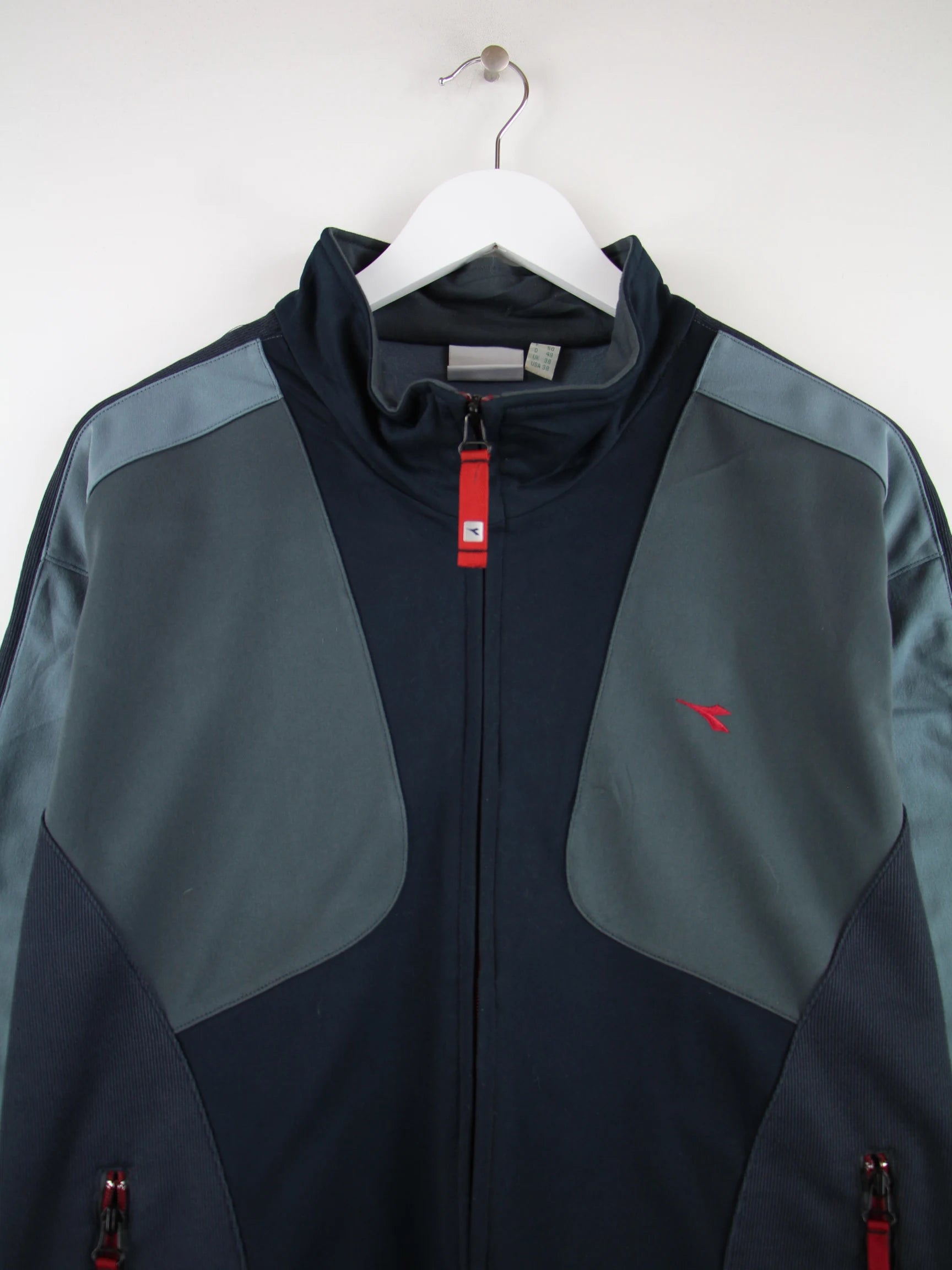 Trainingsjacke vom Brand Diadora in Größe M. Sie ist aus Synthetik hergestellt und in Blau zu haben.