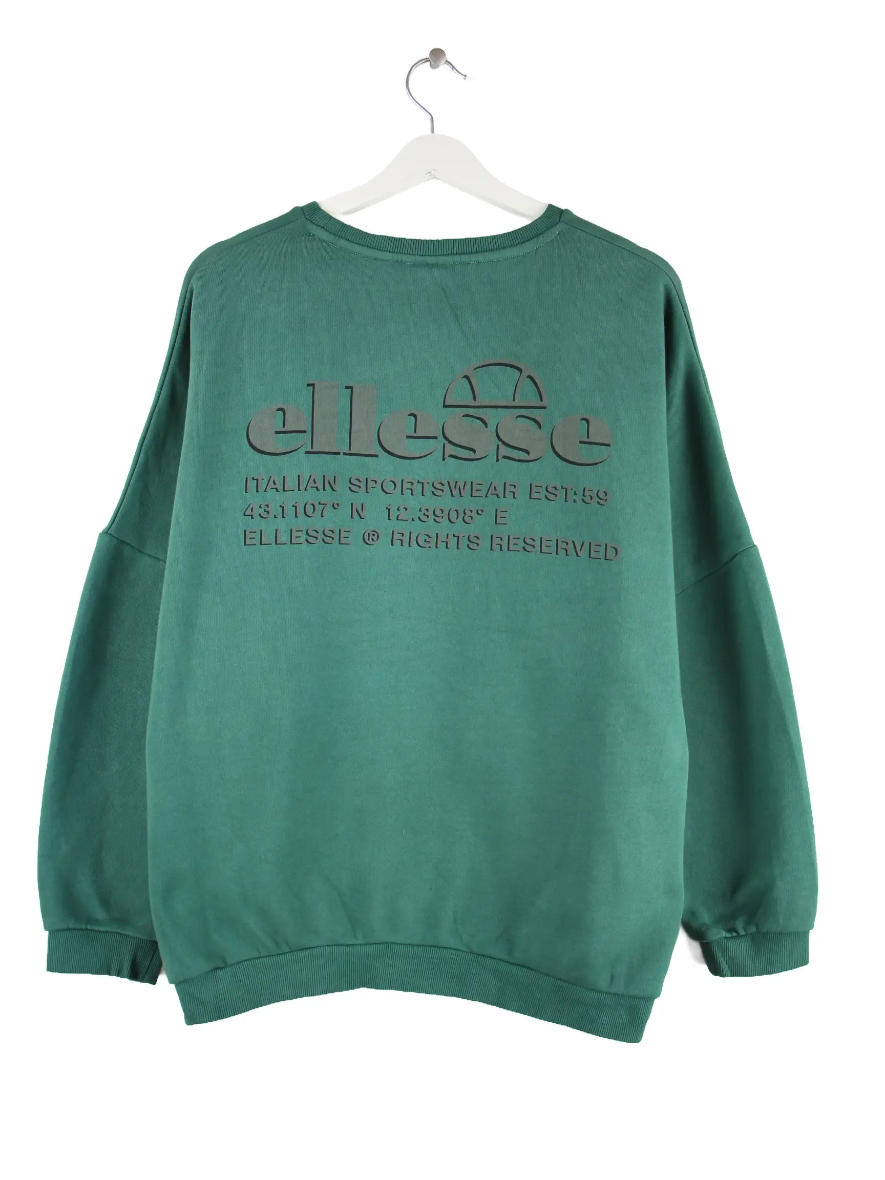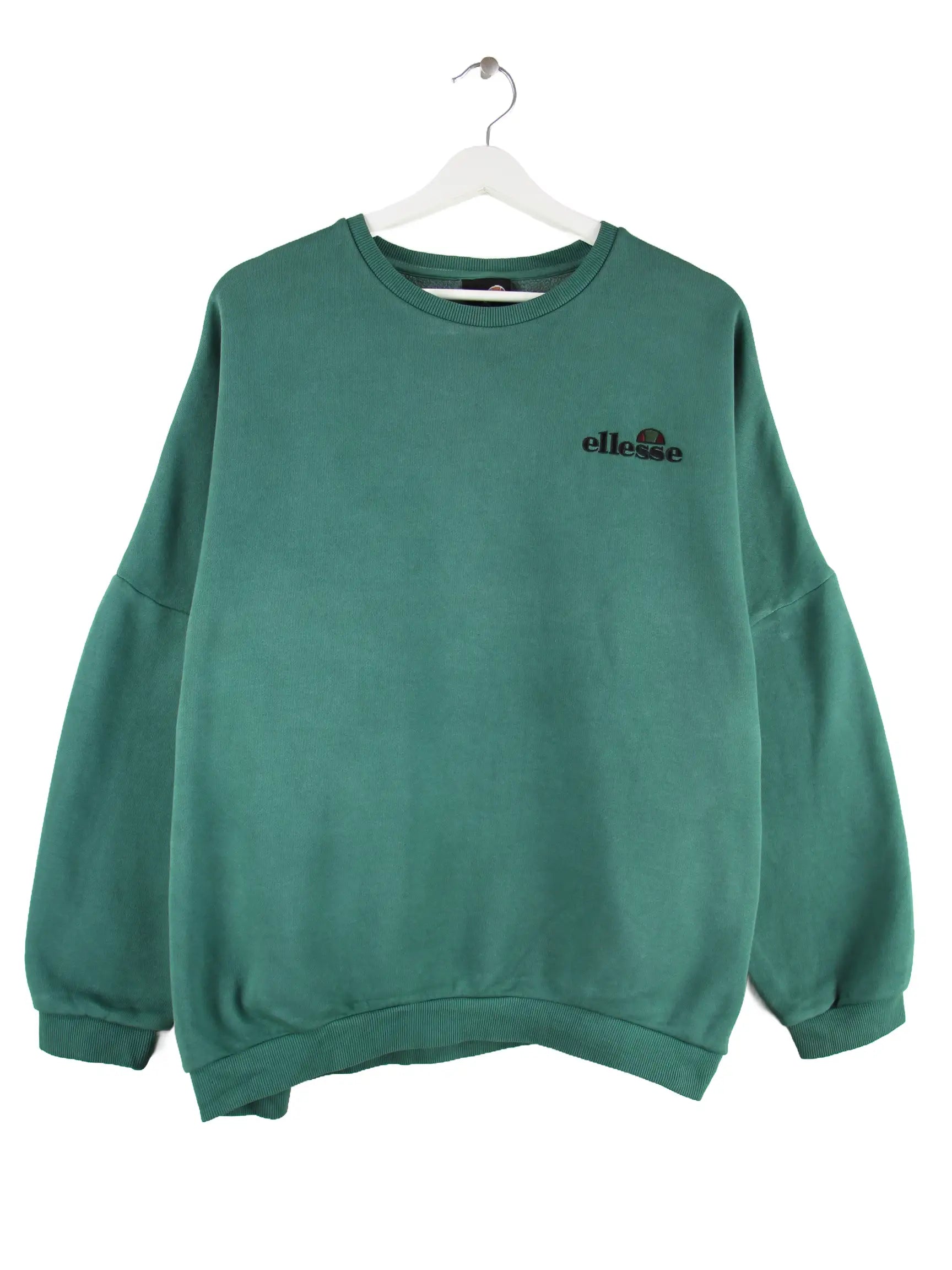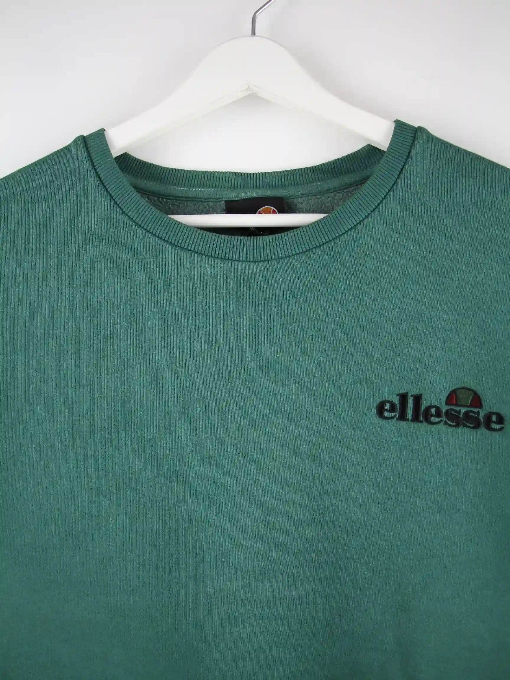 Sweater des Labels Ellesse in Größe XL. Er ist aus einer Baumwollmischung hergestellt und in Grün lieferbar. Mit seltenem 00s Print.