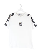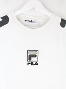 Weißes T-Shirt mit Stick der Brand Fila in Größe M. Es ist aus Baumwolle und in gutem Zustand zu bekommen.