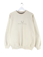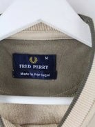 Beigefarbener Sweater mit gestickten Motiven vom Brand Fred Perry in Größe M. Er ist aus einer Baumwollmischung produziert und in sehr gutem Zustand bei uns vorrätig.