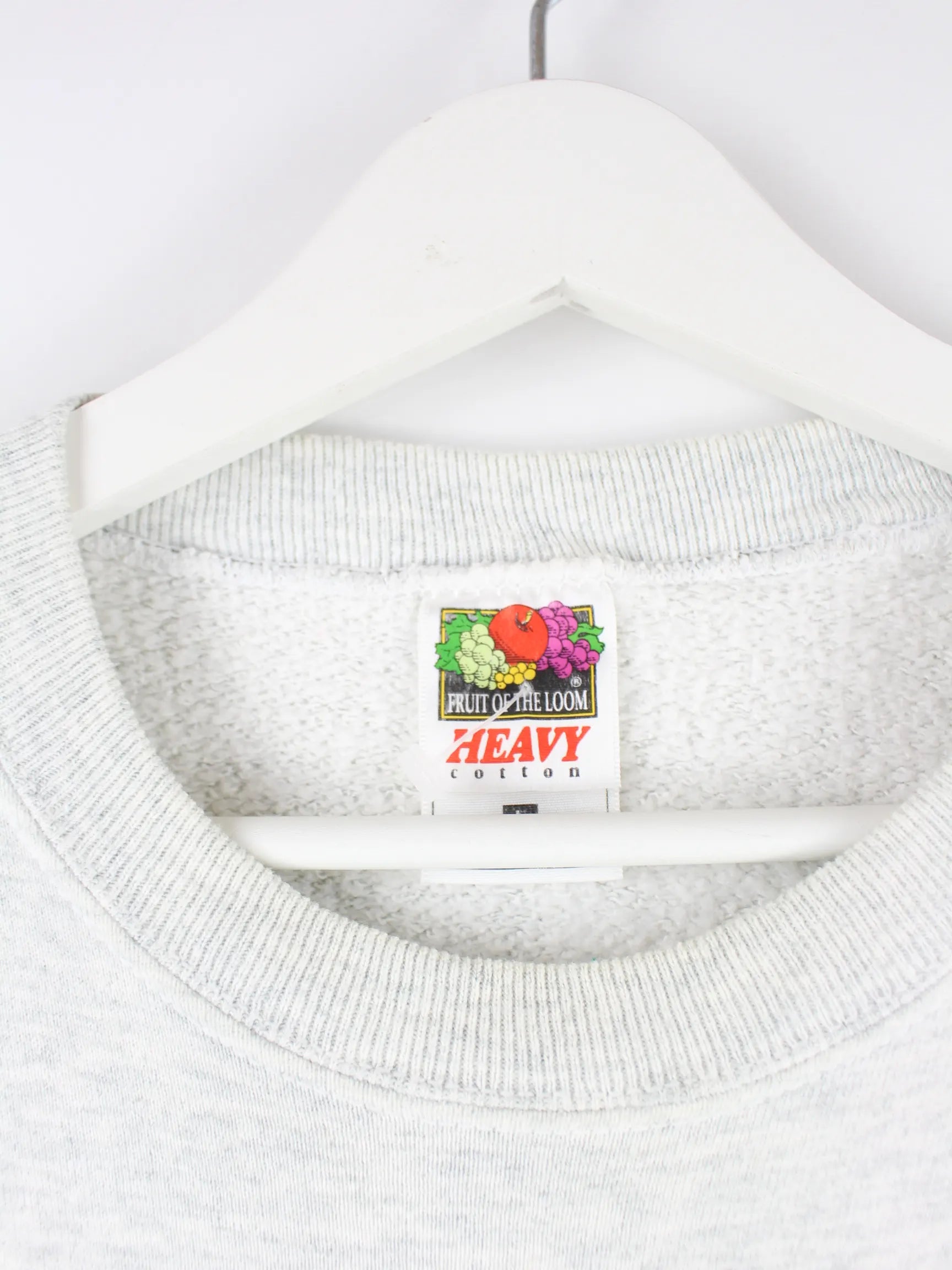Sweater vom Label Fruit of the Loom in Größe L. Er ist aus einer Baumwollmischung gemacht und in Grau bei uns vorrätig. Mit seltenem Boston Print.