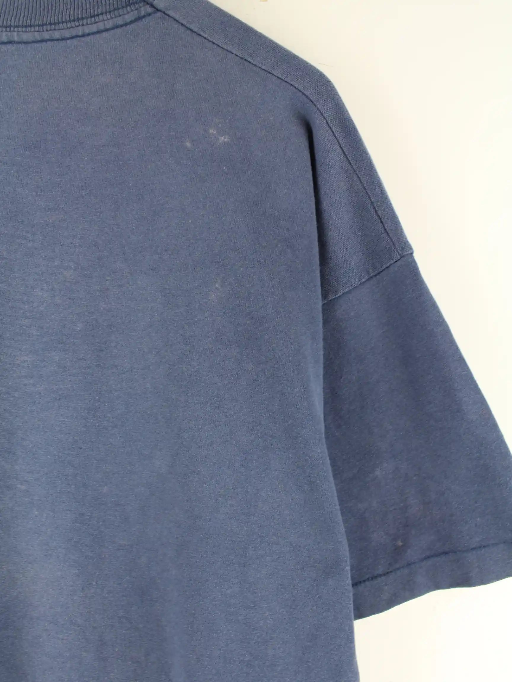 Fruit of the Loom 90s Vintage Manc Print Faded Single Stitch T-Shirt Blau XL