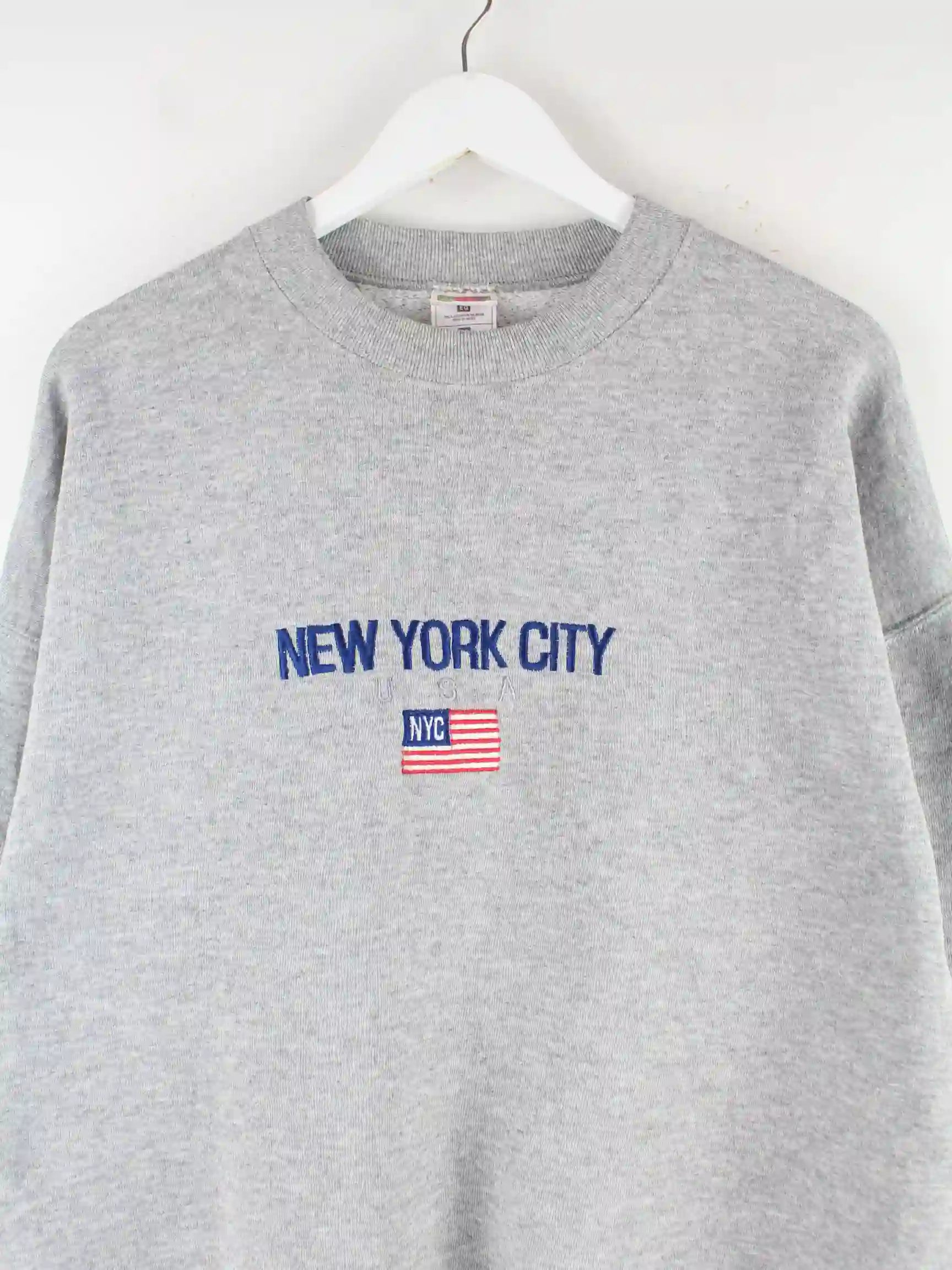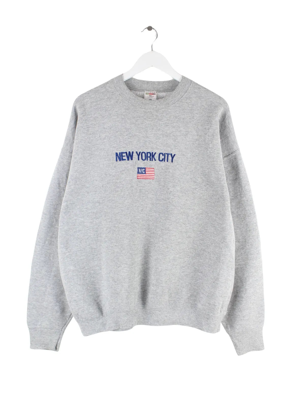 Fruit of the Loom 90s Vintage New York USA Embroidered Sweater Grau XL