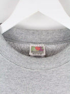 Grauer Sweater mit gesticktem Logo der Brand Fruit of the Loom aus den 90'ern in Größe XL. Er ist aus einer Baumwollmischung hergestellt und in sehr gutem Zustand im Bestand.