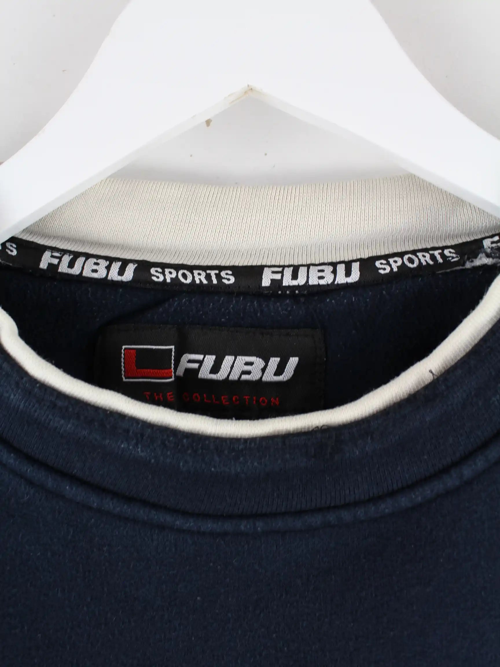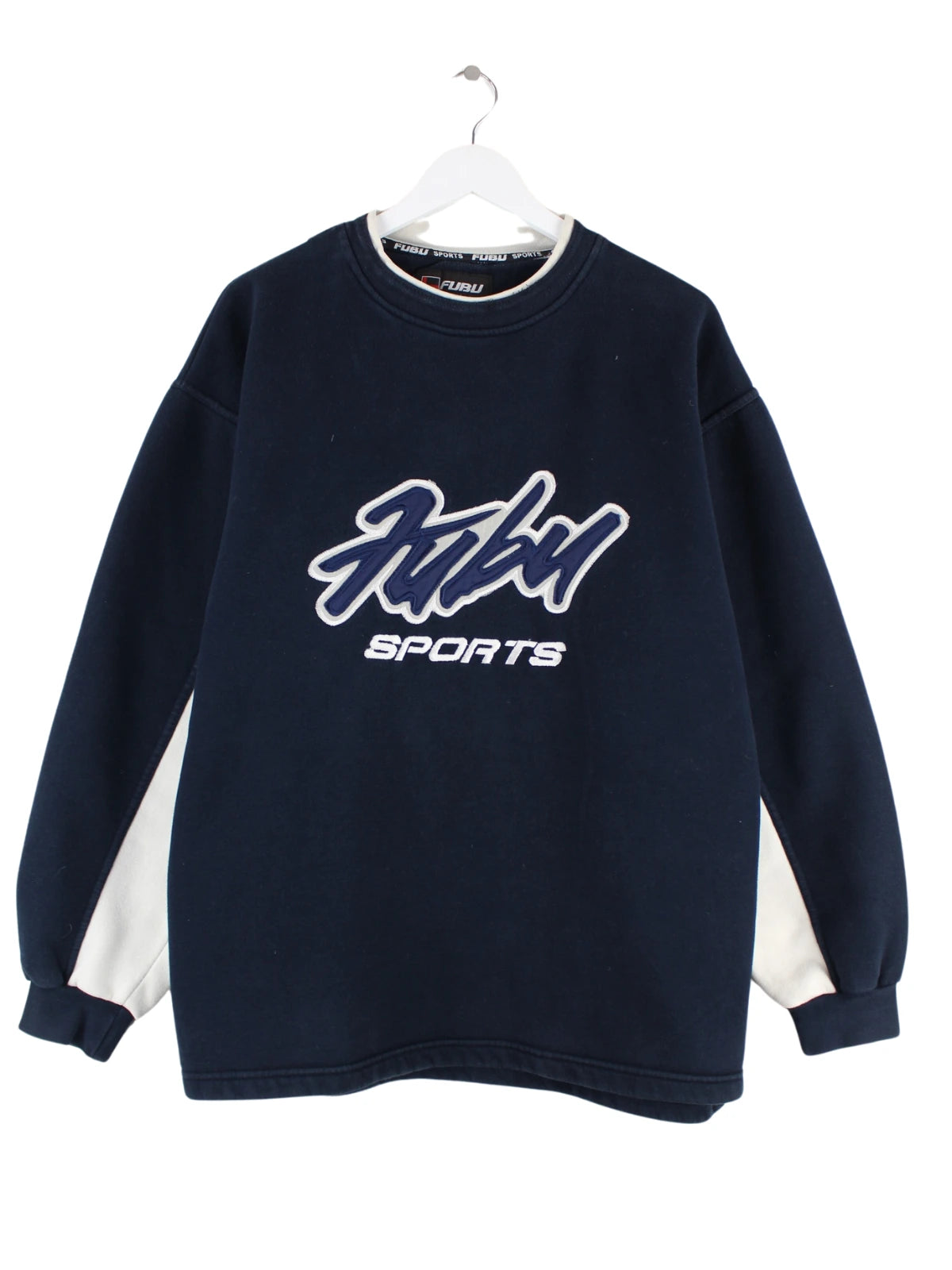Blauer Sweater mit Stick des Labels Fubu in Größe XL. Er ist aus einer Baumwollmischung und in gutem Zustand im Angebot.