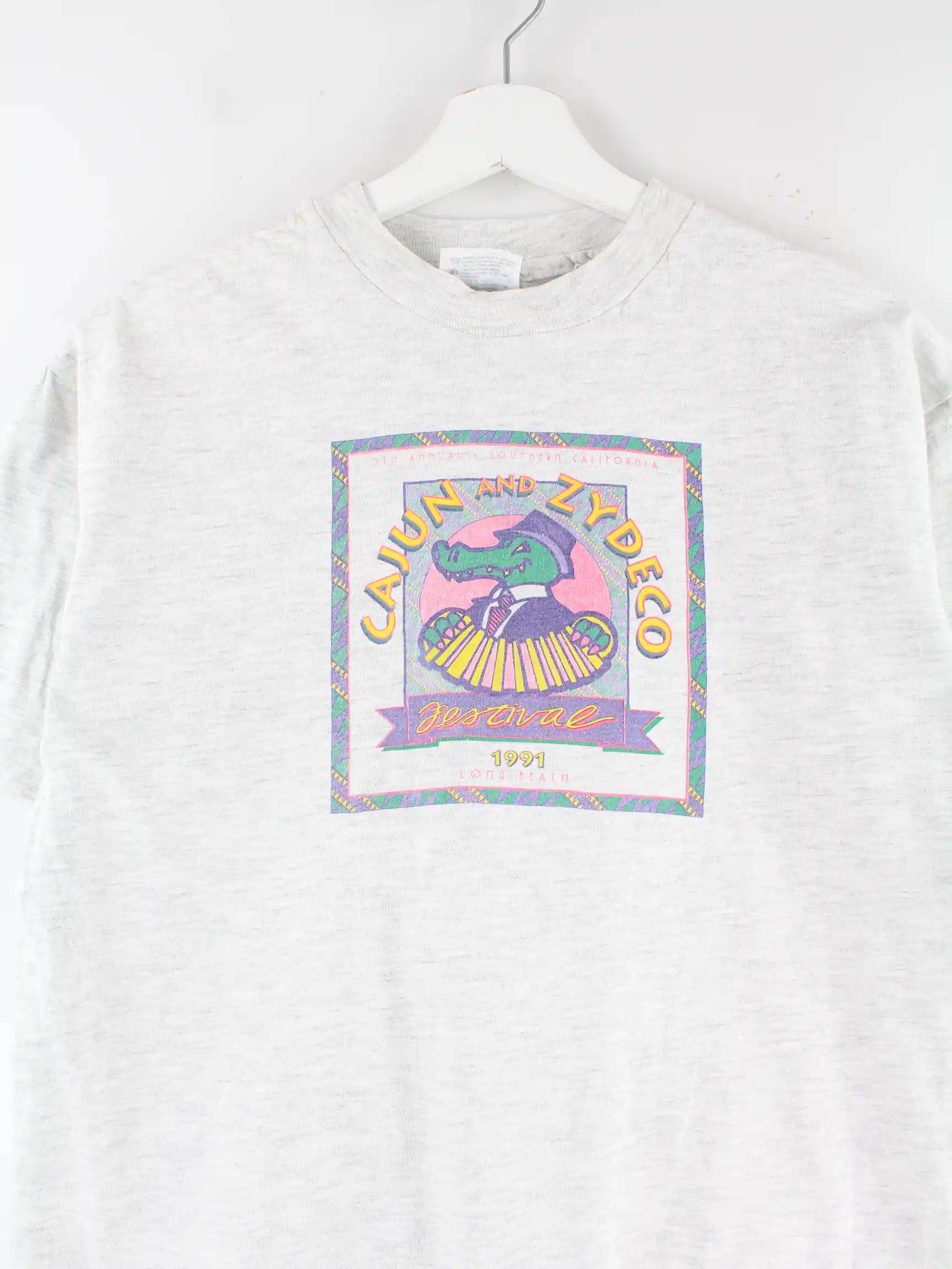 Hanes 1991 Vintage Alligator Festival Print Single Stitch T-Shirt Grau L
