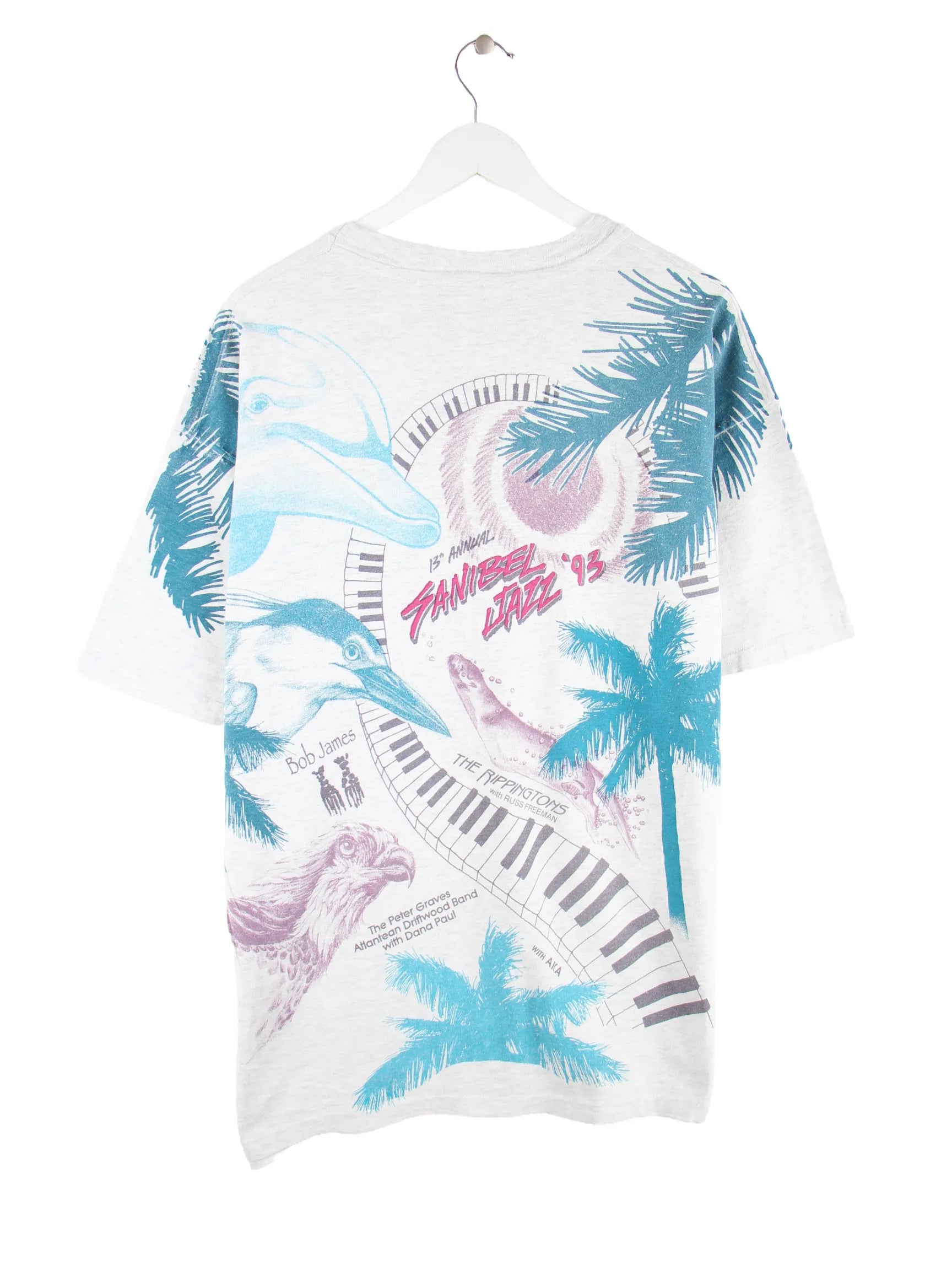 Hanes 1993 Vintage Sanibel Jazz Print T-Shirt Grau XL