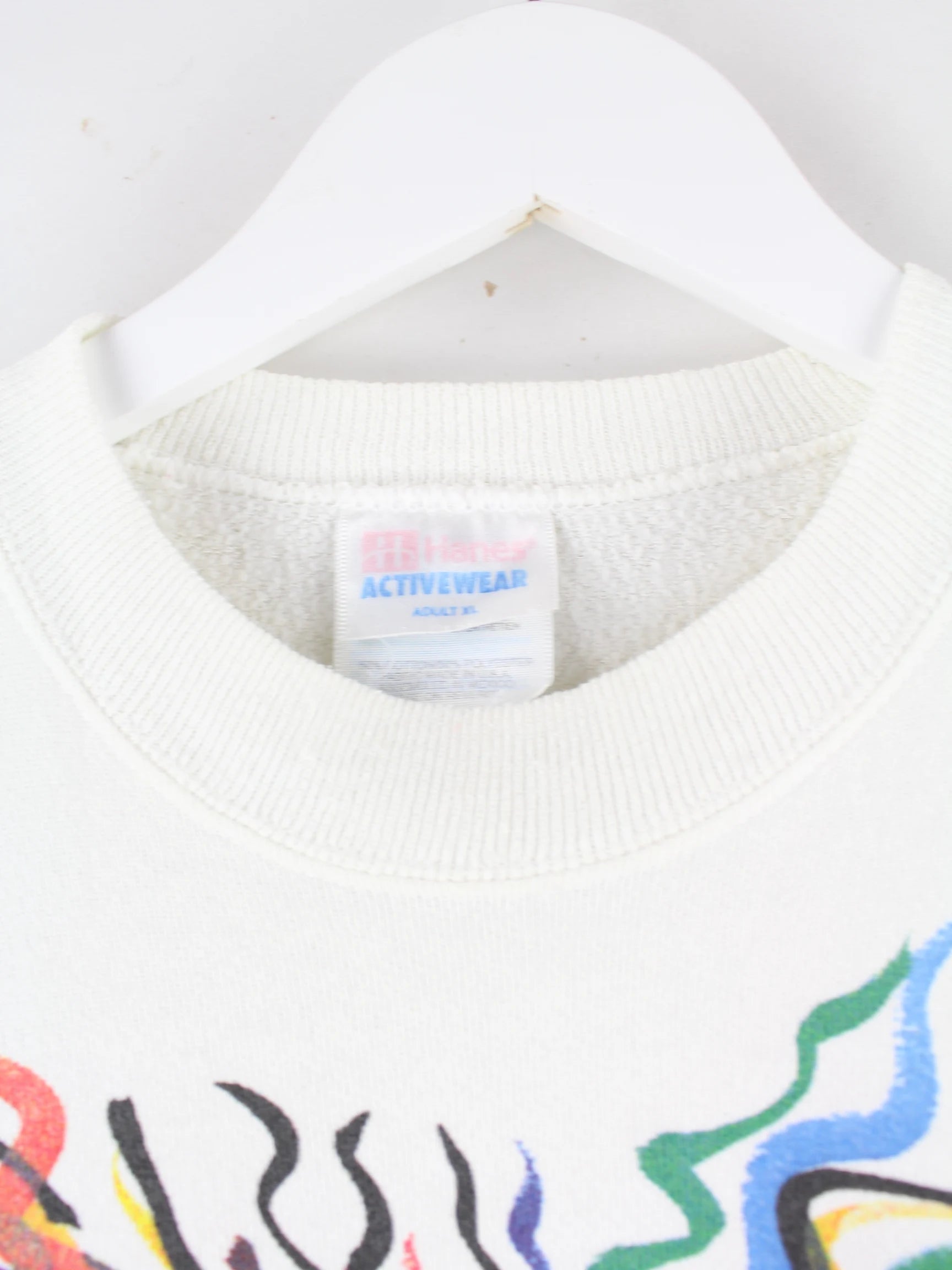 Hanes 90s Vintage Trippy Print Sweater Weiß XL
