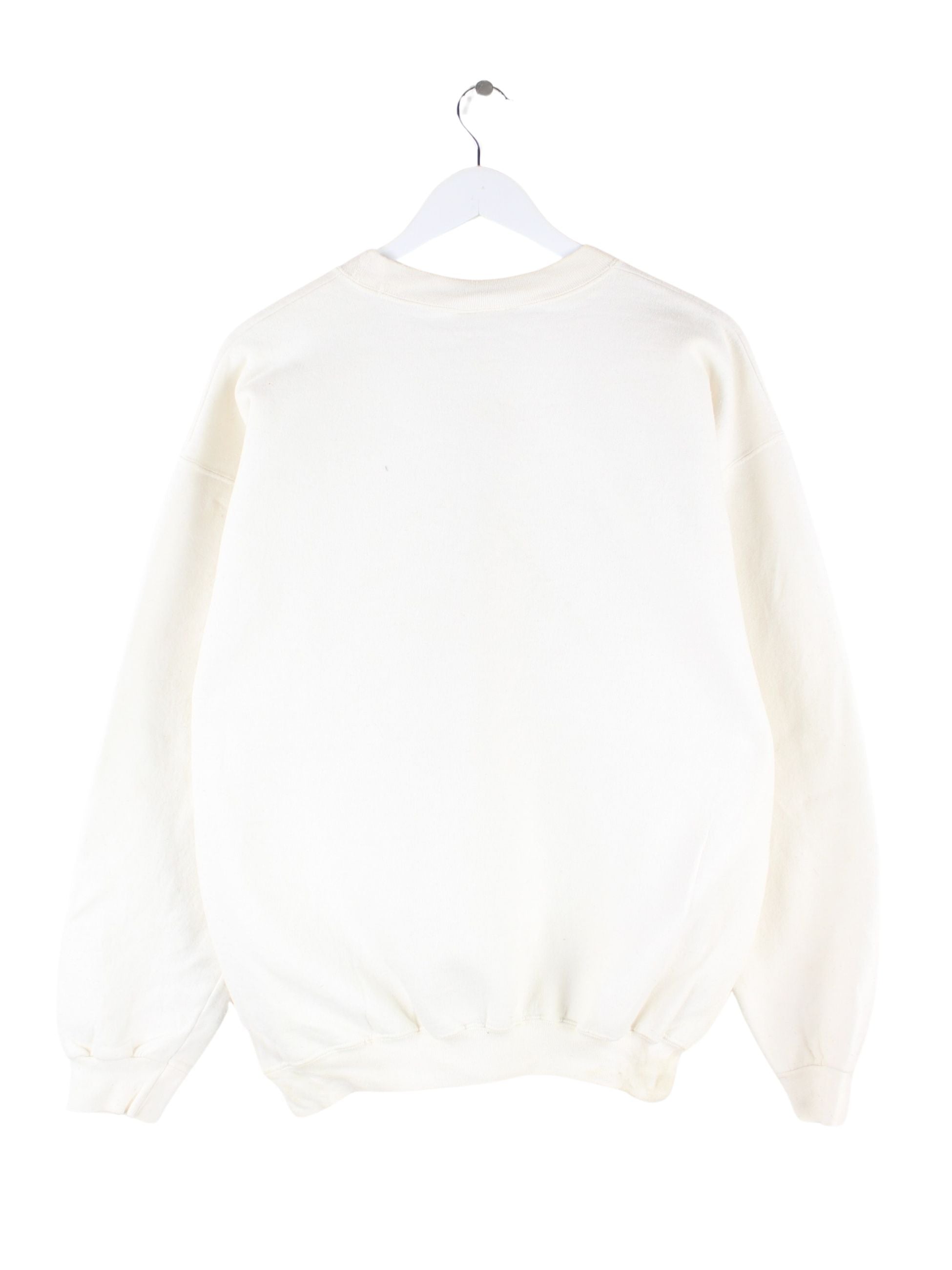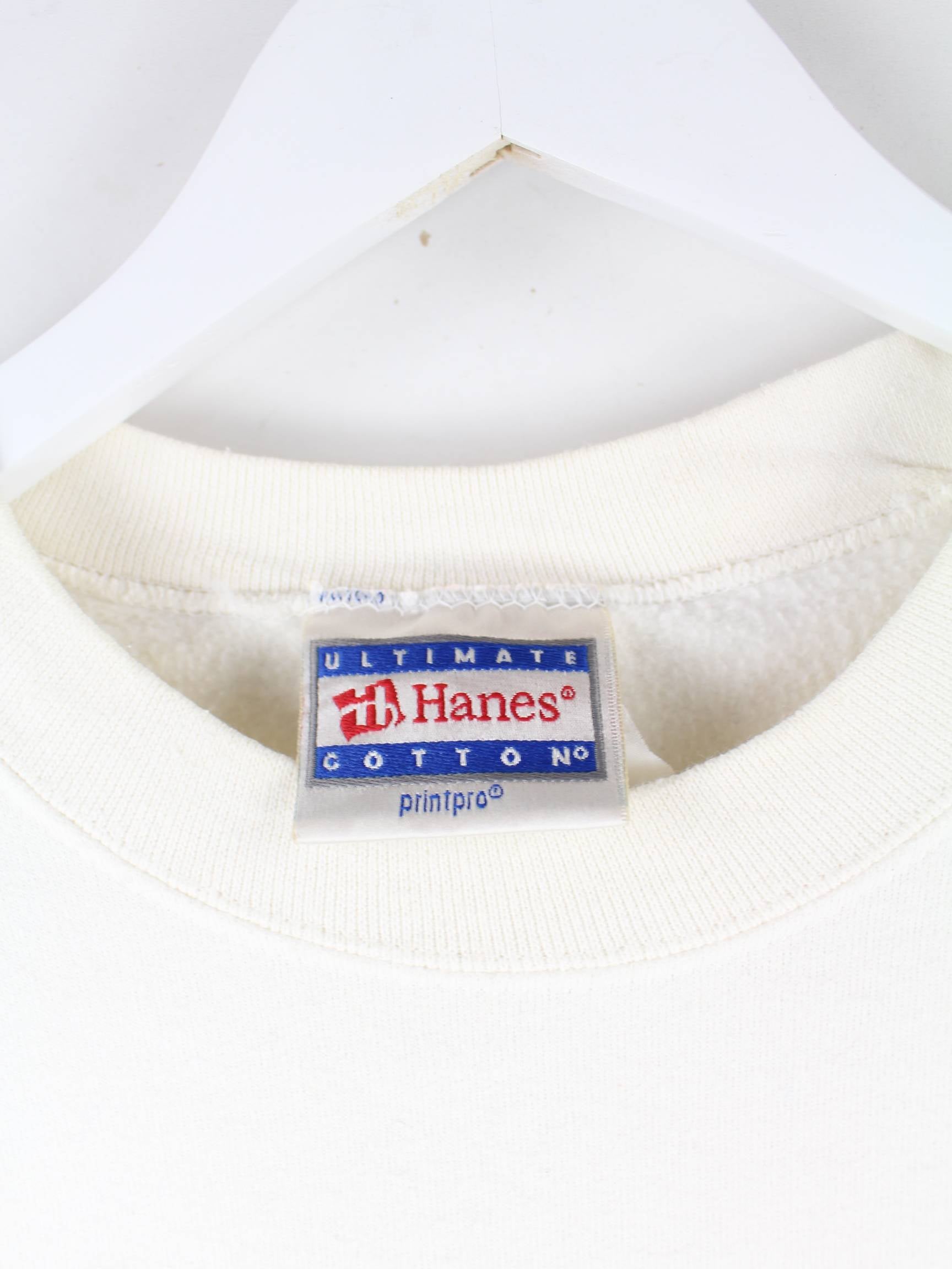 Beigefarbener Sweater des Labels Hanes aus den 90'ern in Größe L. Er ist aus einer Baumwollmischung hergestellt. Den Zustand würden wir als 'In Ordnung' bezeichnen (vergl. Bilder).Mit chiquem Lake Print.
