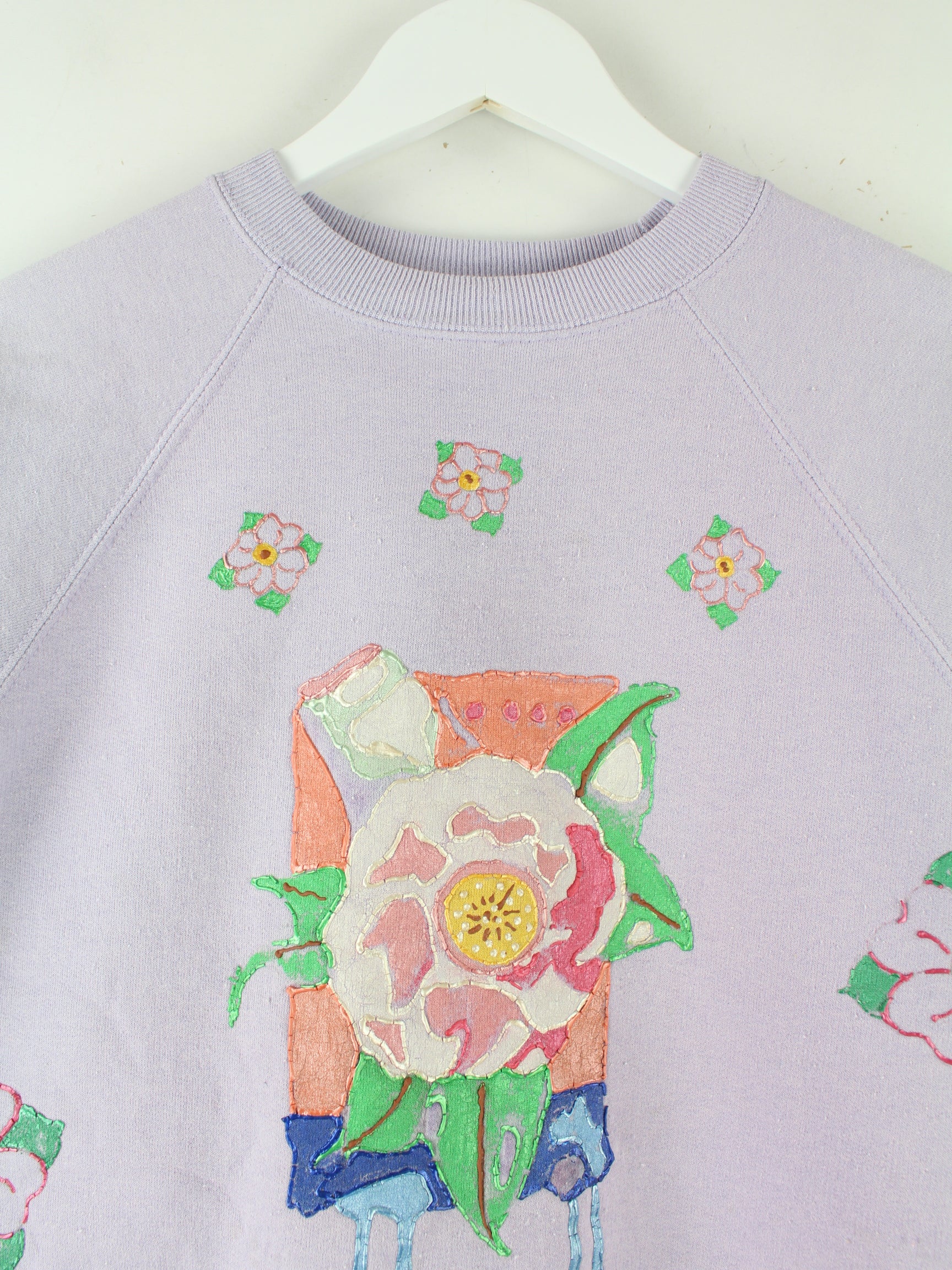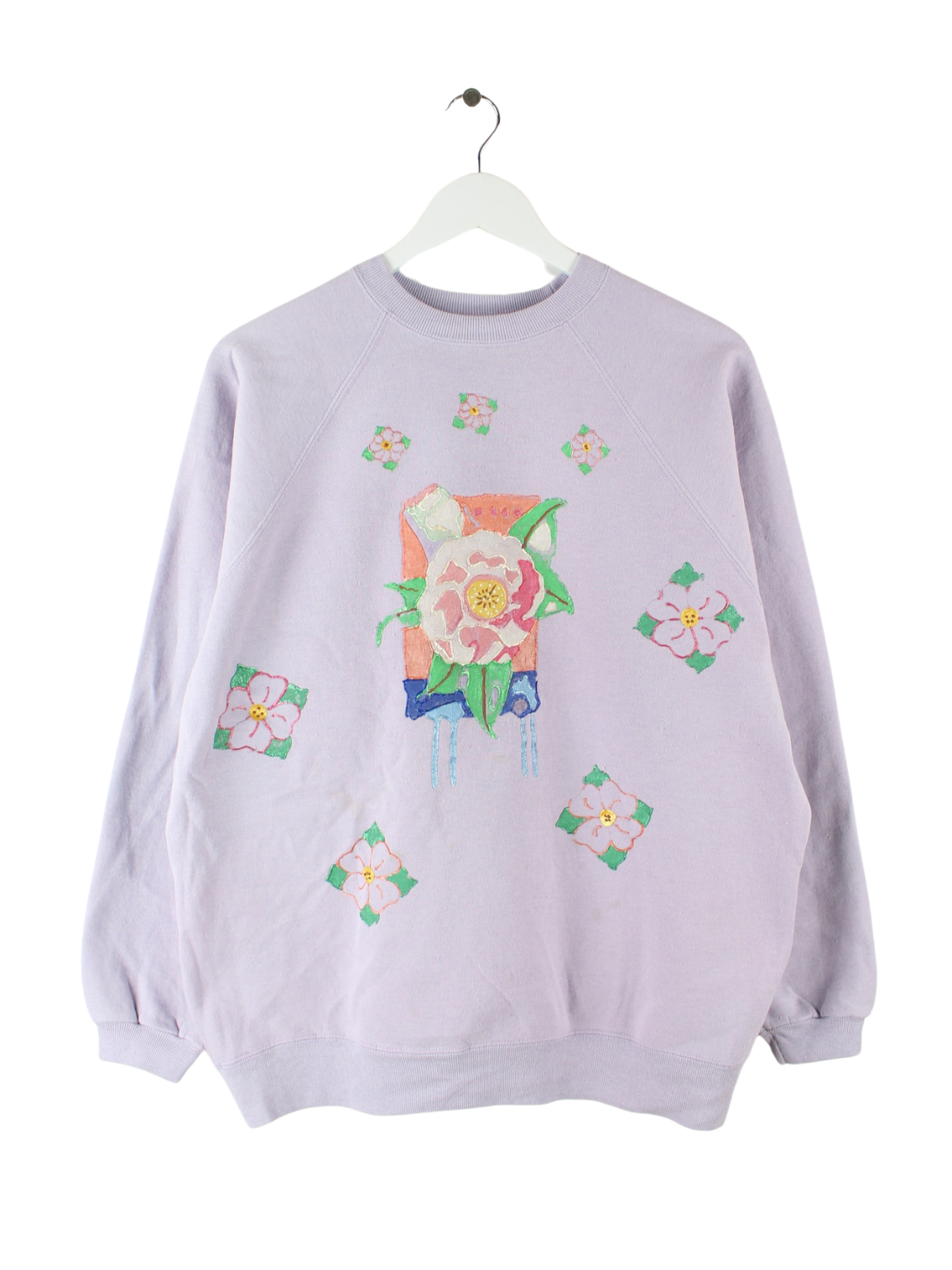 Sweater des Labels Hanes in Größe XL aus den 90'ern. Er ist aus einer Baumwollmischung gemacht und in Lila im Bestand. Mit seltenem Christmas Print.